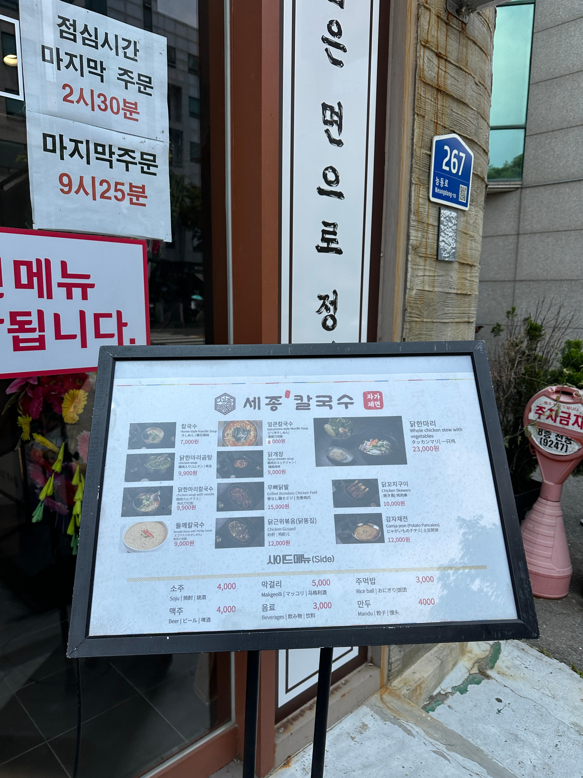 3. 세종칼국수 군자본점 메뉴판 및 영업시간