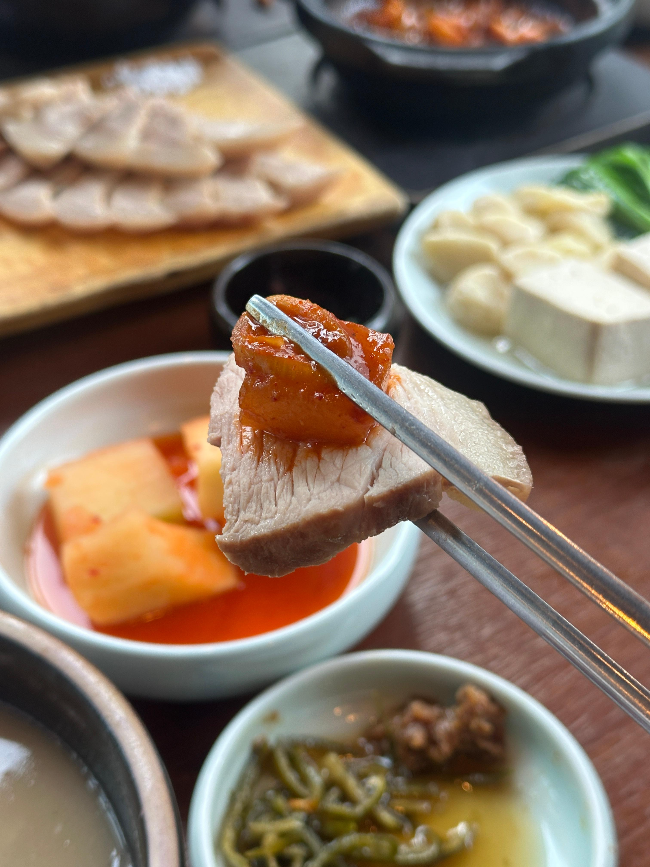 솔직히 양은 대자인데 많진 않았지만, 수육 자체를 너무 맛있게 삶아 나오기에 소금만 찍어서 딱 먹기에도 좋았고, 명란을 얹어서 먹는 것도 일품이었습니다. ㅋㅋㅋㅋ