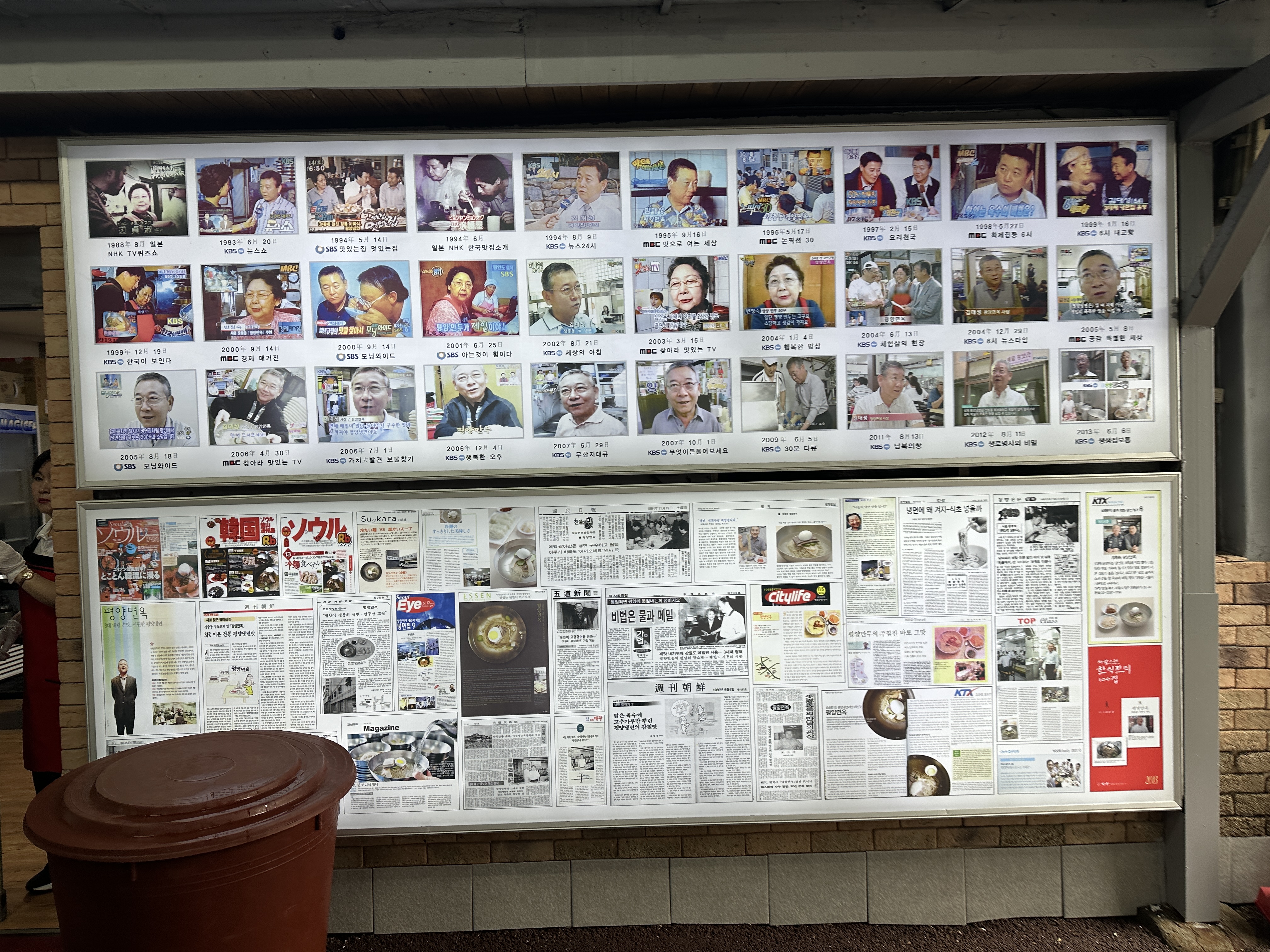 평양면옥 본점은 아무래도 인기만큼 대기가 좀 있는 편입니다. 그나마 저는 오래 안기다리고 금세 들어갔지만, 나올때 보니 손님이 거의 20분은 계시더라구요. ㅋㅋㅋ 입구 앞에는 공간이 좀 있고, 거기서 서서 대기하시게 됩니다. 이런저런 표창장들과 맛집임을 보여주는 인증마크들이 많이 보입니다. 신문 내용도 스크랩해서 벽에 전시해 두신 걸 보니 자부심도 상당해 보이십니다. 굿굿