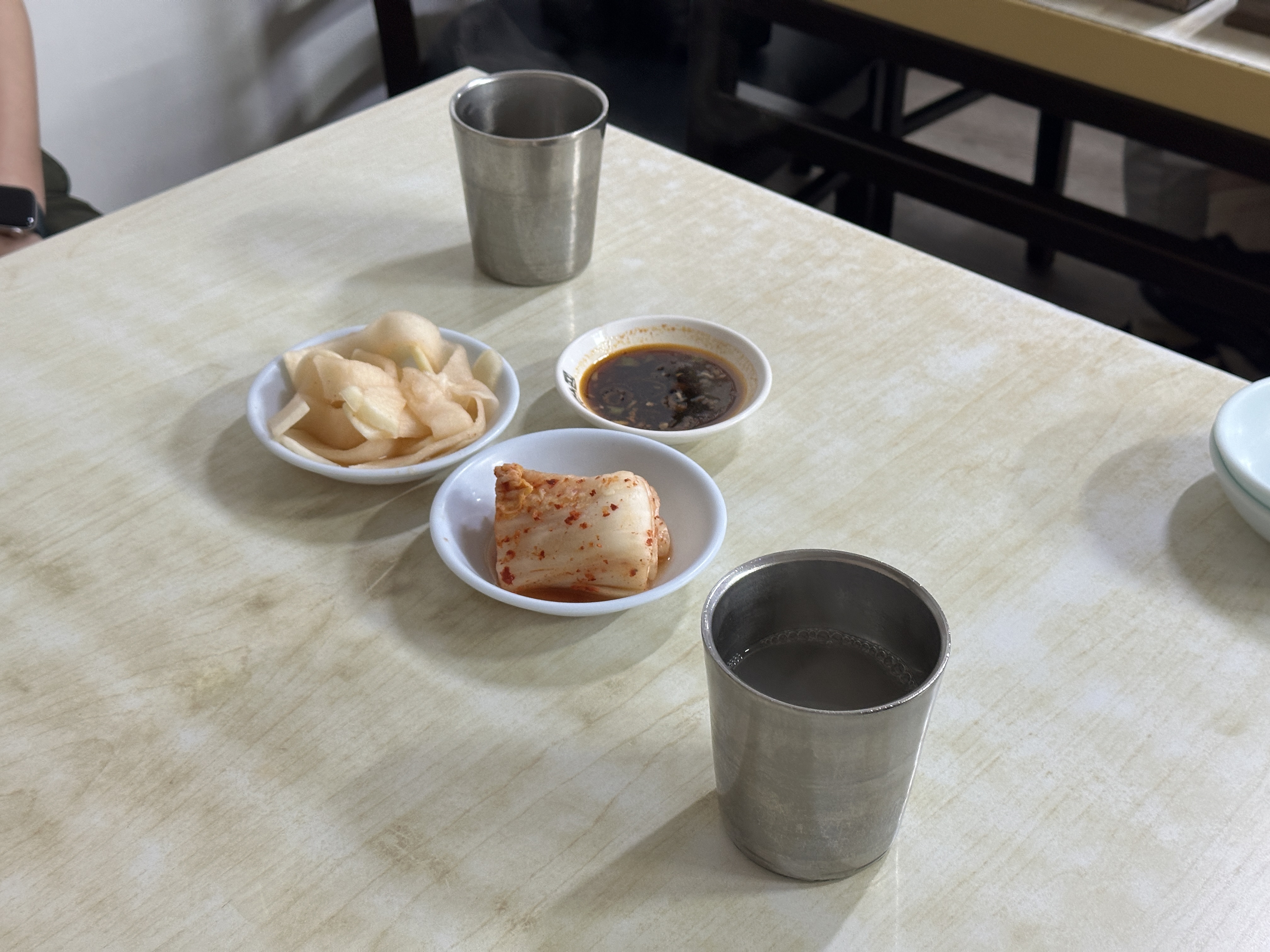 좌석에 앉자마자 이렇게 테이블세팅이 이루어집니다. 일단, 물이 메밀 물로 나온다는 게 합격점 나올 것 같다 생각이 딱 듭니다. ㅋㅋㅋ