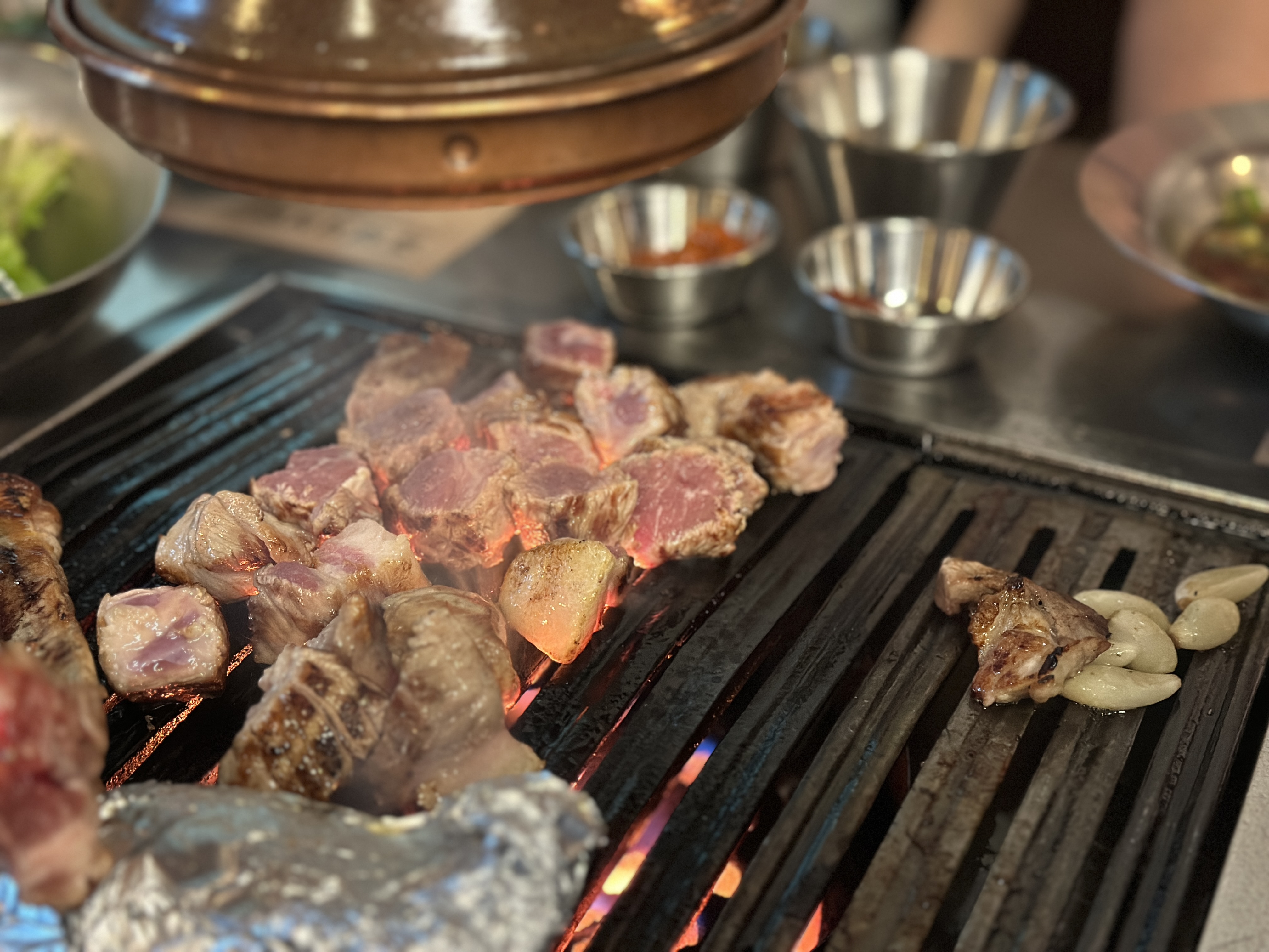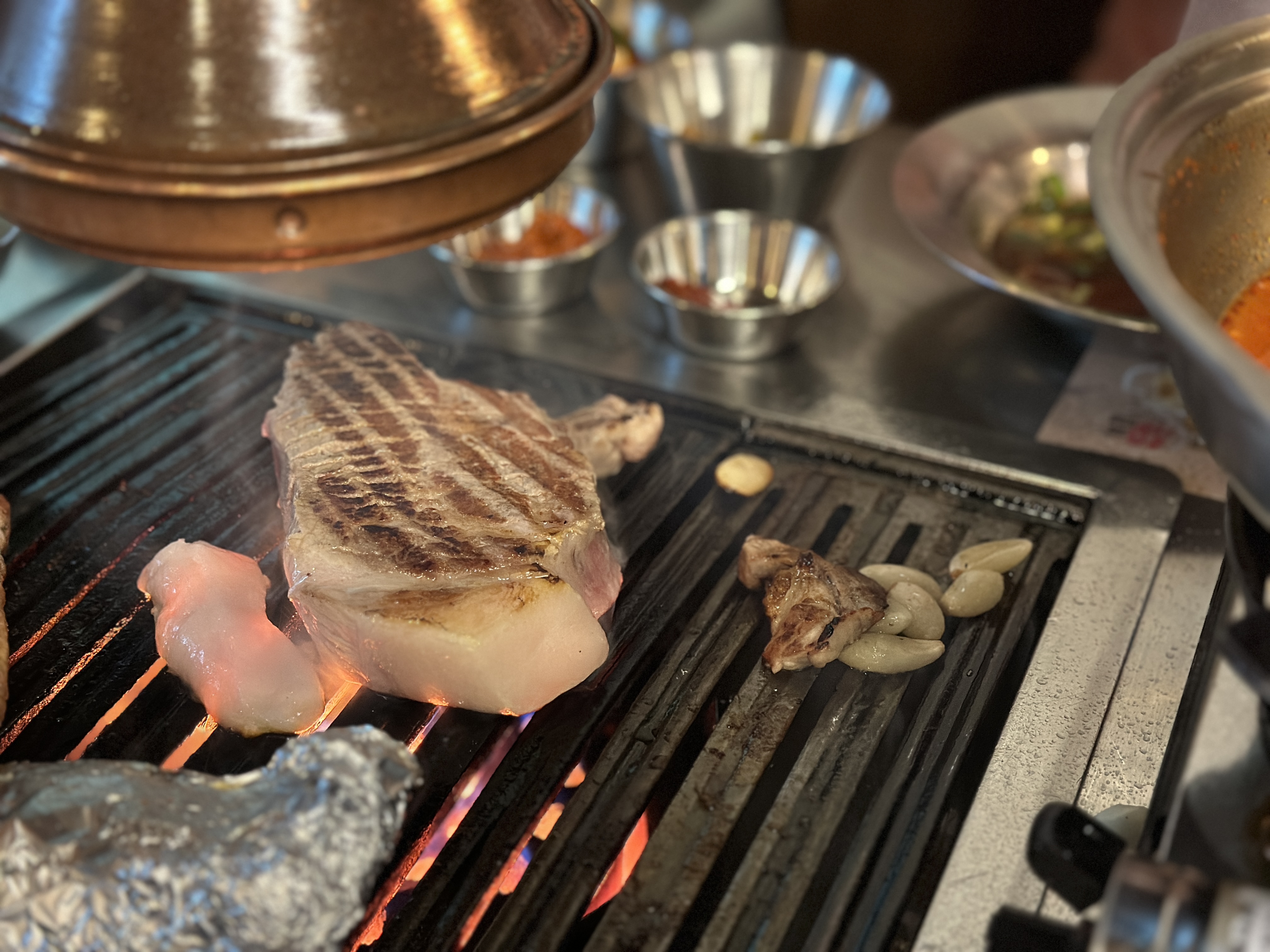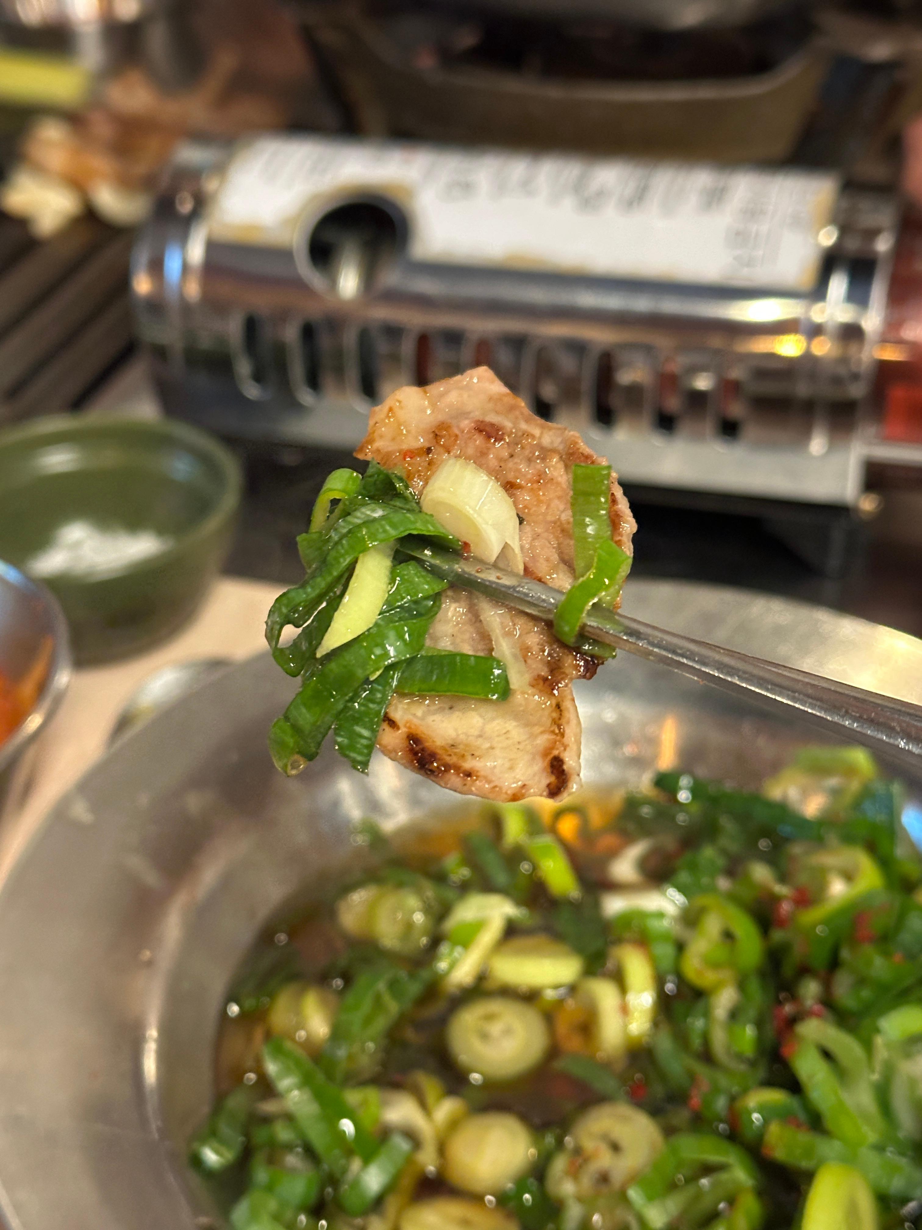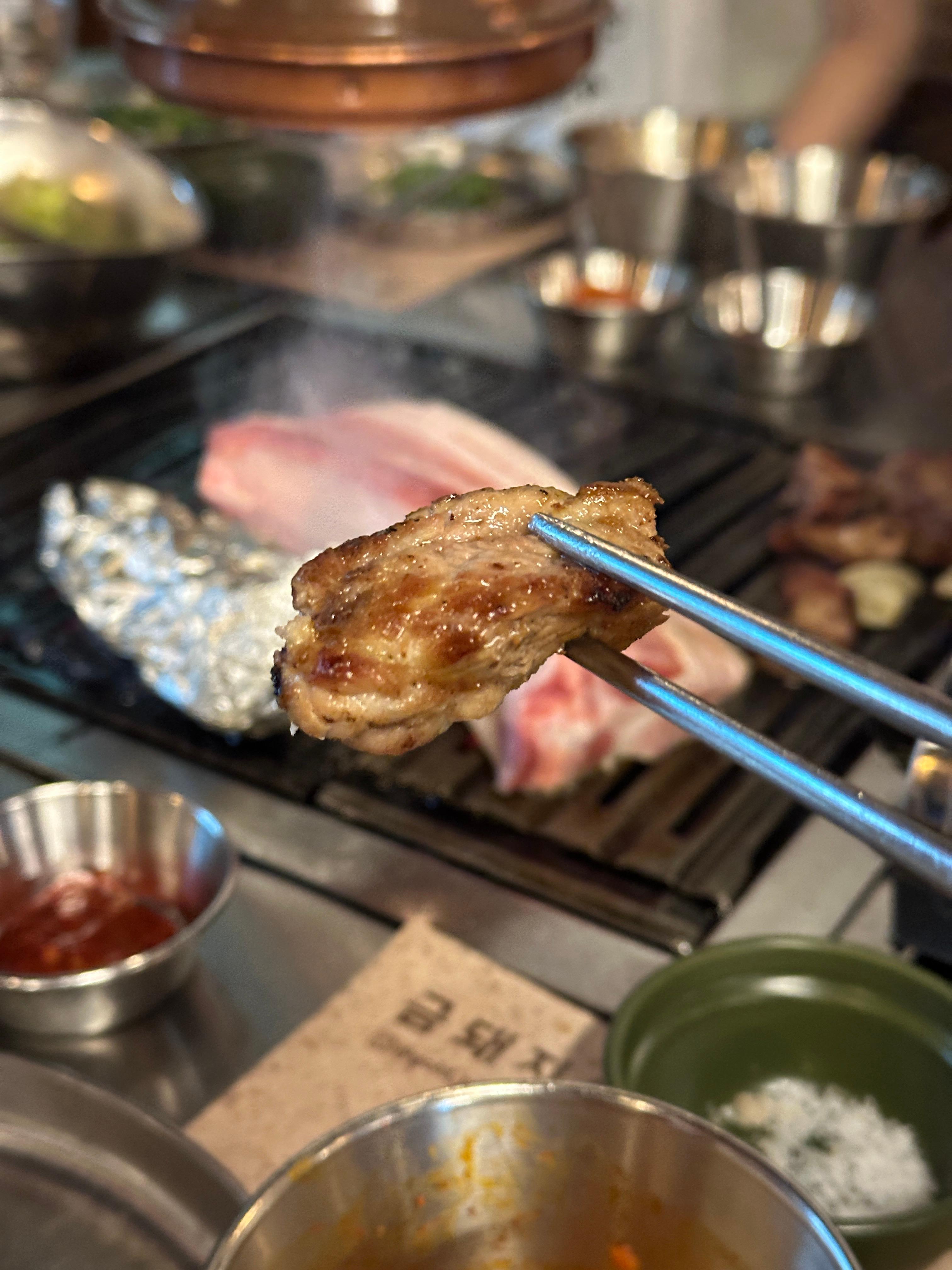 첫 고기는 소금을 찍어 먹는데 쫄깃쫄깃하고 육즙 가득한 맛이 일품입니다.