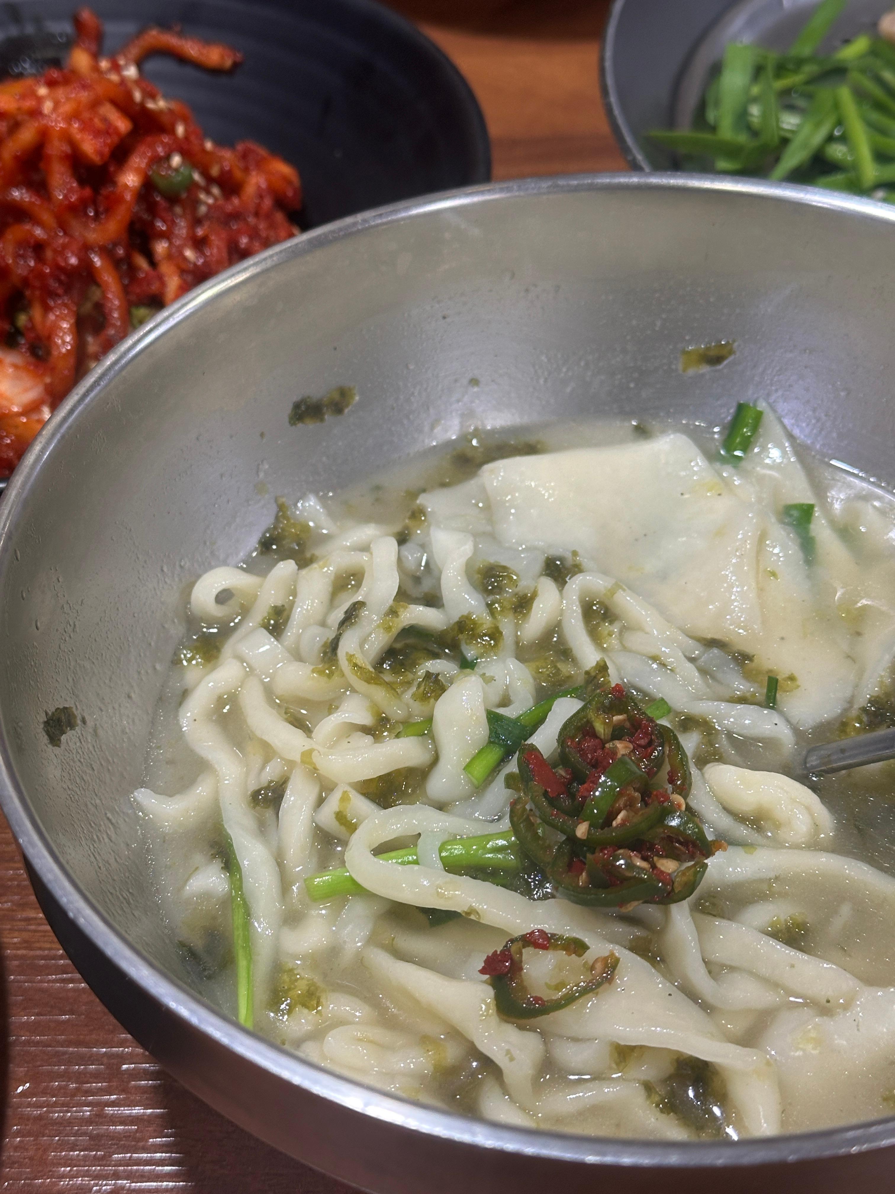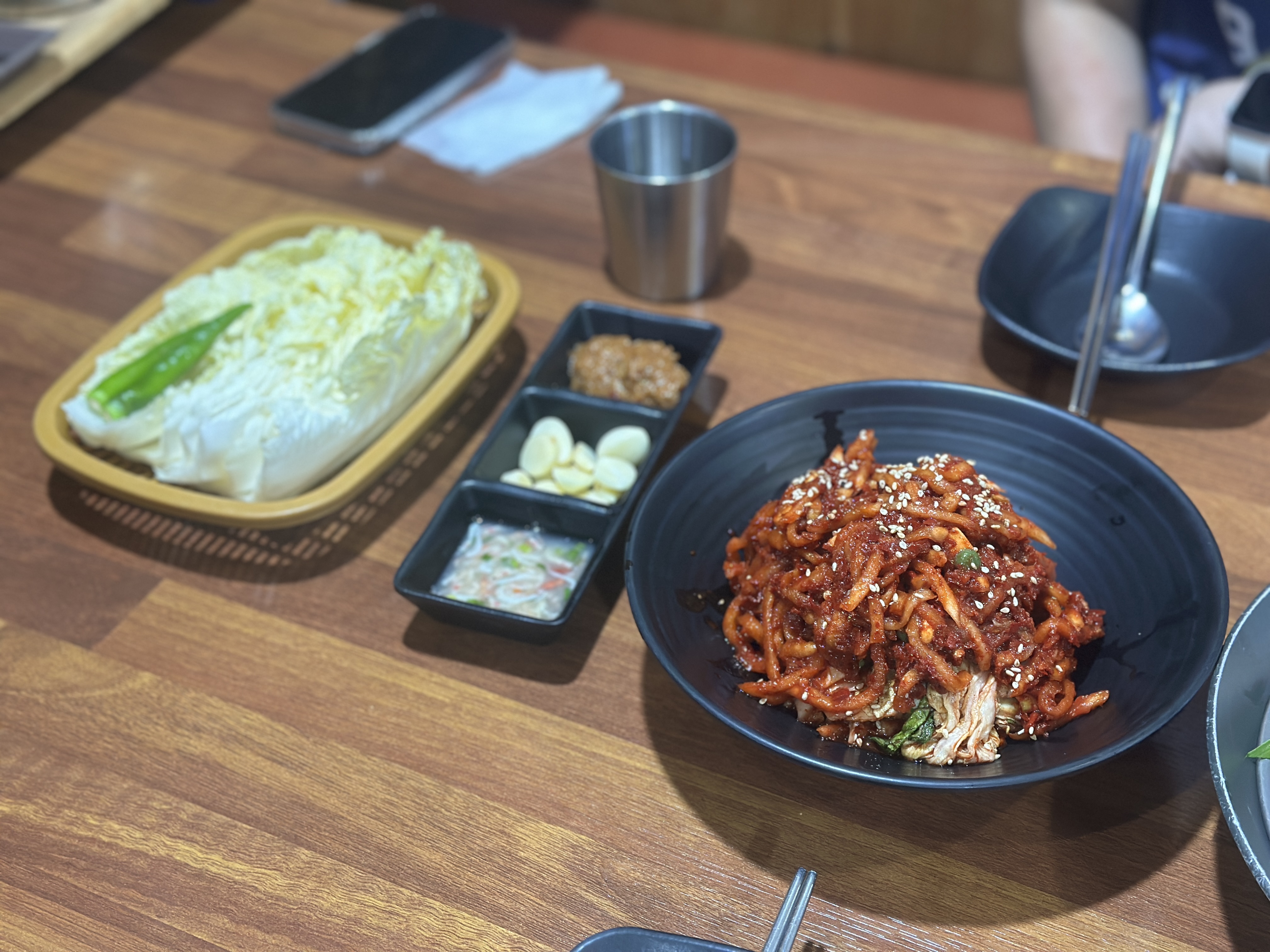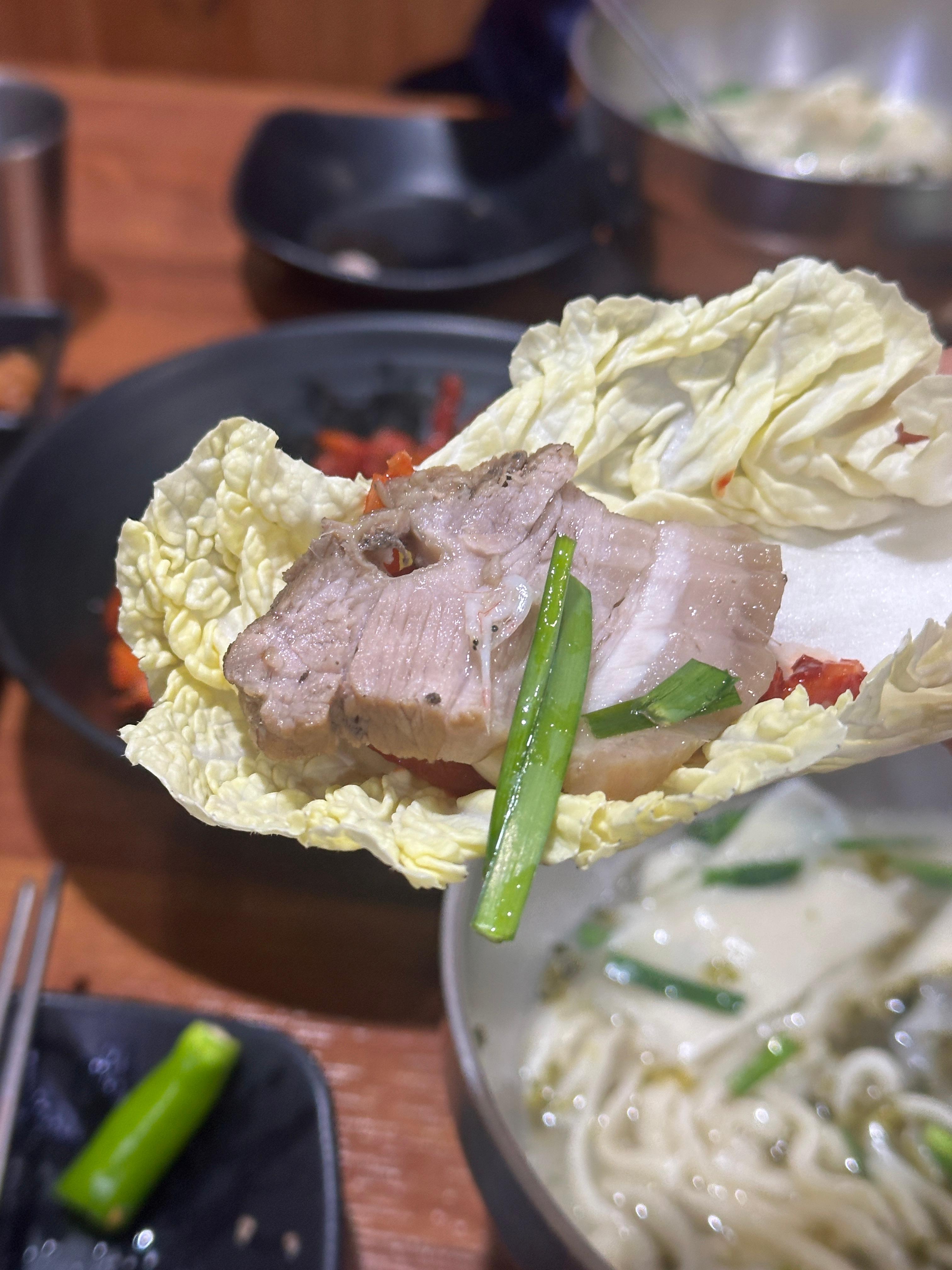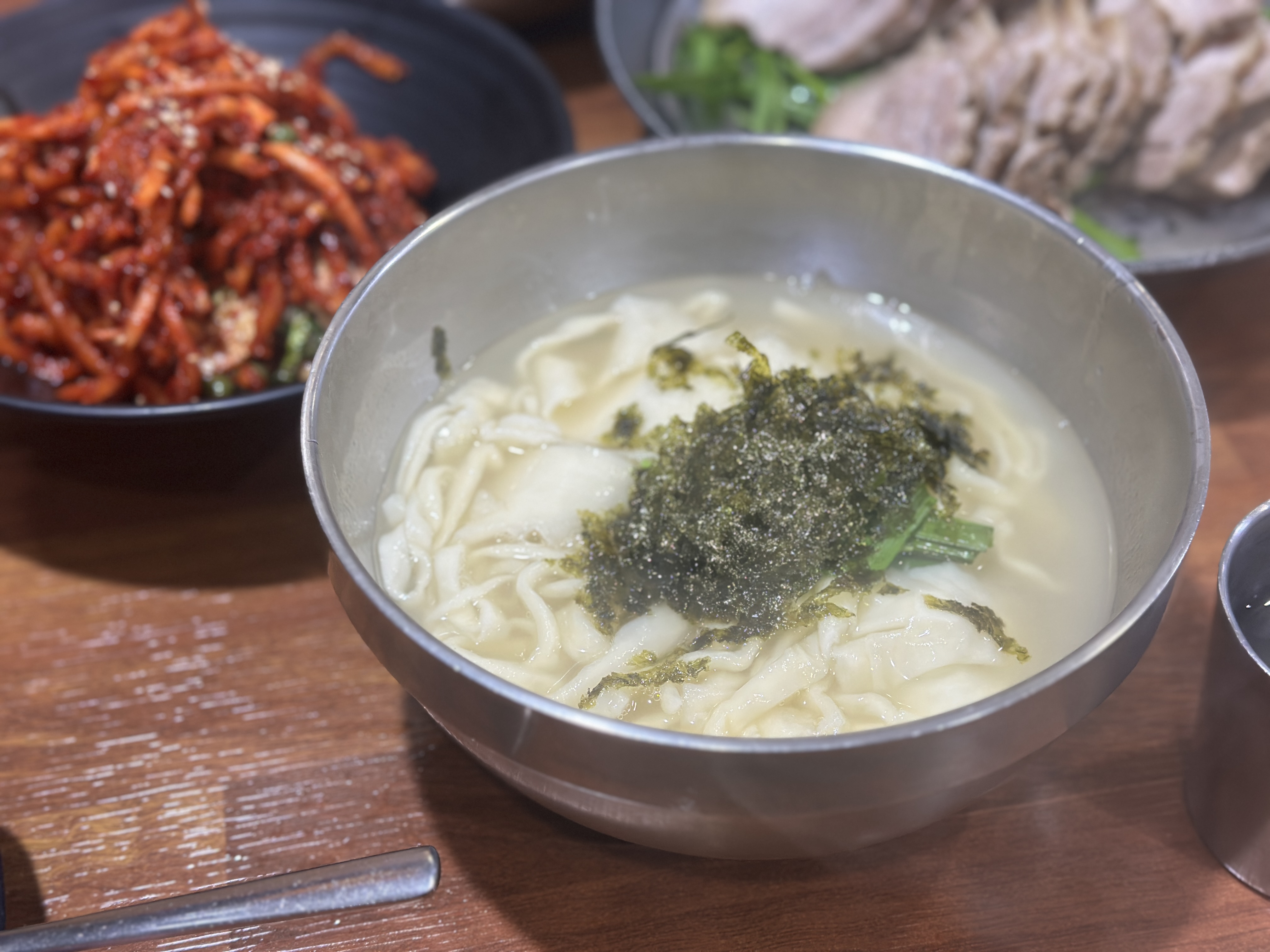 메뉴 준비는 금세였습니다. 보쌈이 나오면서 갑자기 칼국수가 두그릇 나와서 당황...? 그런데 이미 그런 표정 익숙하시다는 듯이