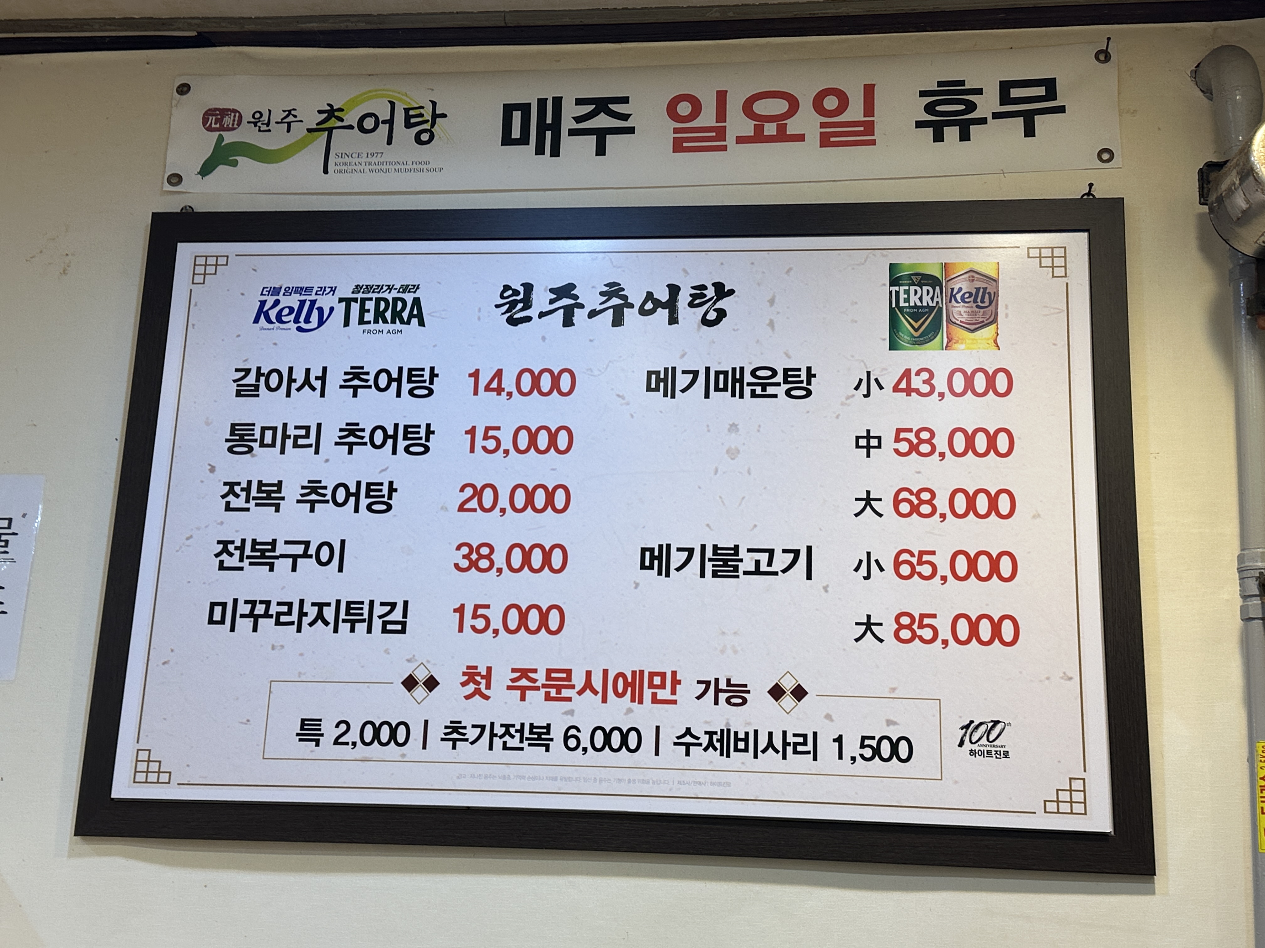 4. 원조원주추어탕 강남본점 메뉴판