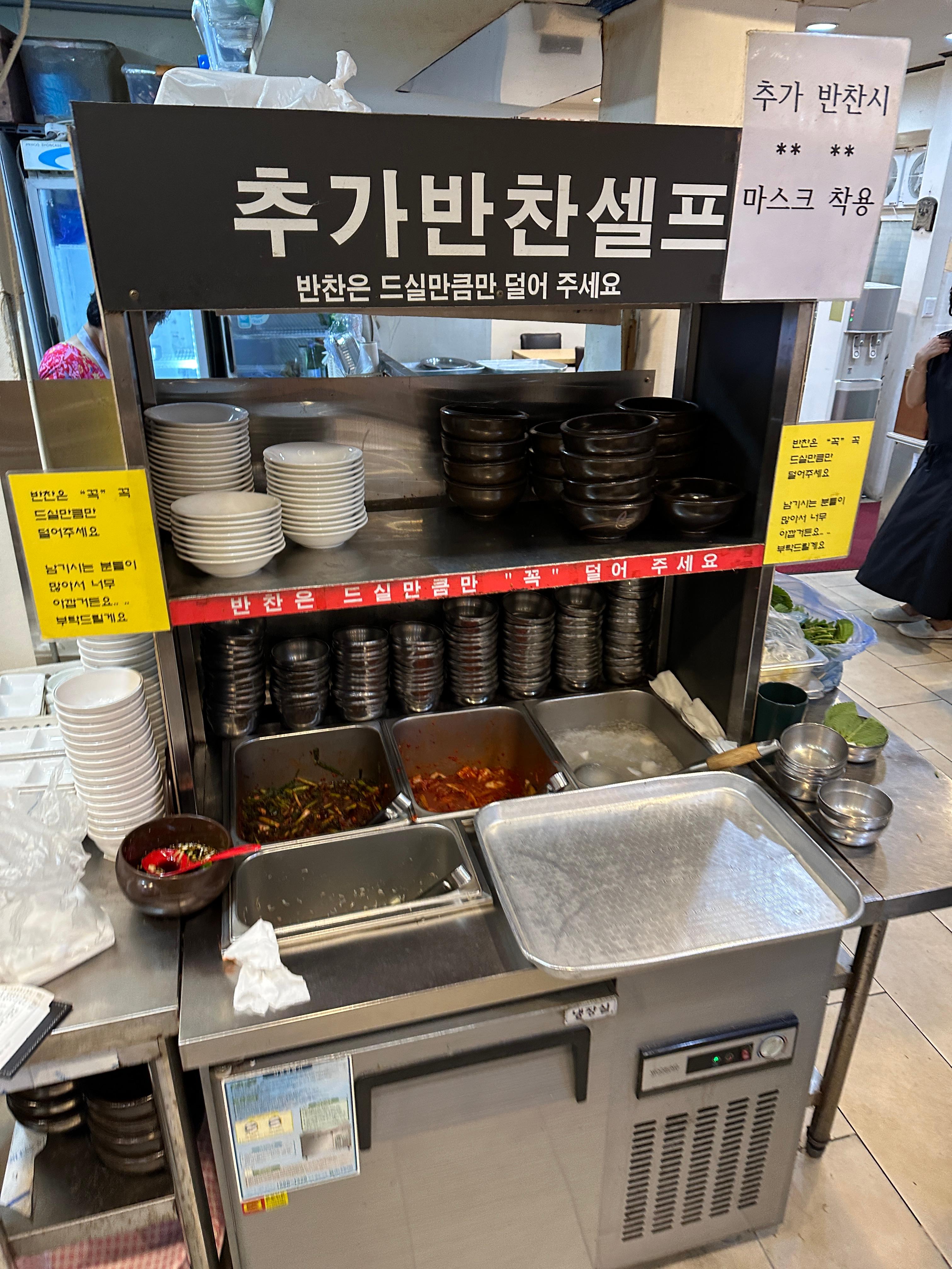 원조원주추어탕 강남본점 메뉴판입니다. 아직 쪼렙이라 통으로 미꾸라지가 들어간 건 못먹겠더라구요. 갈아서 추어탕으로 2인분 주문했습니다. 주변을 둘러보니 메기불고기 많이 드시더라구요. ㅋㅋㅋ 한켠에 셀프반찬바가 있습니다.