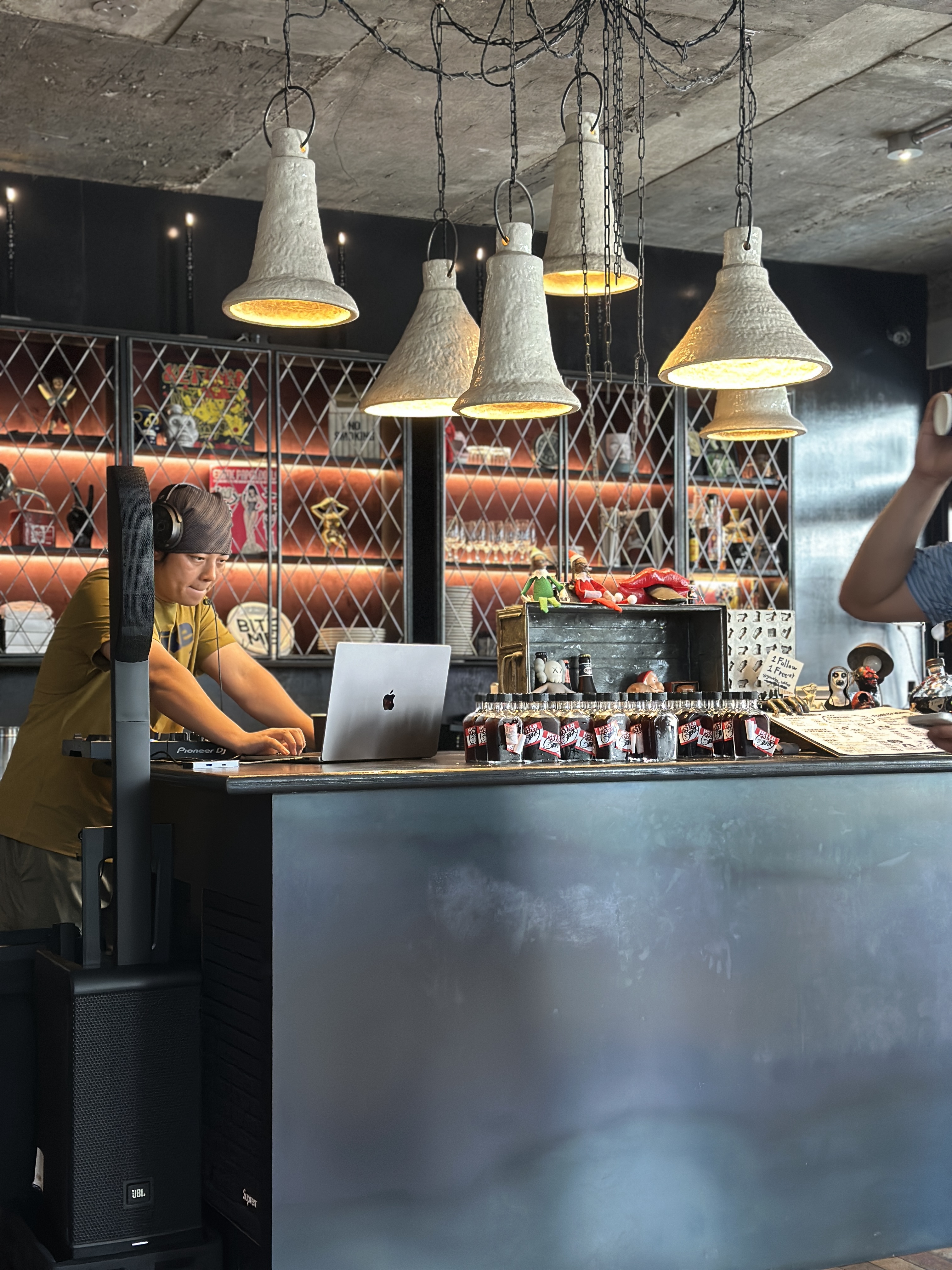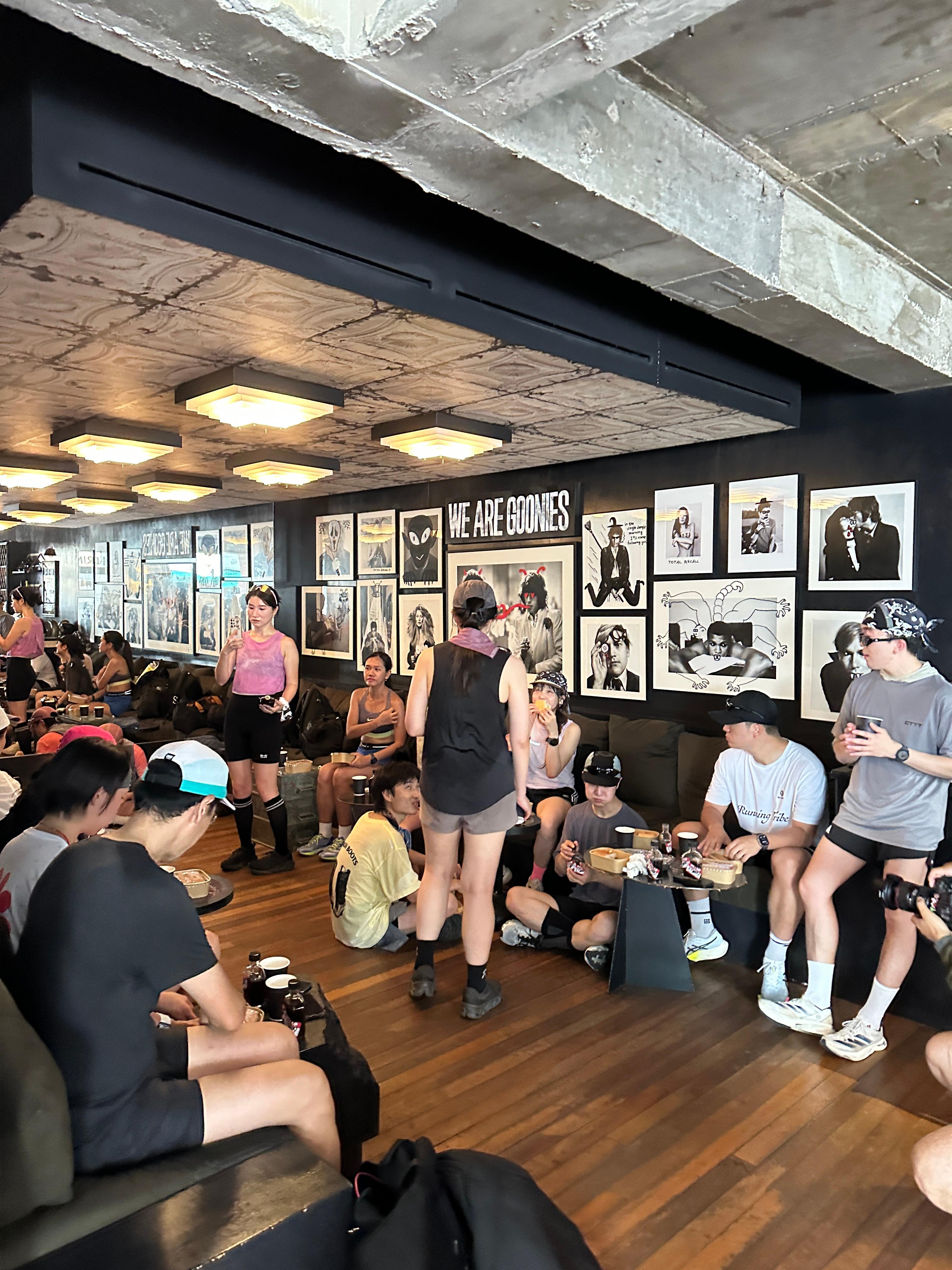 용리단길 구니스 실내를 가득 채운 러너분들입니다. 각각의 조가 도착하시는대로 들어와서 삼삼오오 모여서 후기를 나누고 계셨습니다. 이미 디제이 분께서는 열심히 디제잉중이셨구요.
