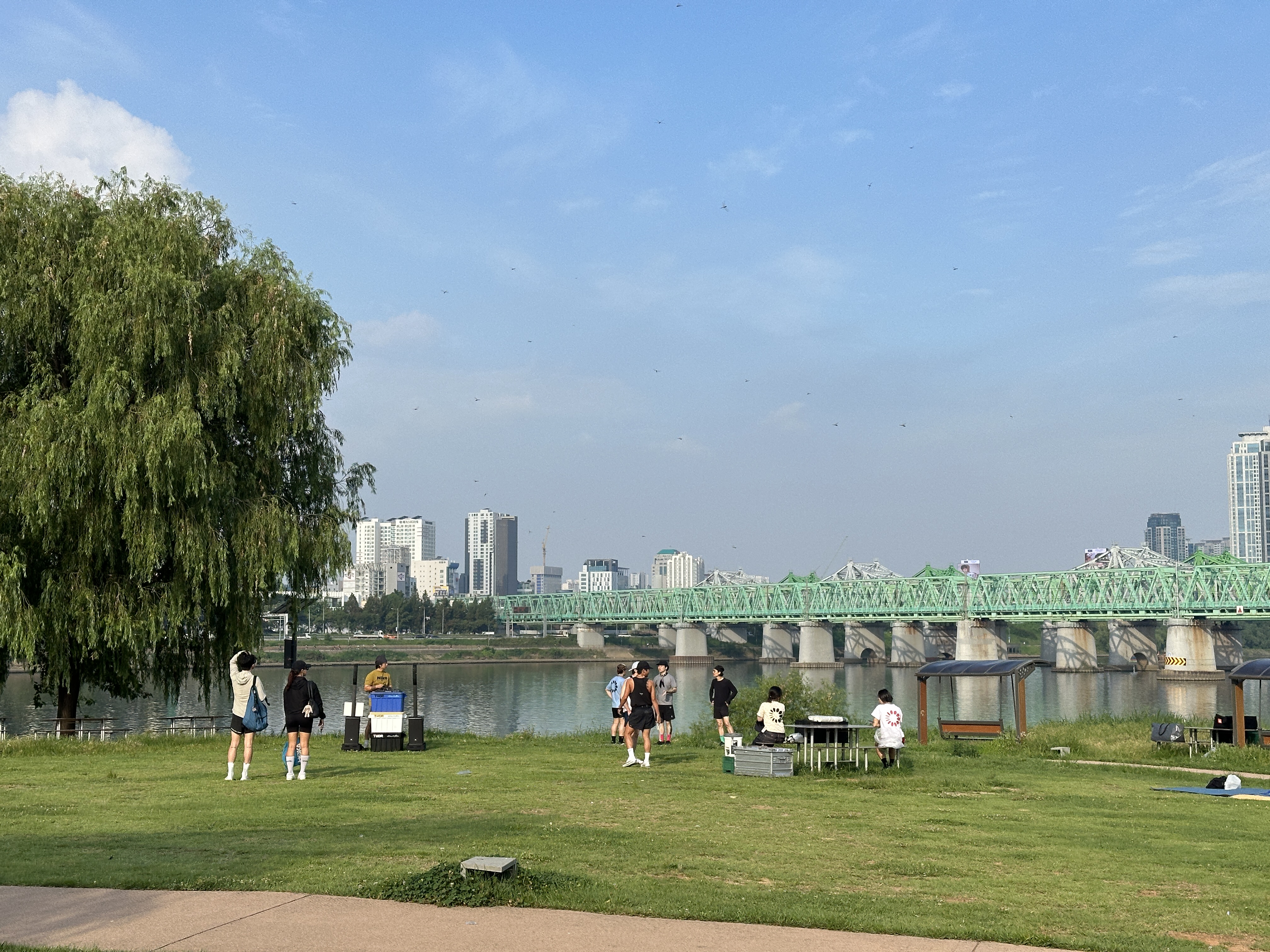 러너분들이 이제 달리기 위해 출발지점으로 이동하는 모습입니다. 코스는 노들섬-동작대교북단-구니스카페 였습니다. 날씨가 화창하고 좋긴 했지만, 8월 초의 아침햇살은 생각보다 강렬하더라구요. 매일 새벽에 뛰다보니 날씨가 이정도까지 뜨거울 줄은 몰랐습니다. ㅋㅋㅋㅋ