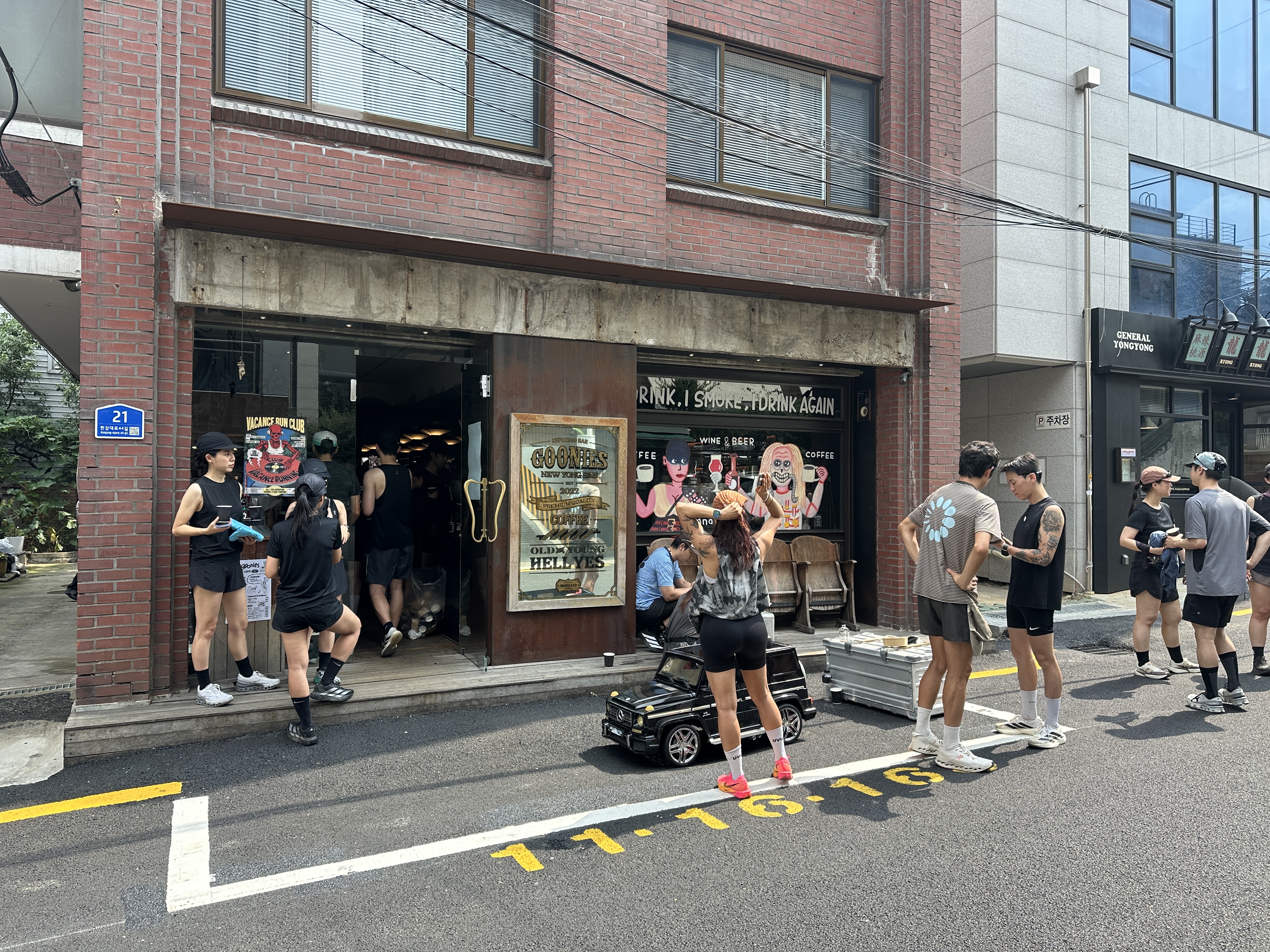 9킬로미터정도 러닝을 마치고 도착한 용리단길의 구니스 입니다. 앞서서 행사설명 열심히 하셨던 멋진 헤어스타일의 사장님께서 운영하시는 카페입니다.