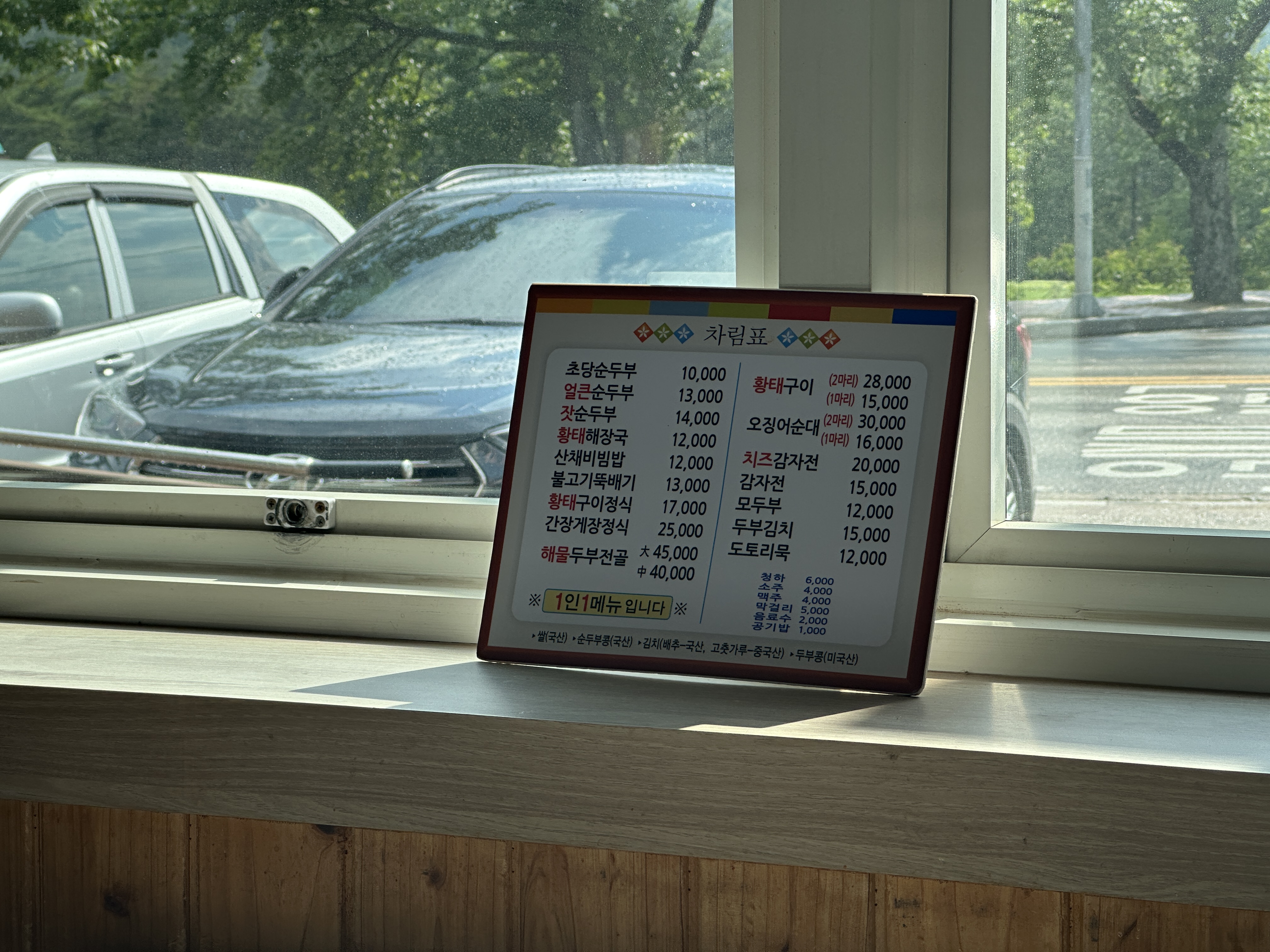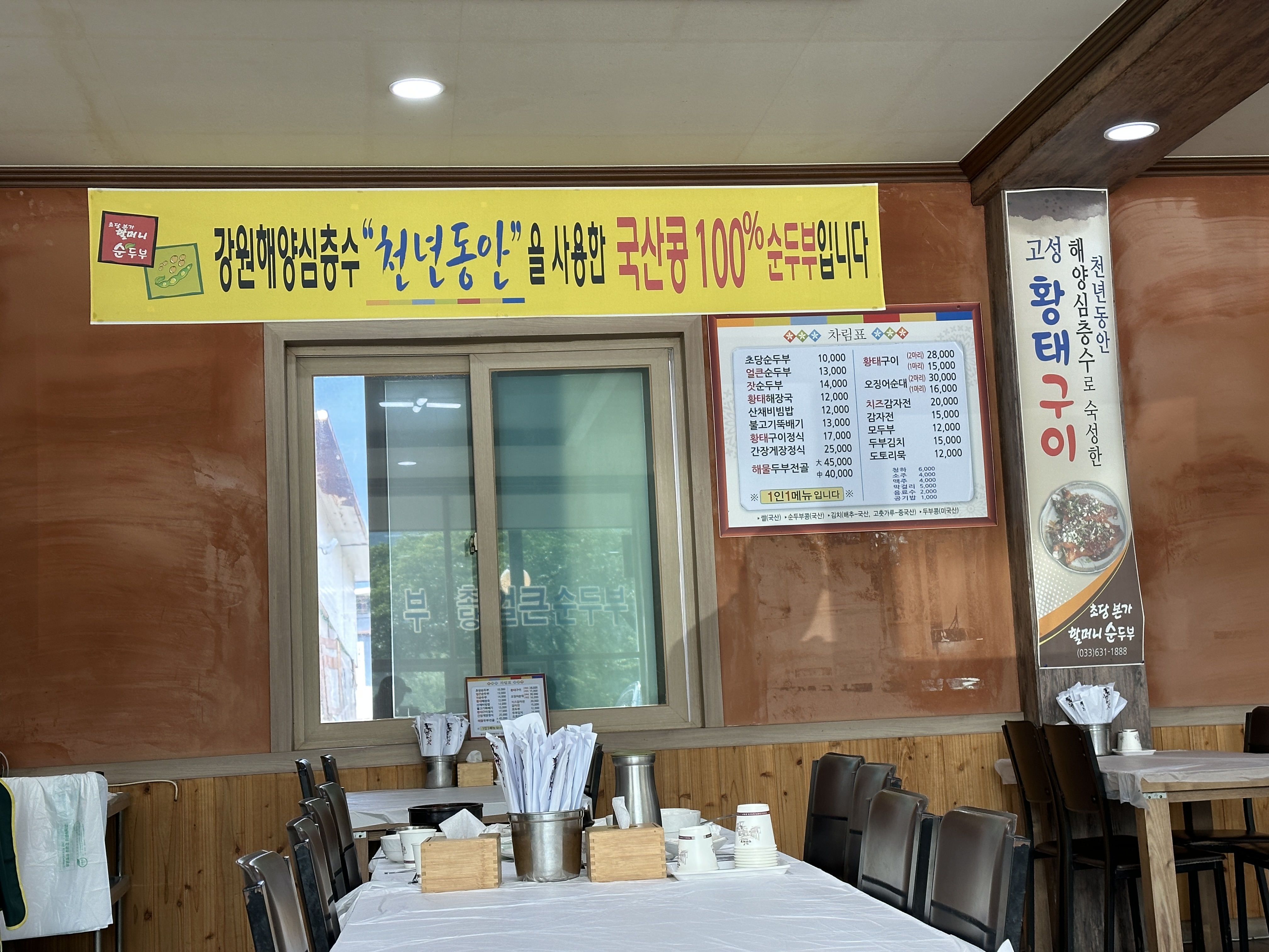 6. 속초 초당본가 할머니 순두부 메뉴판 및 테이블 세팅