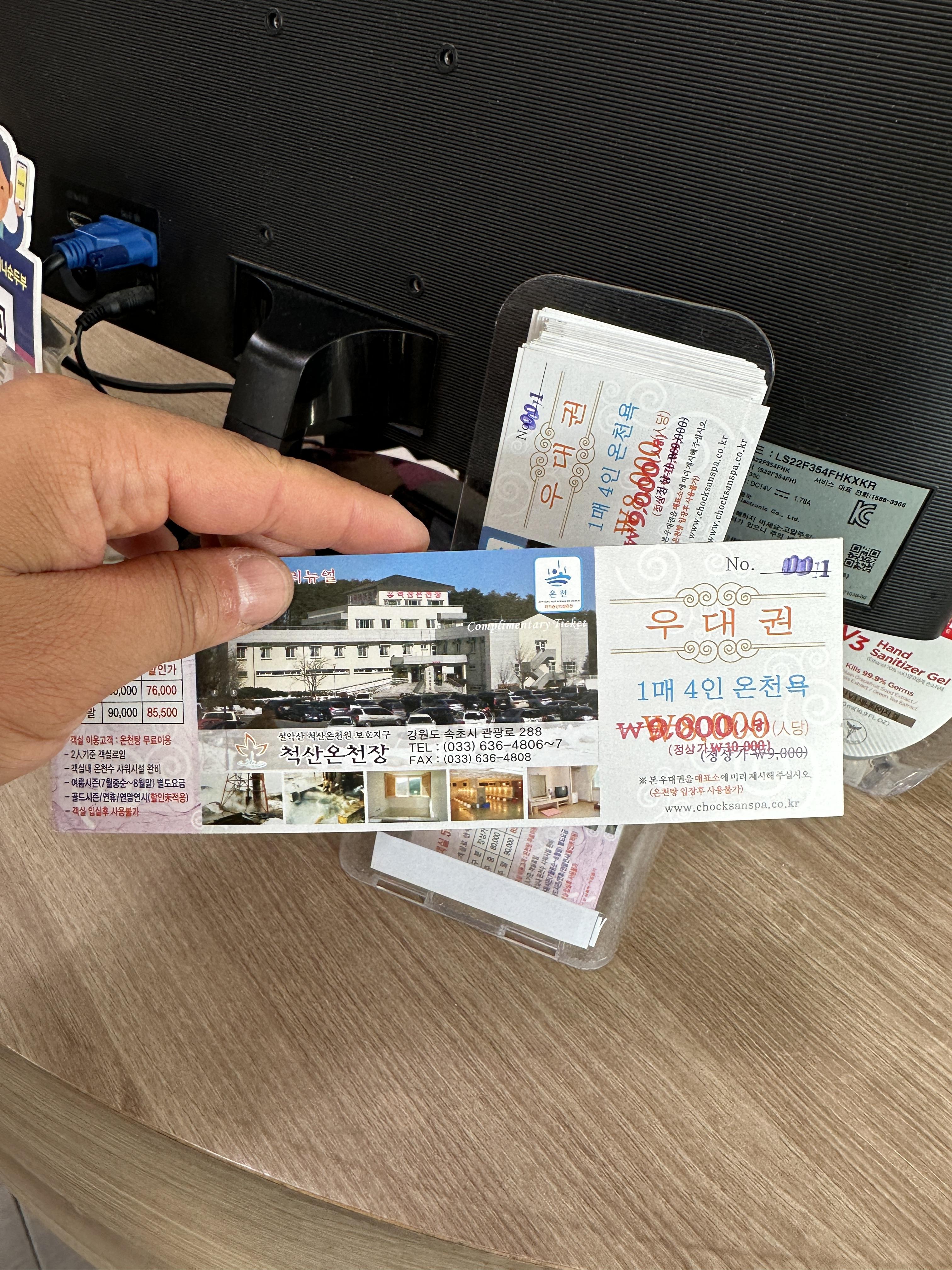 꿀팁은 결제하시는데 이렇게 척산온천 할인권도 마련되어 있어요 ㅋㅋㅋㅋ 연계해서 이용하시면 좋을 것 같아요 ^^