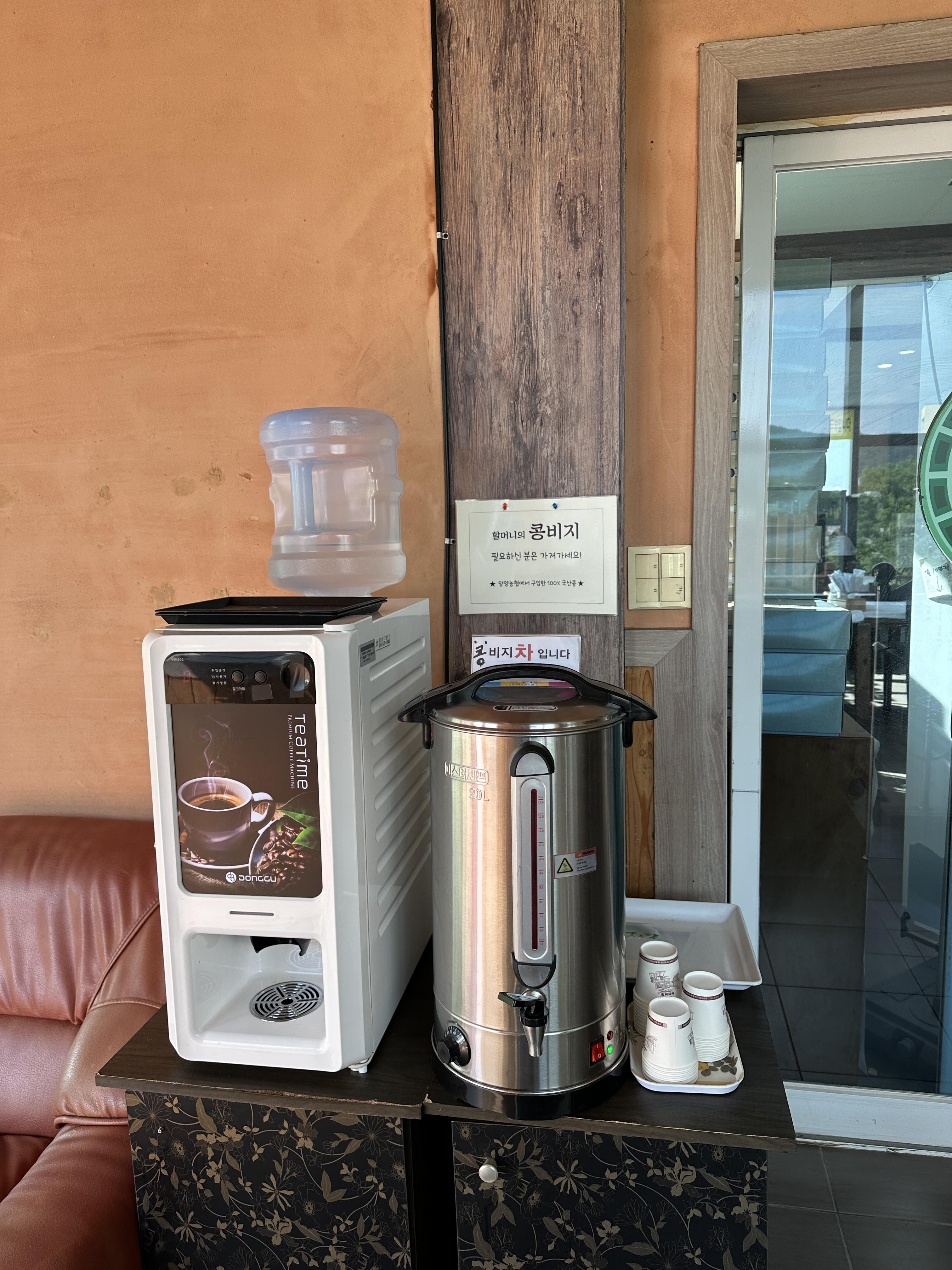식사를 마치고 결제까지 하고 나오게 되면, 이렇게 커피와 차가 마련되어 있습니다. 깔끔하게 마무리 하고 귀가했답니다.~