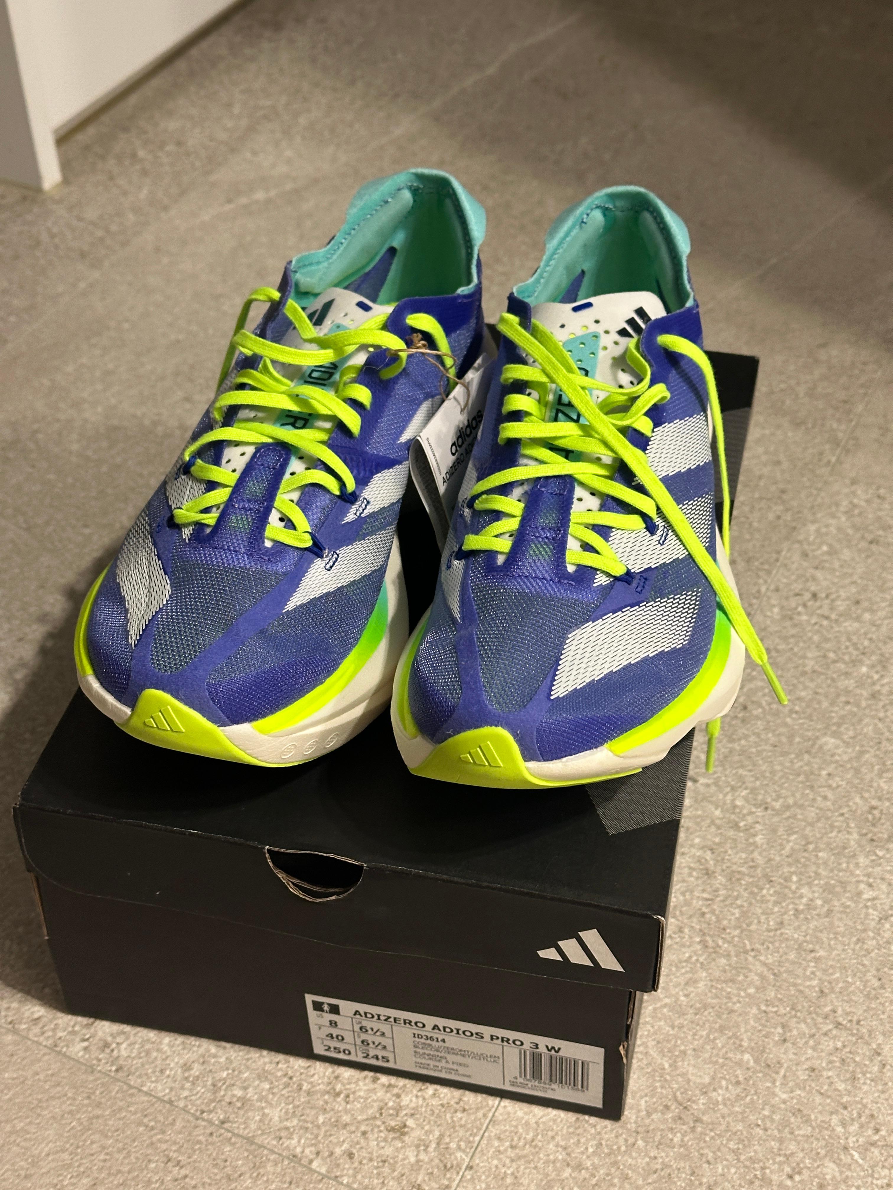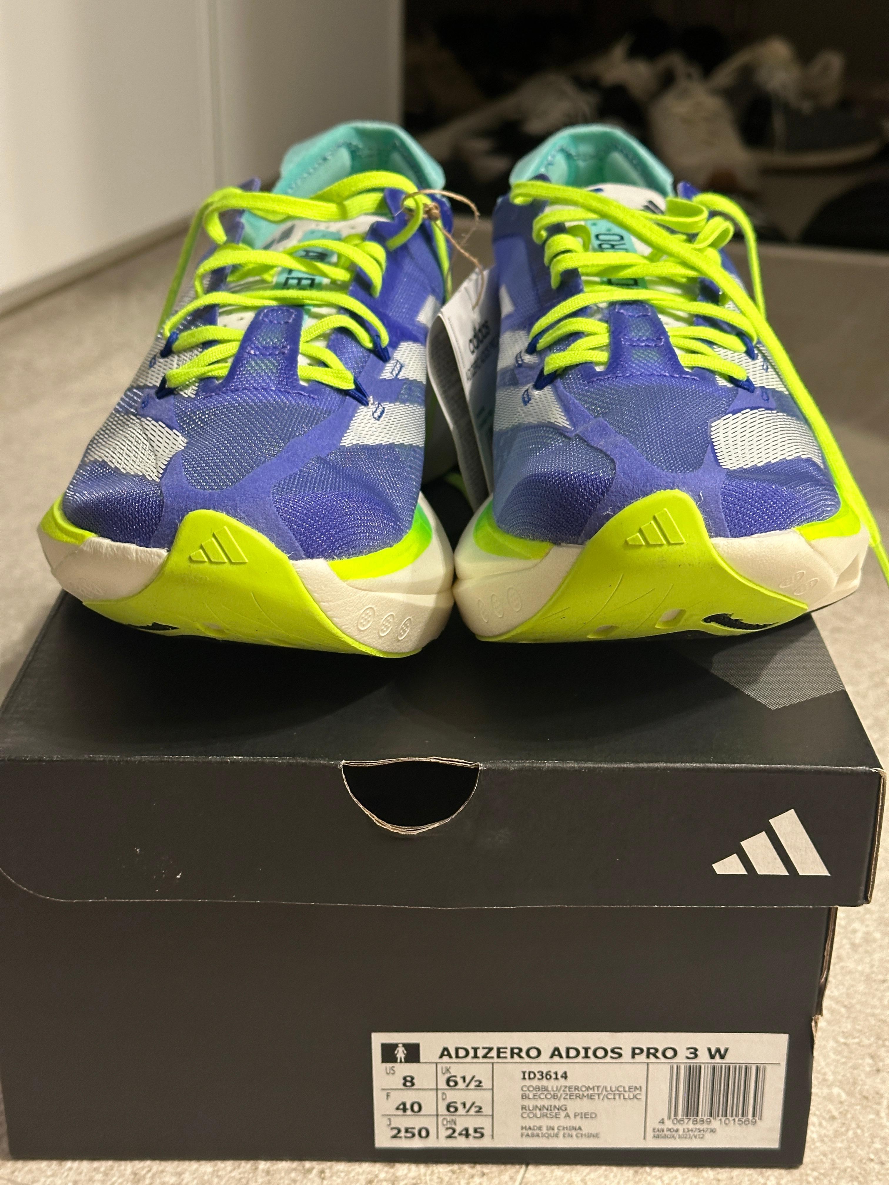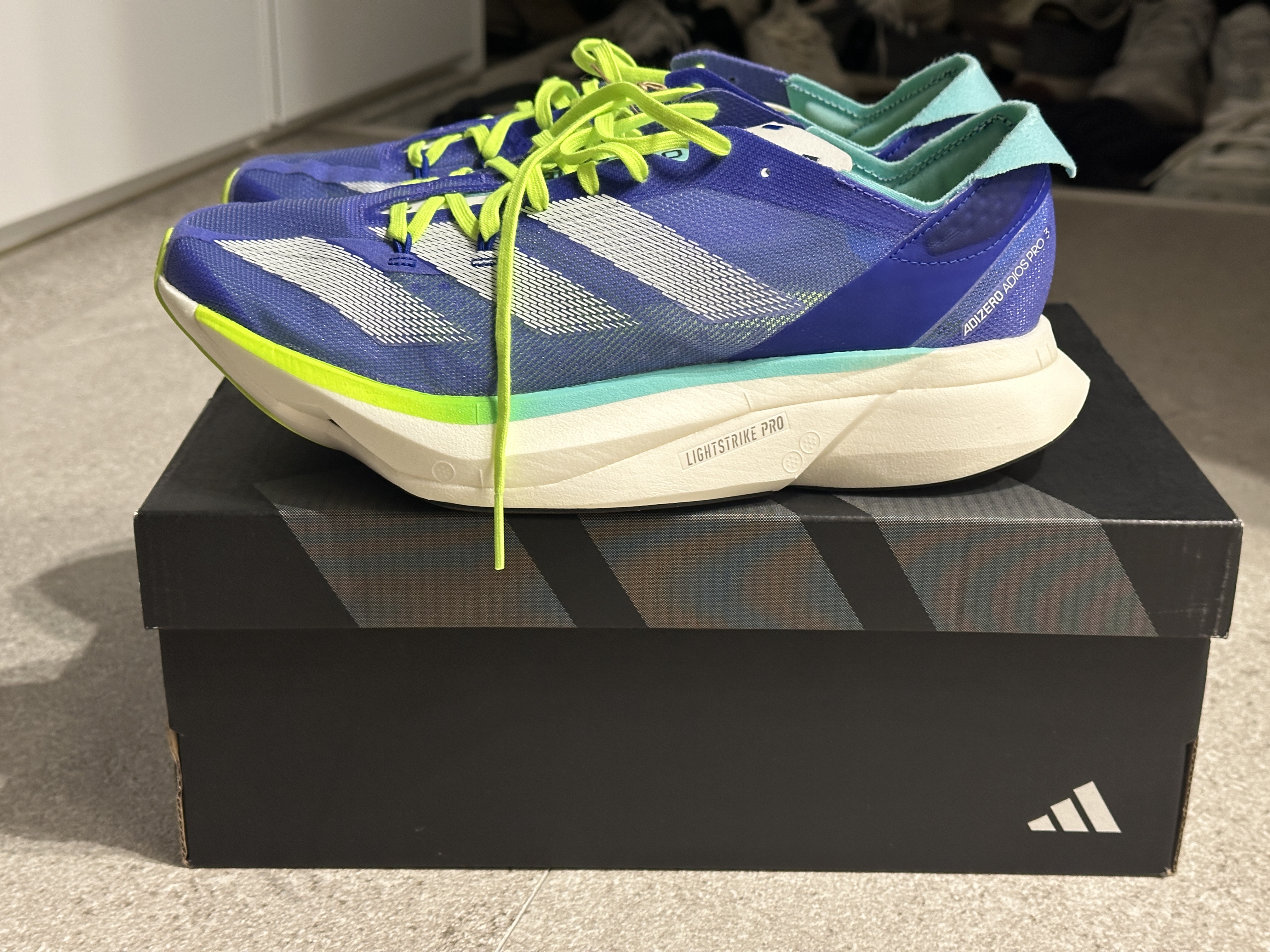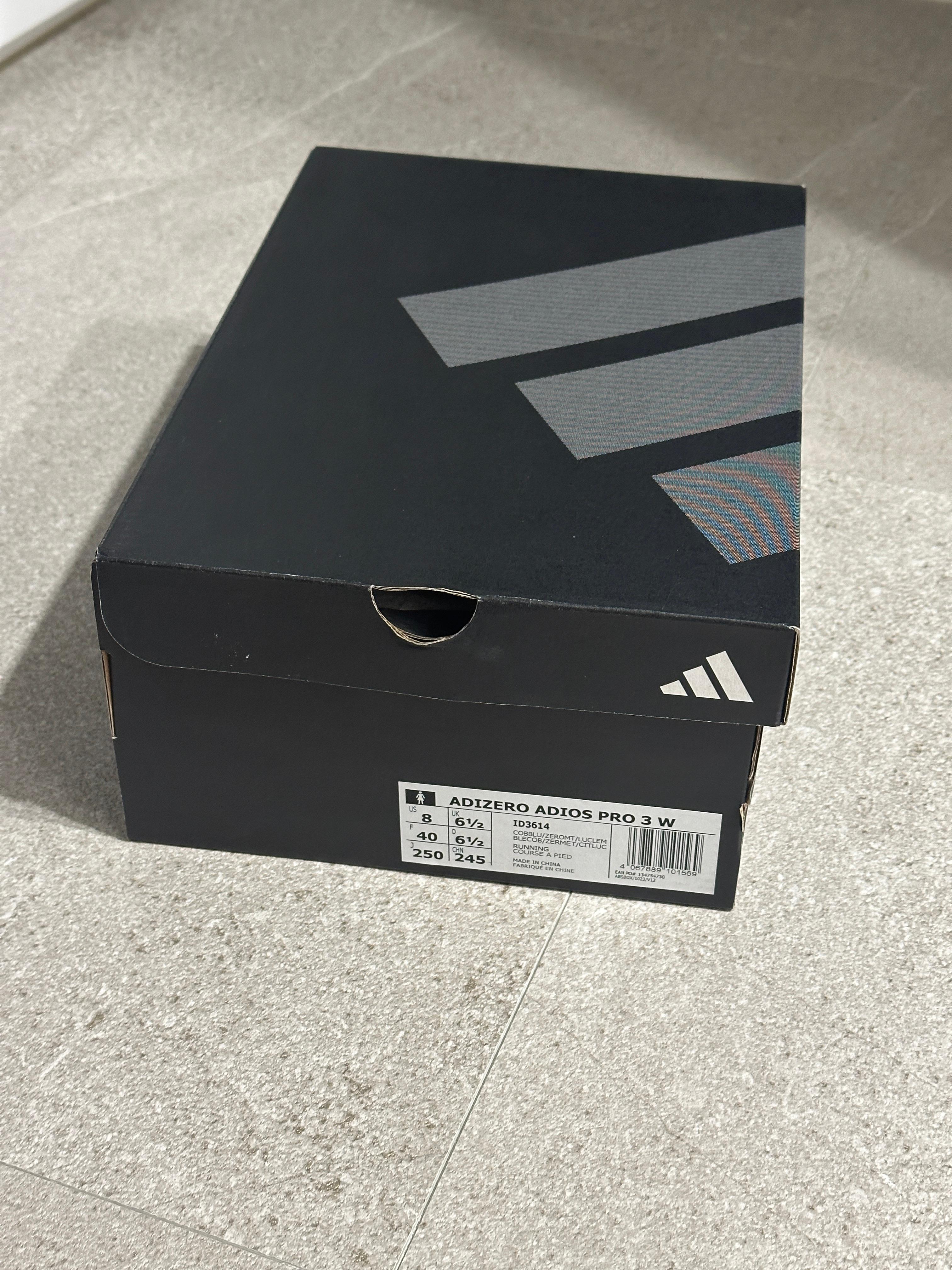 런린이의 본분을 잊고 카본화에 손을 대버렸습니다. 그 유명한 아디다스 아디제로 아디오스 프로3(ID3614). 비록 4가 나왔기 때문이지만... 그래도 구형제품이 되니 구매할 만 한 가격대가 되어서, 아니 그 이상으로 엄청난 가격이 되어서 바로 구입했습니다.