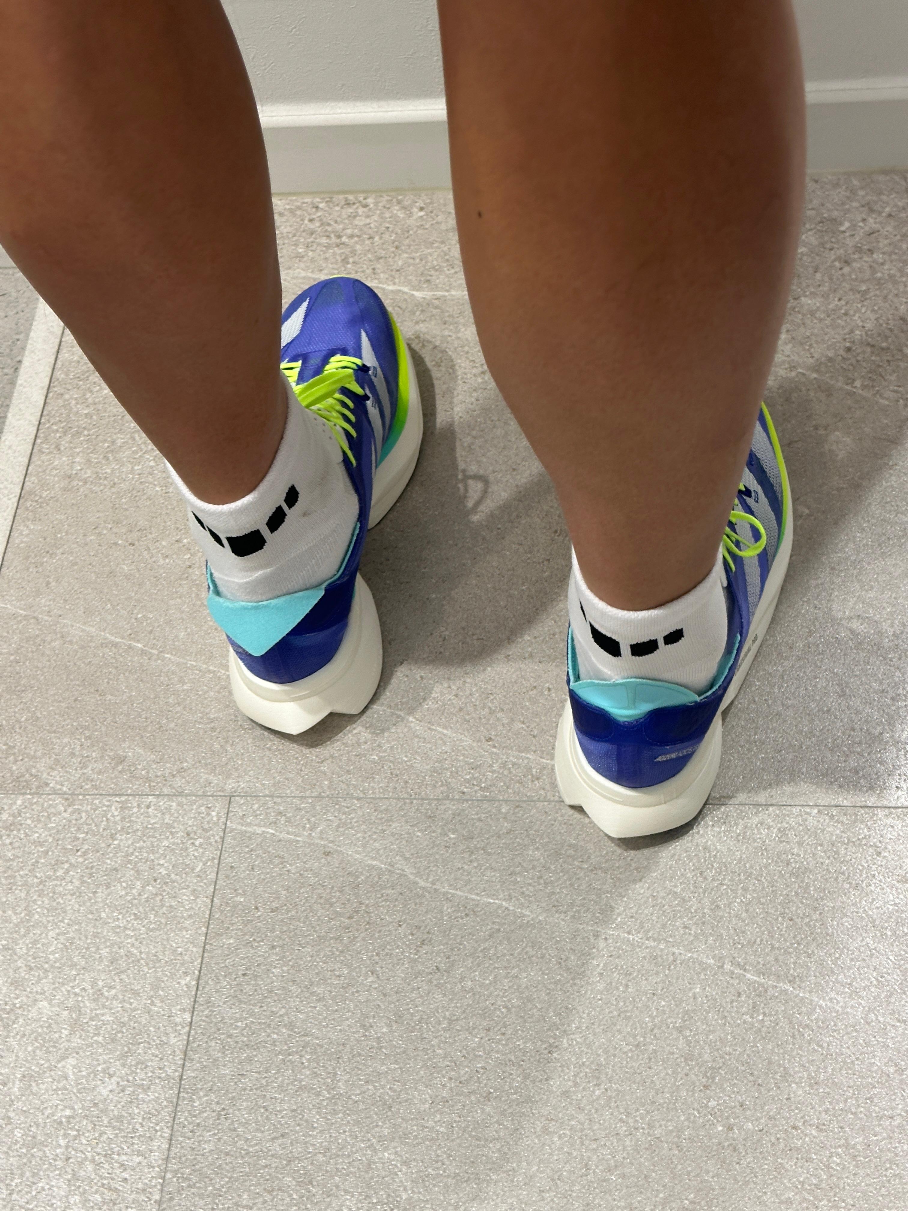 일단 신고 뛰어봤습니다. 뛰기 전에 신었을 때의 느낌은 생각보다 더 쾌적했답니다. 발 앞쪽이 넓어서 조인다는 느낌이 1도 없었고, 중족부 아치쪽도 좁지 않아서 불안하지 않았습니다. 물론 집어넣을 때야 조금 번거롭긴 하지만 그래도 꽤나 딱 맞는 모습입니다. ㅋㅋ