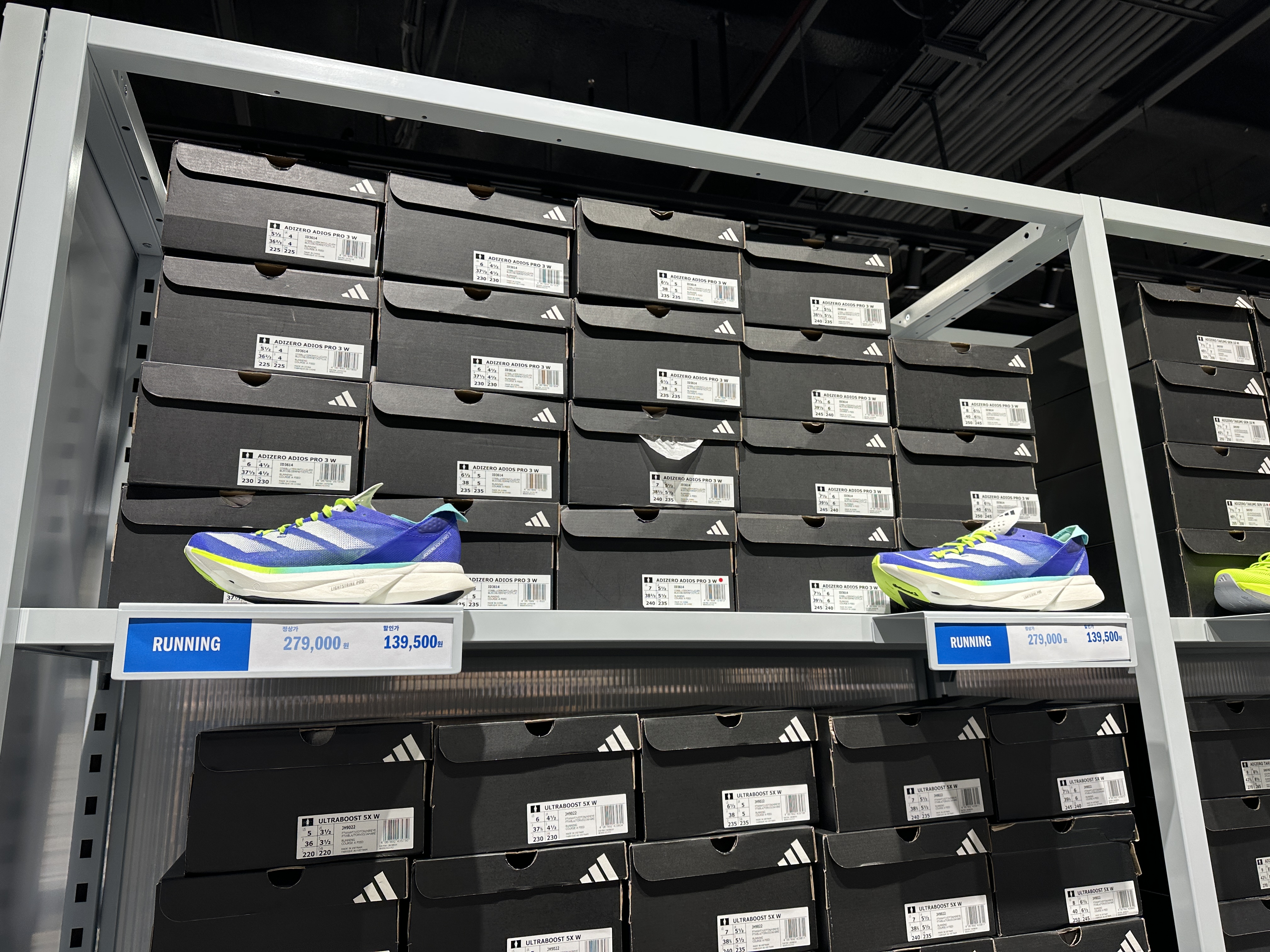러닝을 함께 즐기는 친구들 중 한 명이 단톡방에 올린 글. 의왕 타임빌라스에서 9만원대에 아디오스 프로 3을 살 수 있대! ㅋㅋㅋㅋ
