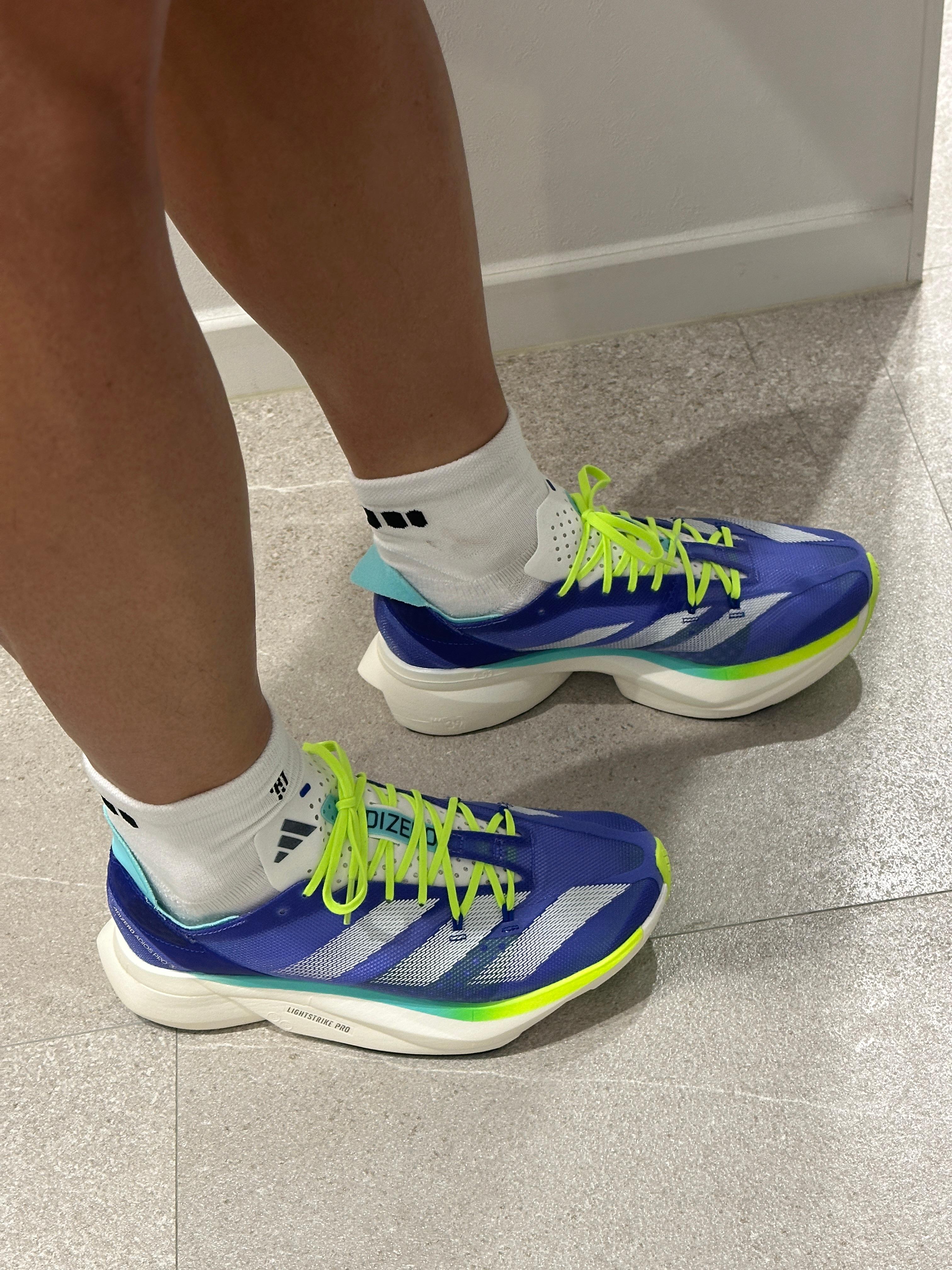아디오스 프로3는 마라톤 레이스와 고강도 훈련에 적합한 슈퍼슈즈로, 안정성과 추진력이 장점인 모델. 쿠션감을 극대화한 신발보다는 균형 잡힌 퍼포먼스를 원하는 러너에게 잘 맞음.