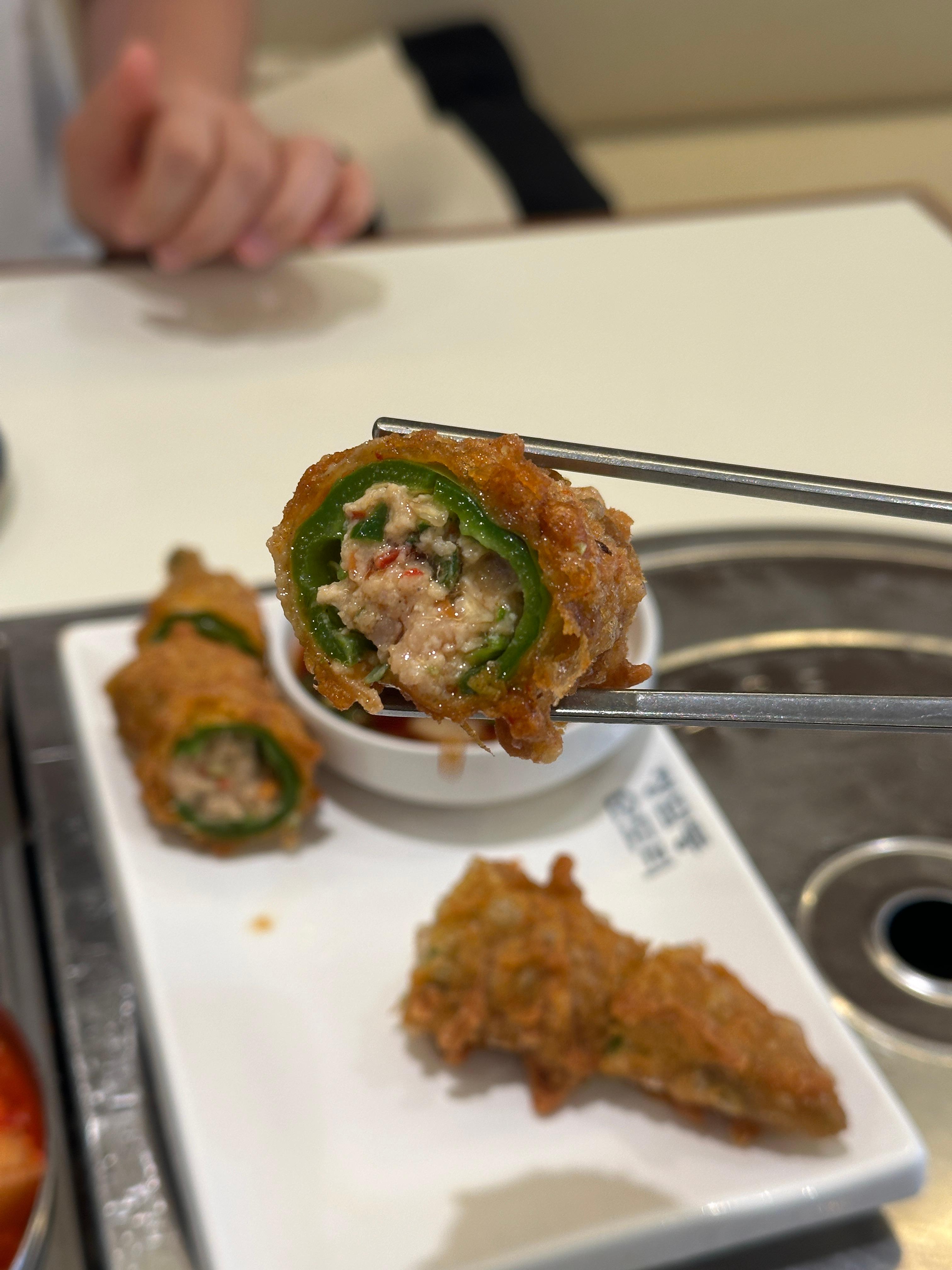 청담동순도리 신사점의 고추튀김입니다. 잘 입혀진 튀김옷과 꽉 찬 고기 속이 맛있네요. 세트메뉴로 고추튀김 추가하여 드시기에 딱이에요.