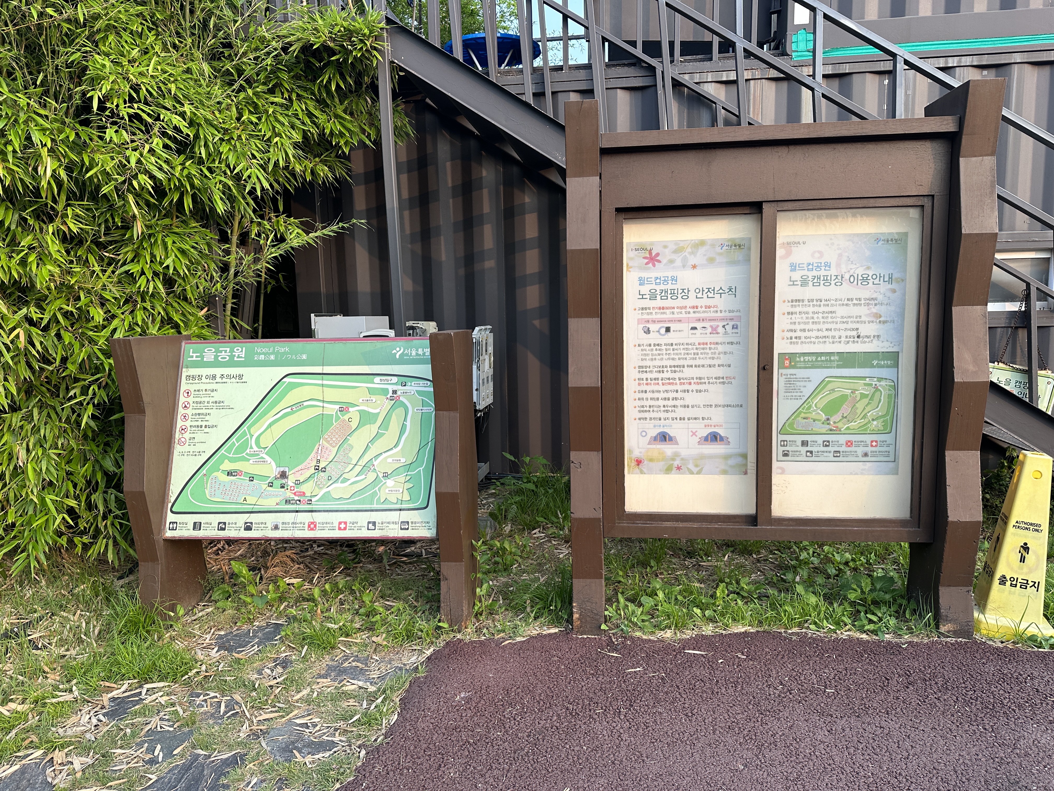 일단 서울 노을캠핑장은 차량 접근이 캠핑장 아래 주차장까지만 가능합니다.
