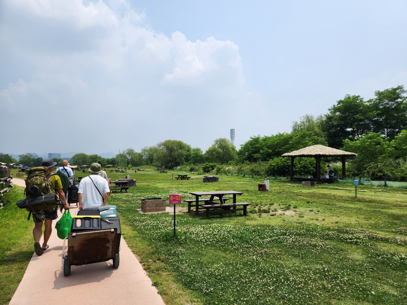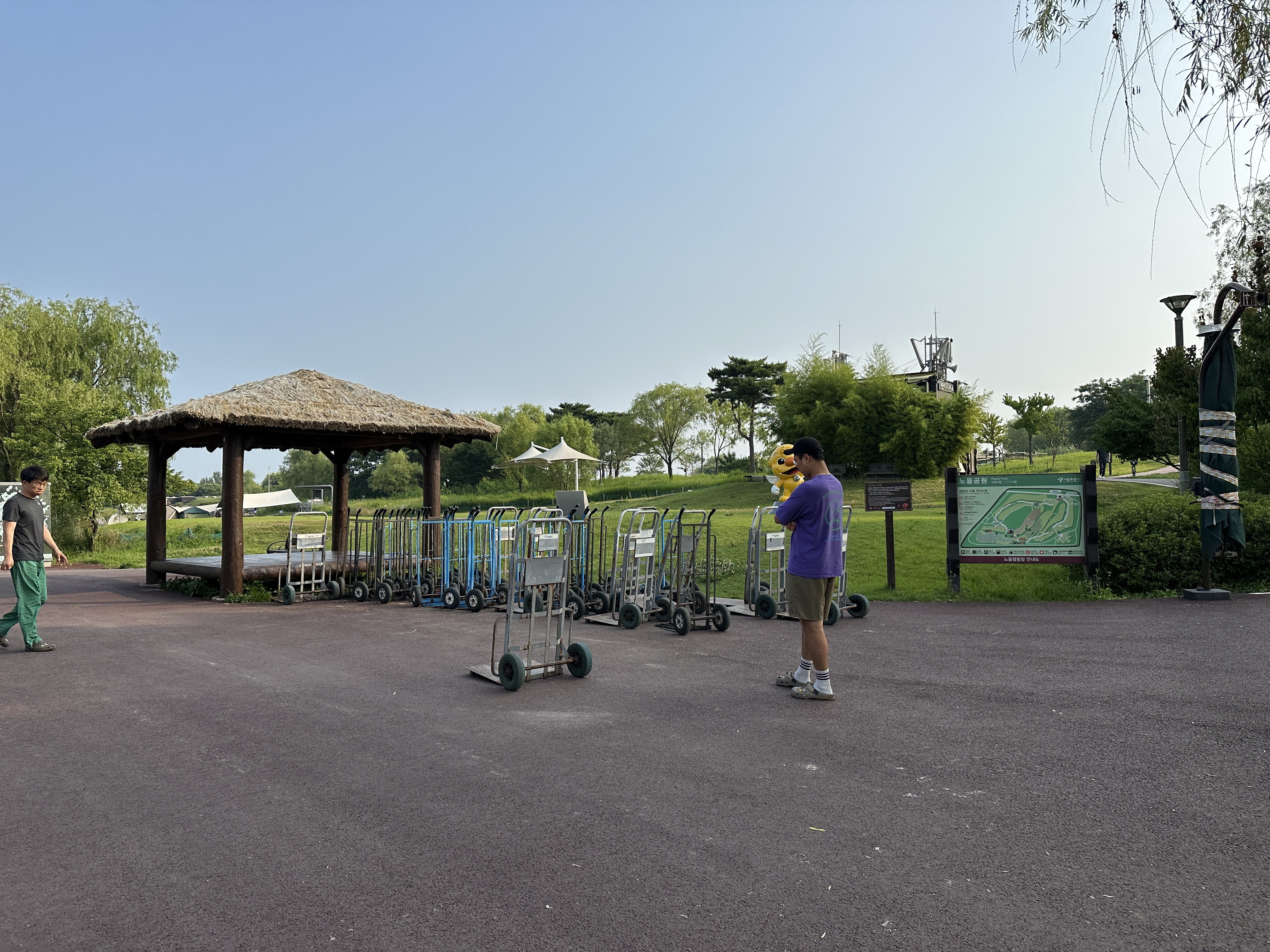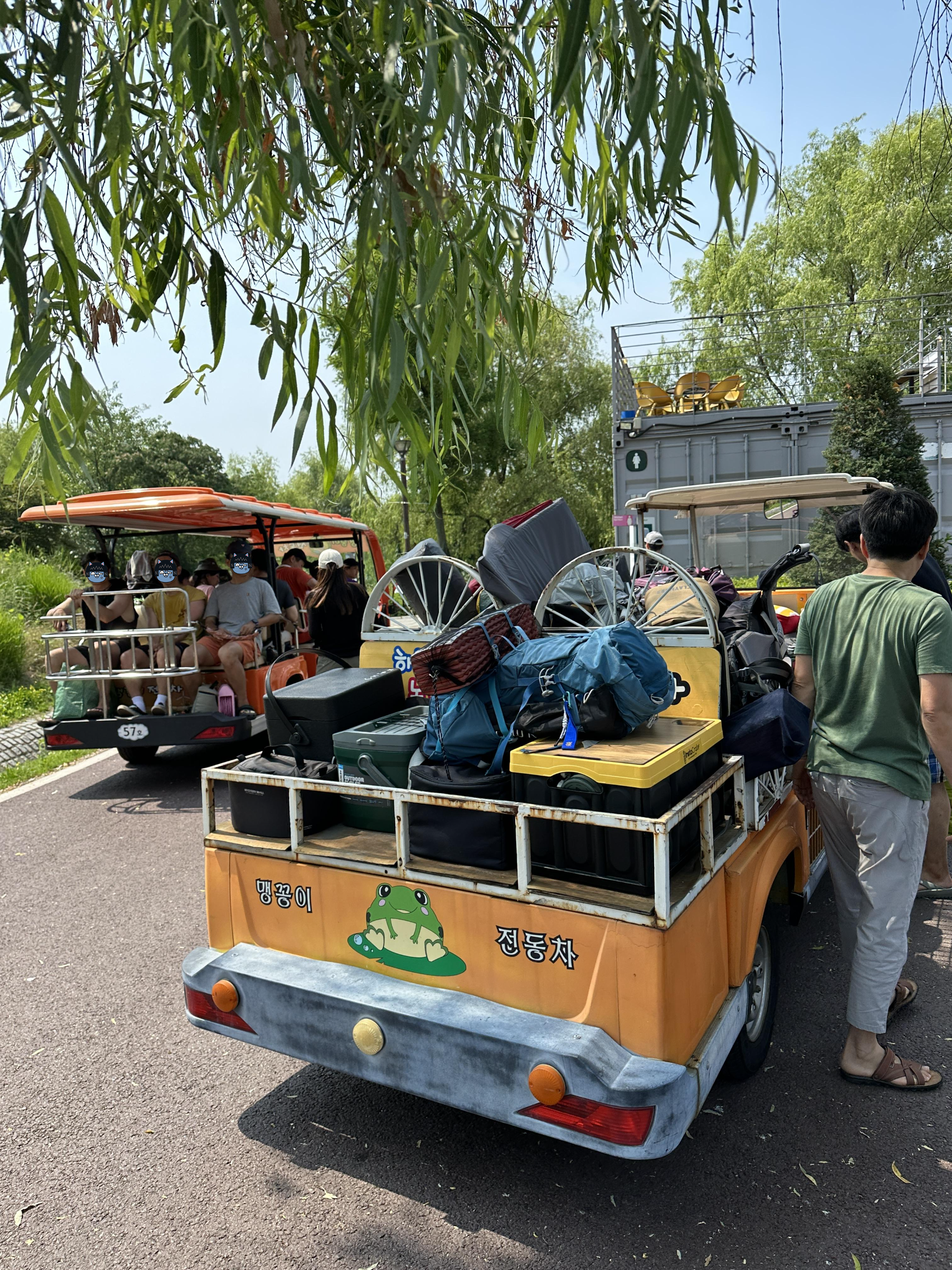 잠깐 언급했듯이, 서울 노을캠핑장은 맹꽁이 전동차로 이동 후 손수레로 사이트까지 이동합니다.