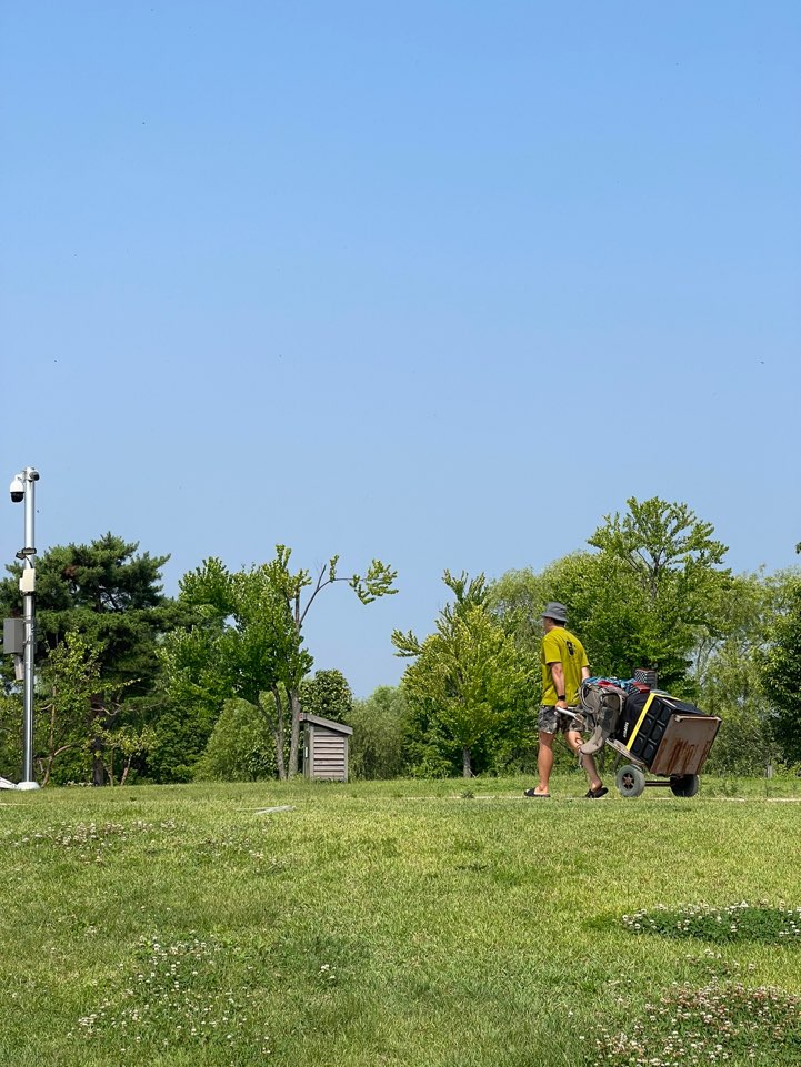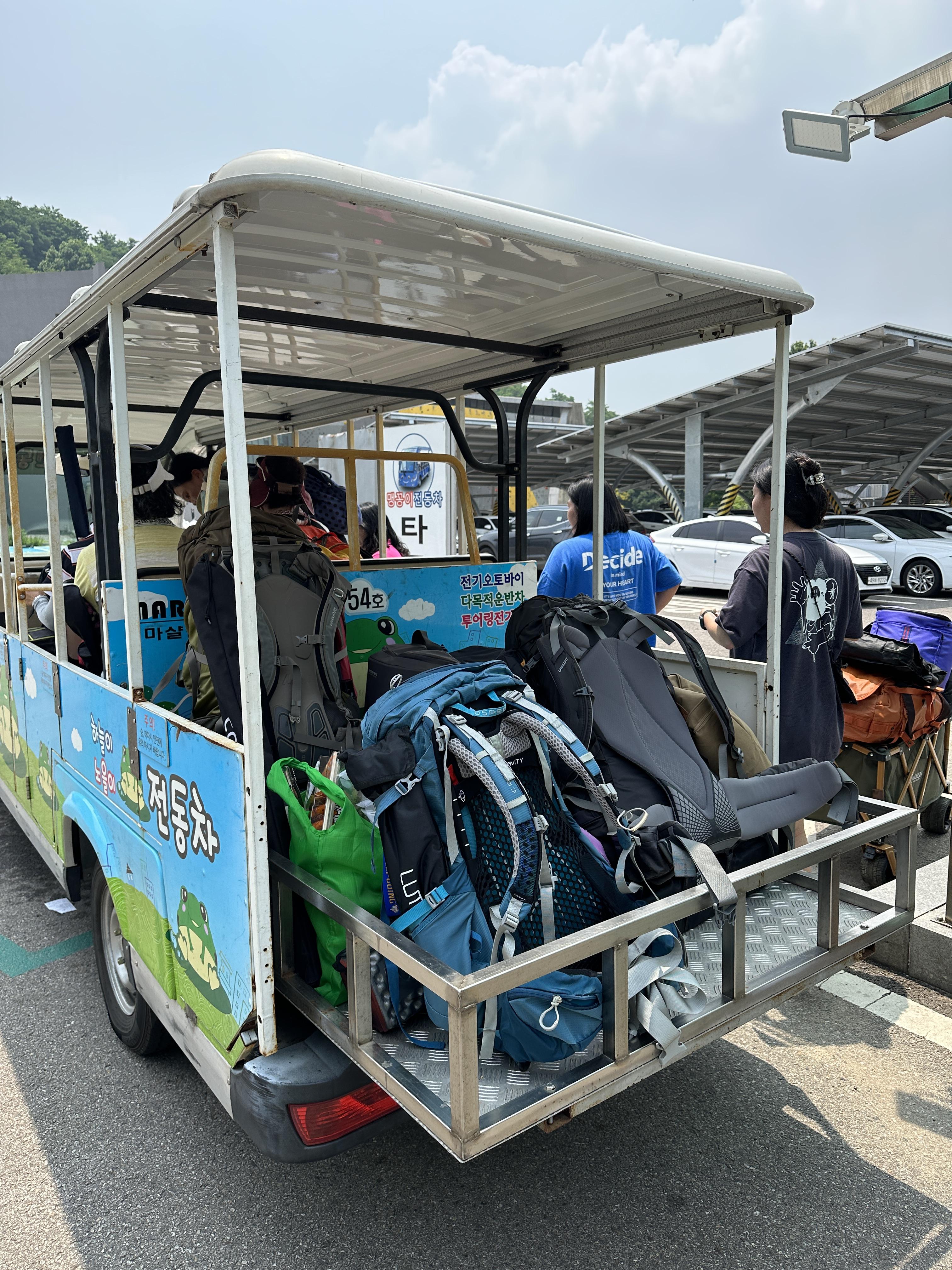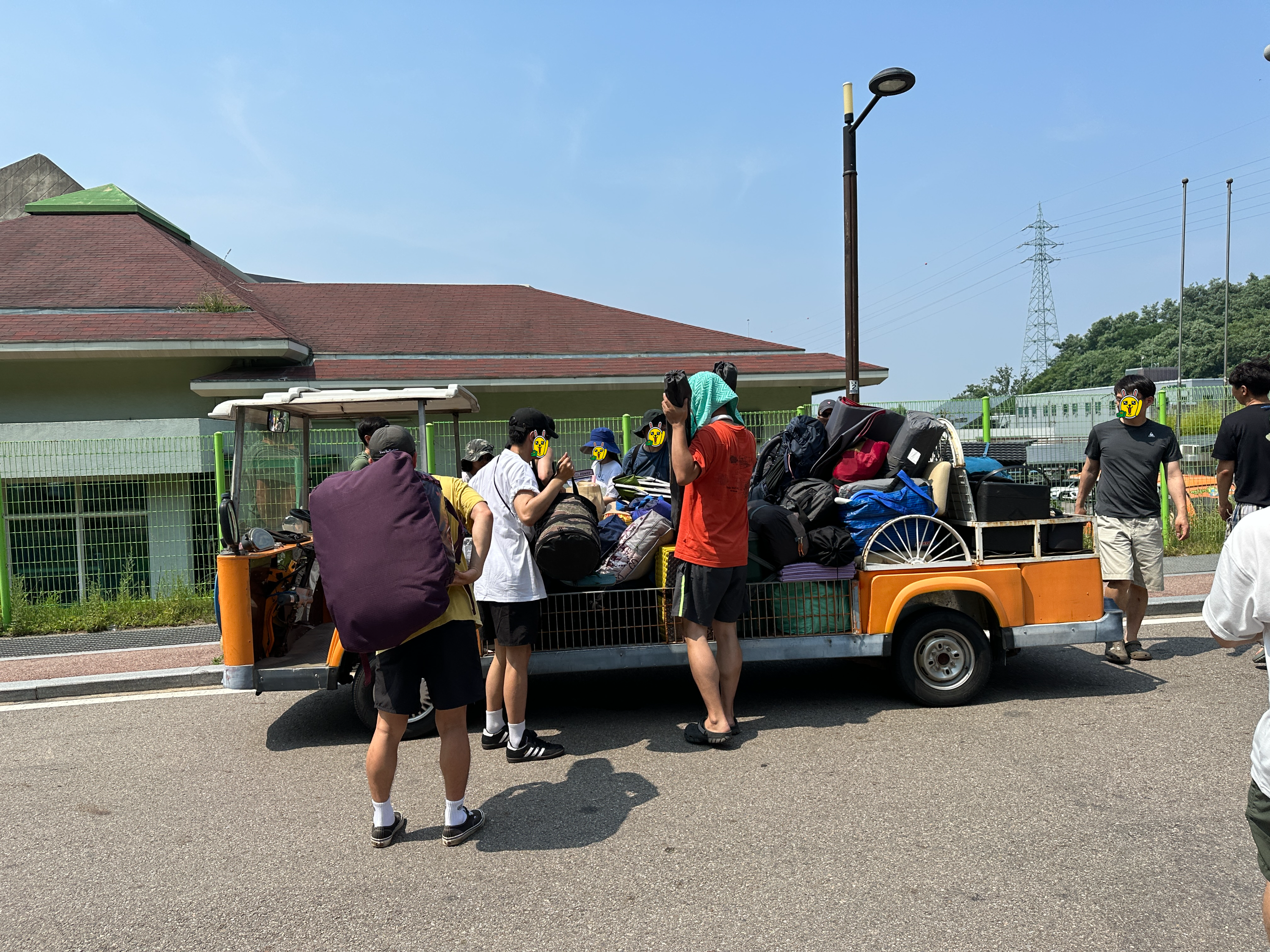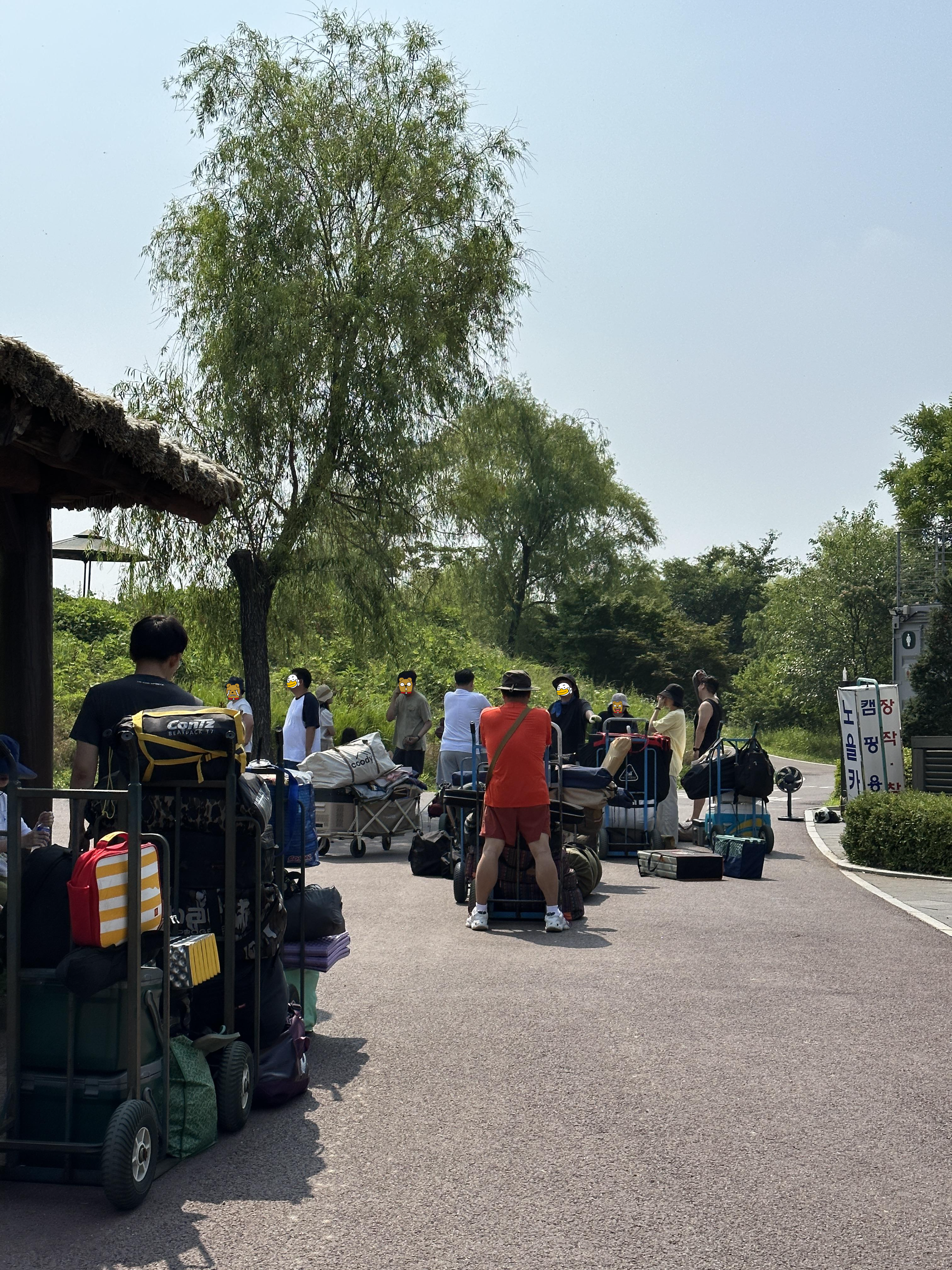 잠깐 언급했듯이, 서울 노을캠핑장은 맹꽁이 전동차로 이동 후 손수레로 사이트까지 이동합니다.