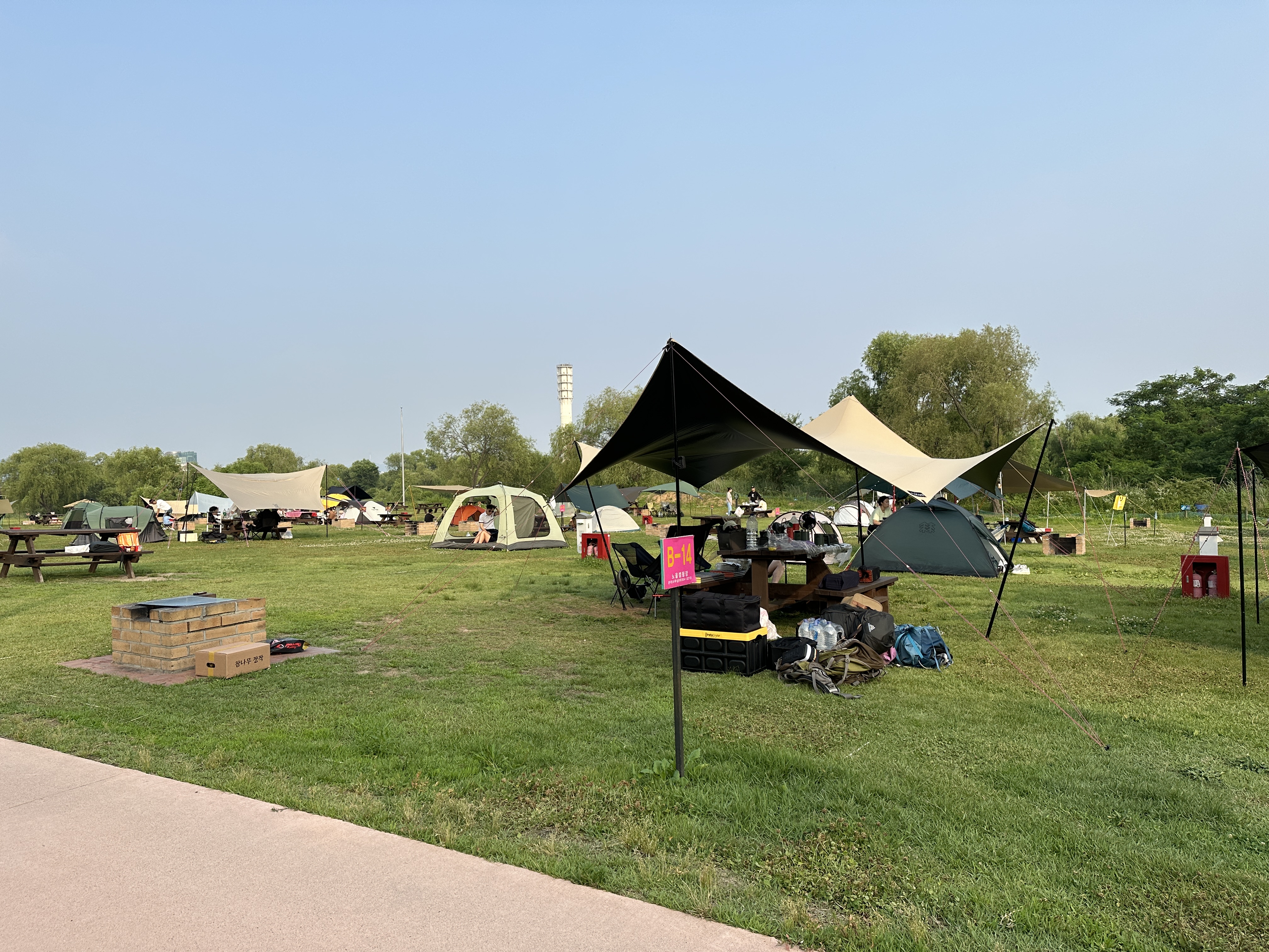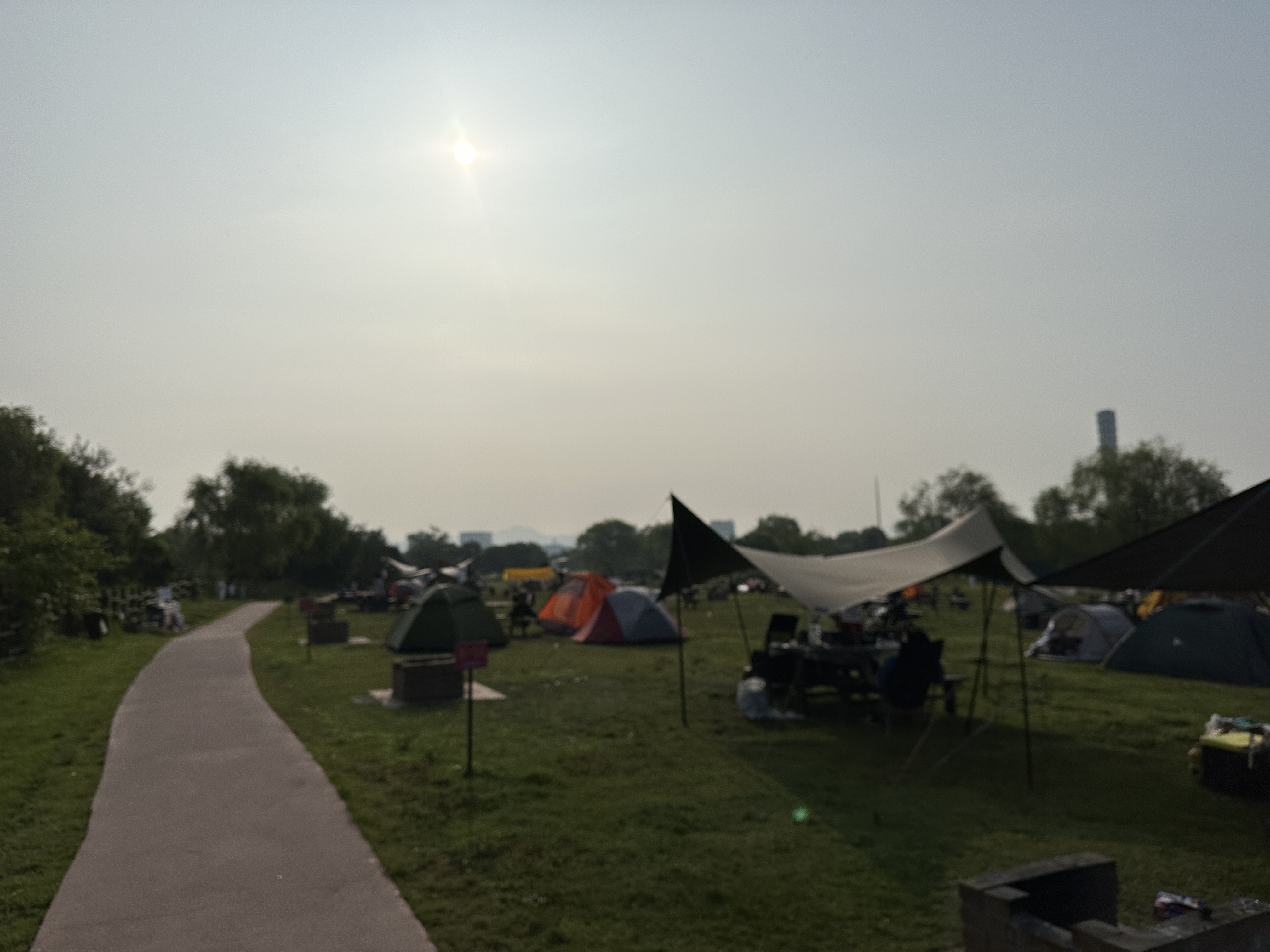 노을캠핑장은 서울에 있고, 접근성이 뛰어나다보니 저녁식사까지만 이용하시고 돌아가시는 분들이 꽤 많습니다. 그래서 관리인분께 말씀드리고 예약한 사이트 A-8이 아니라 바로 옆자리인 B-17에 텐트를 치고 취침했어요.
