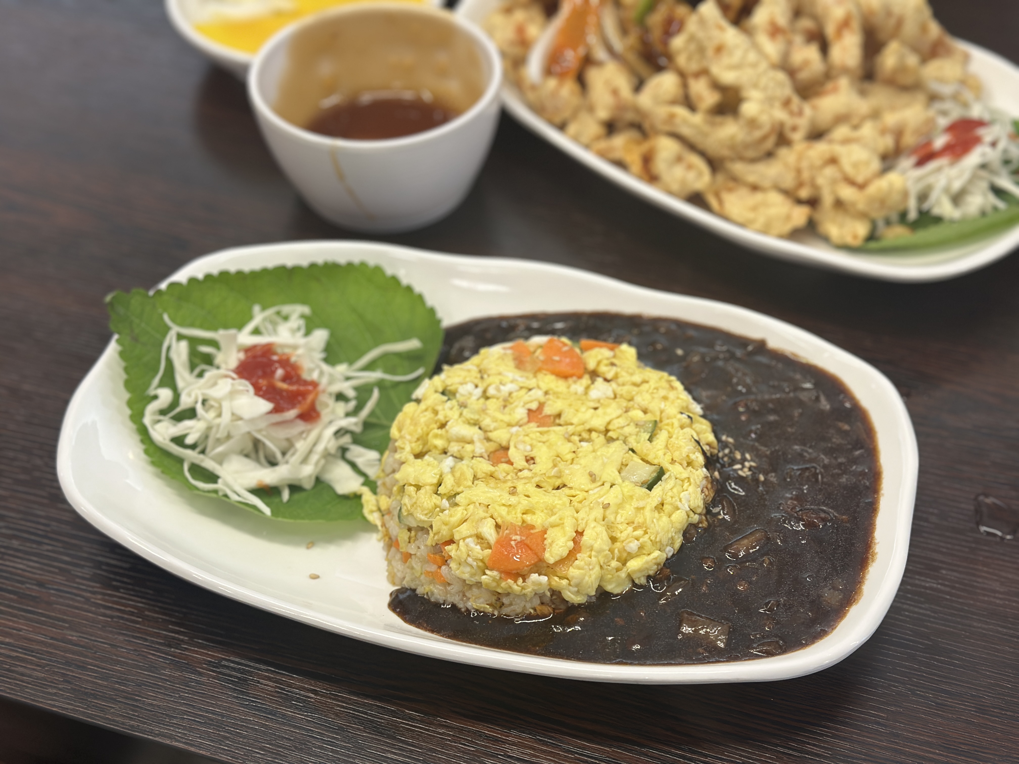군자동 송정각 볶음밥입니다. 밥알알마다 계란코팅 된 게 보이시나요? 맛도 맛이지만 이렇게 정성스럽게 볶아 나오는 볶음밥은 오랜만이였어요.ㅋㅋㅋ 깻잎에 사라다 올라간 것도 귀엽구요 ㅋㅋㅋ 만족스럽습니다.