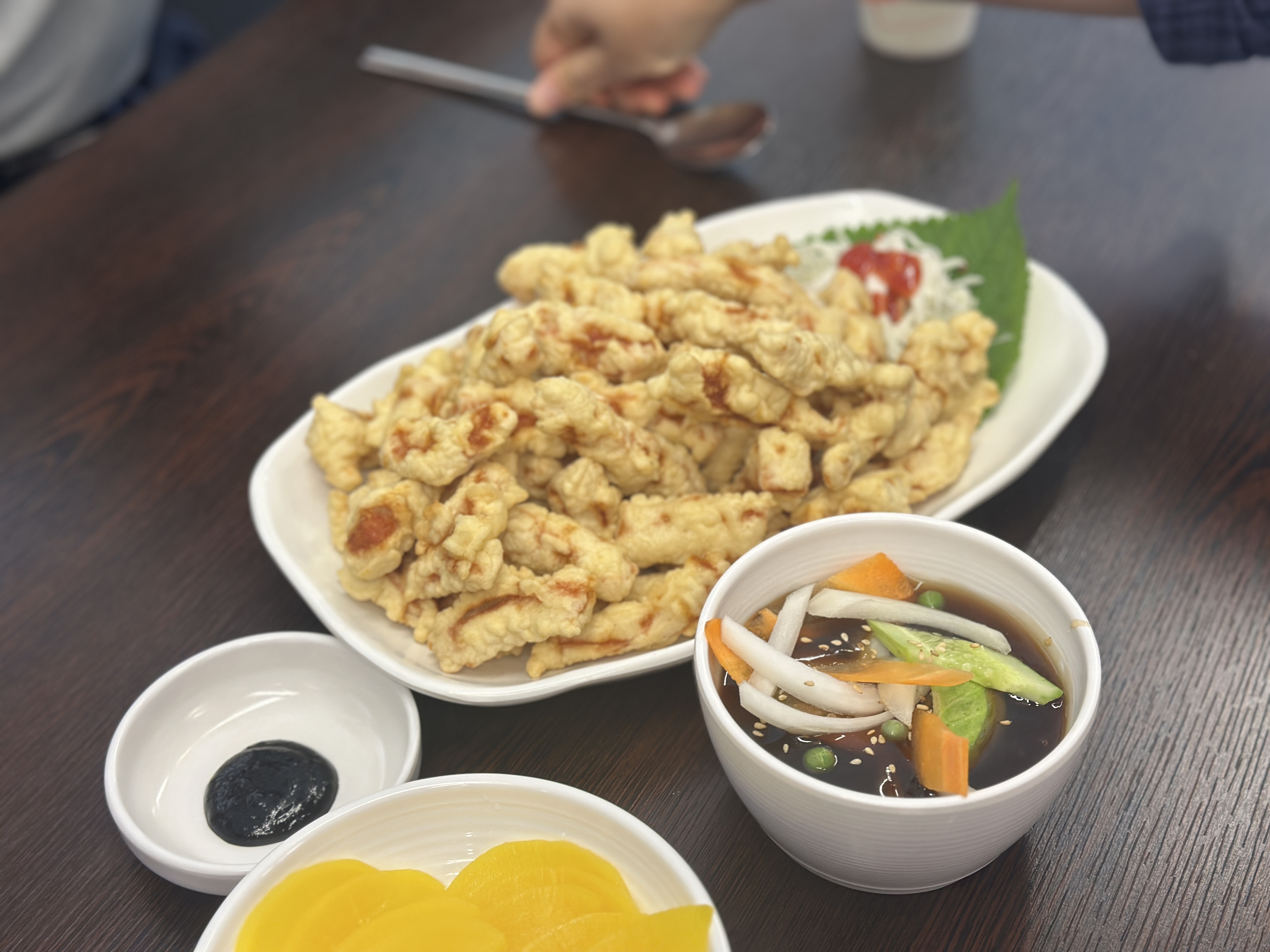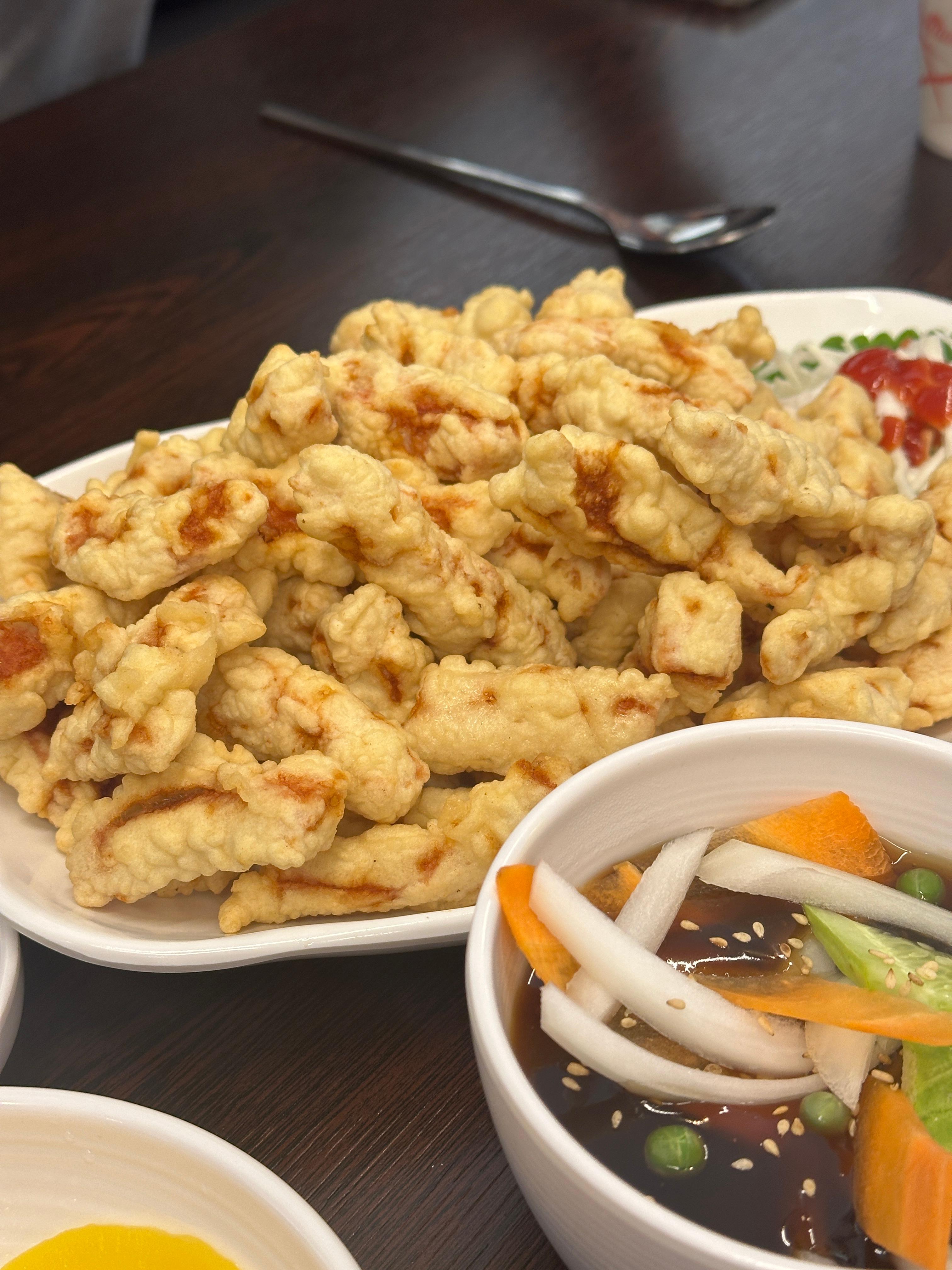 탕수육 중입니다. 바로 튀겨 나와서 그런지 바삭바삭한게 최고입니다. 소스도 새콤달콤해서 진짜 맛있게 먹을 수 있었습니다. 기대 이상. 강력추천합니다. ㅋㅋㅋ