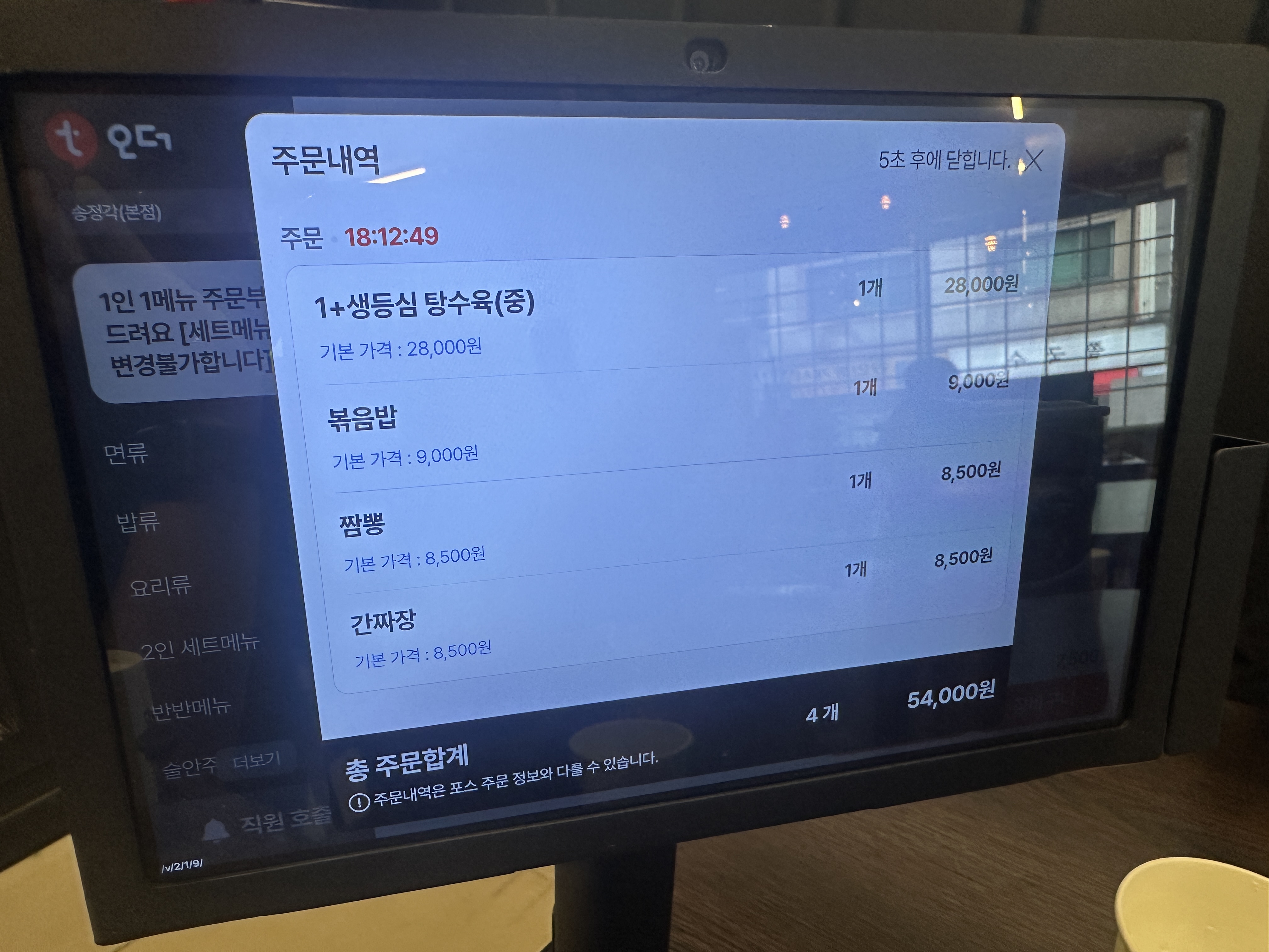 4. 군자동 송정각 주문 및 메뉴