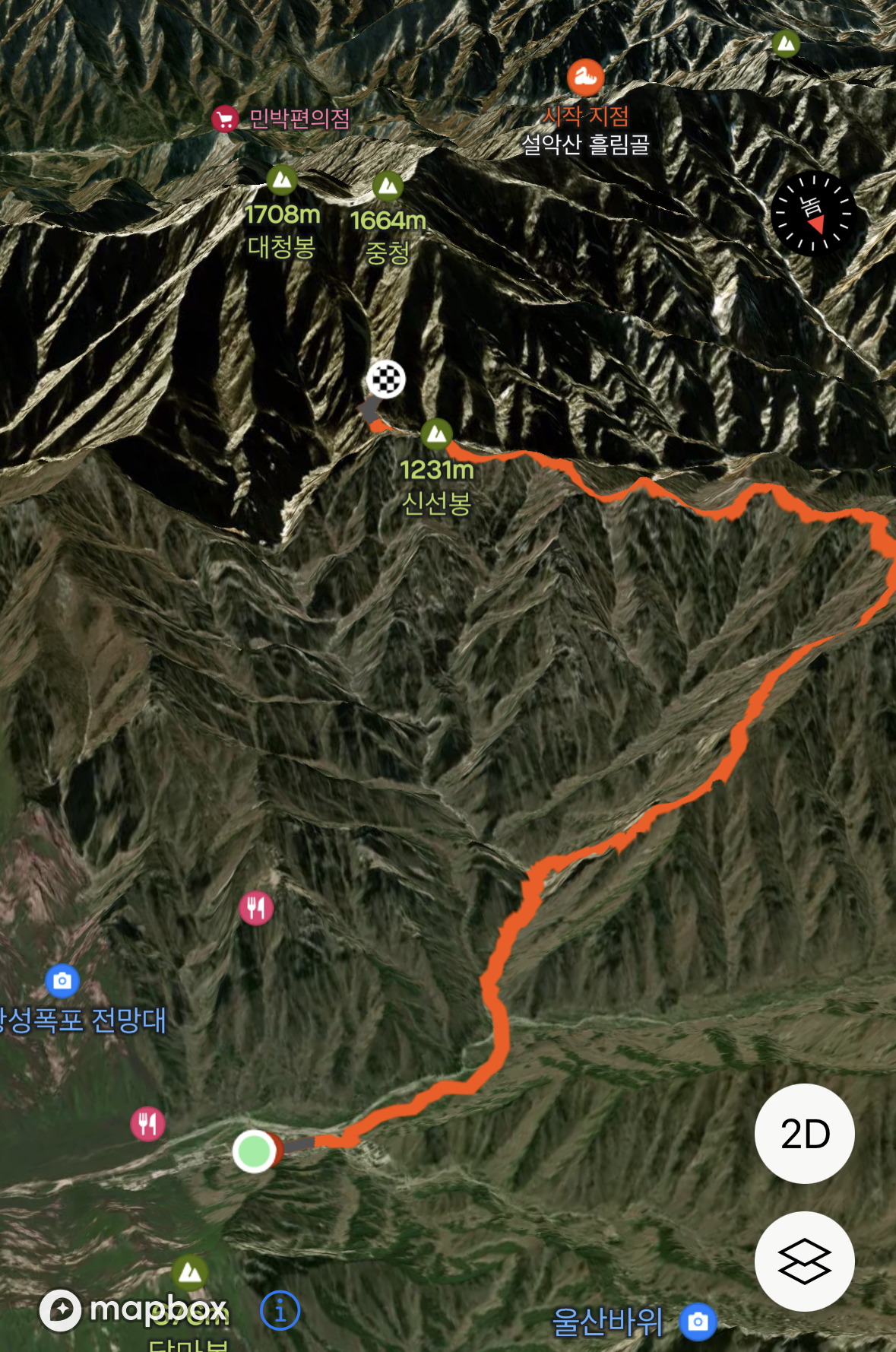 애플워치가 신선봉 부근에서 꺼지는 바람에 기록이 되지 않았지만, 중청 부근까지 이어집니다.