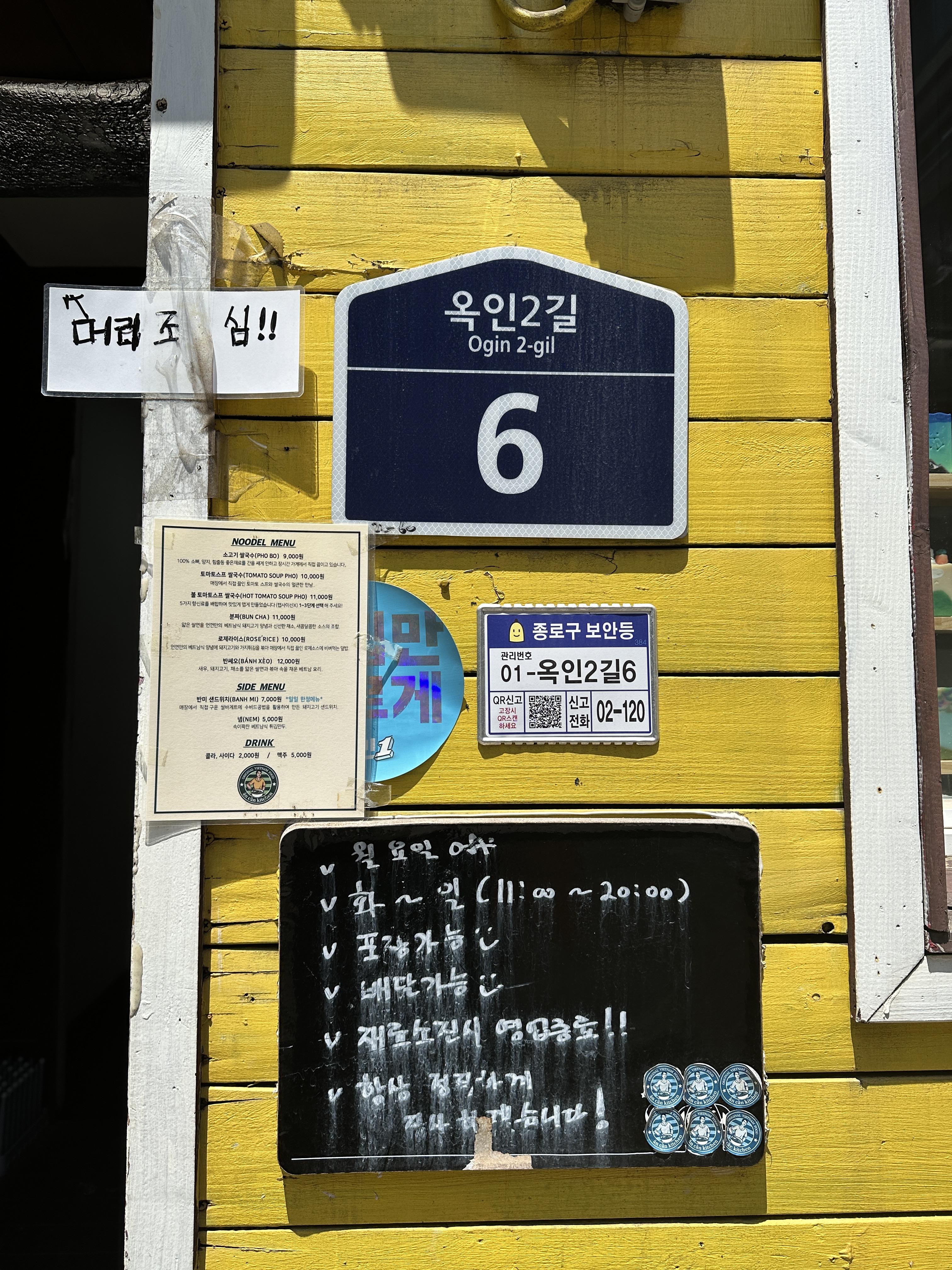네 살짝 골목으로 들어오면, 샛노란 페인트로 칠해진 건물이 하나 보이고, 위의 사진과 같은 간판들이 보입니다. 간판 디자인이 생각보다 마음에듭니다.
