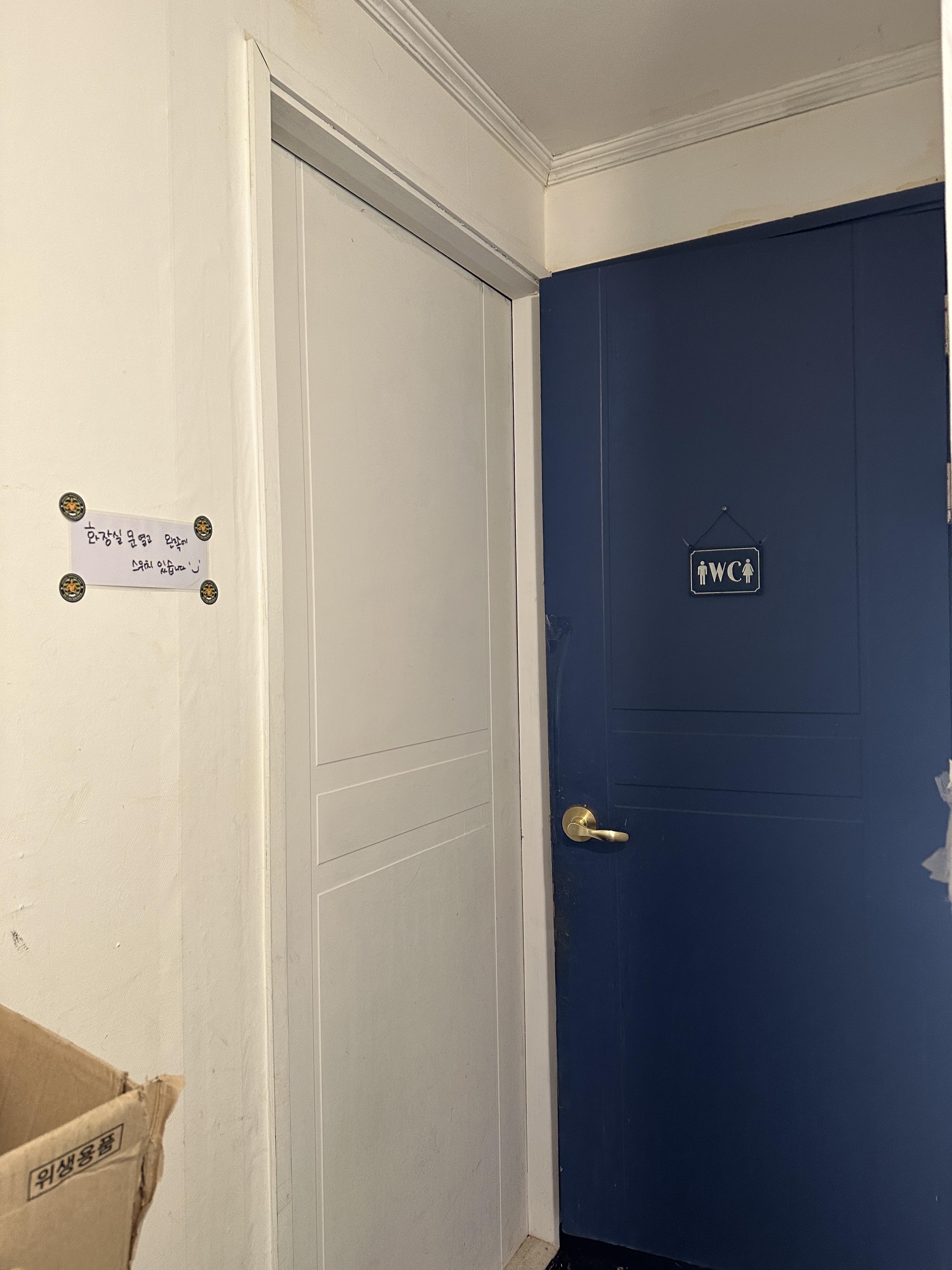 주방이 살짝 보이구요, 화장실도 한켠에 마련되어 있습니다.