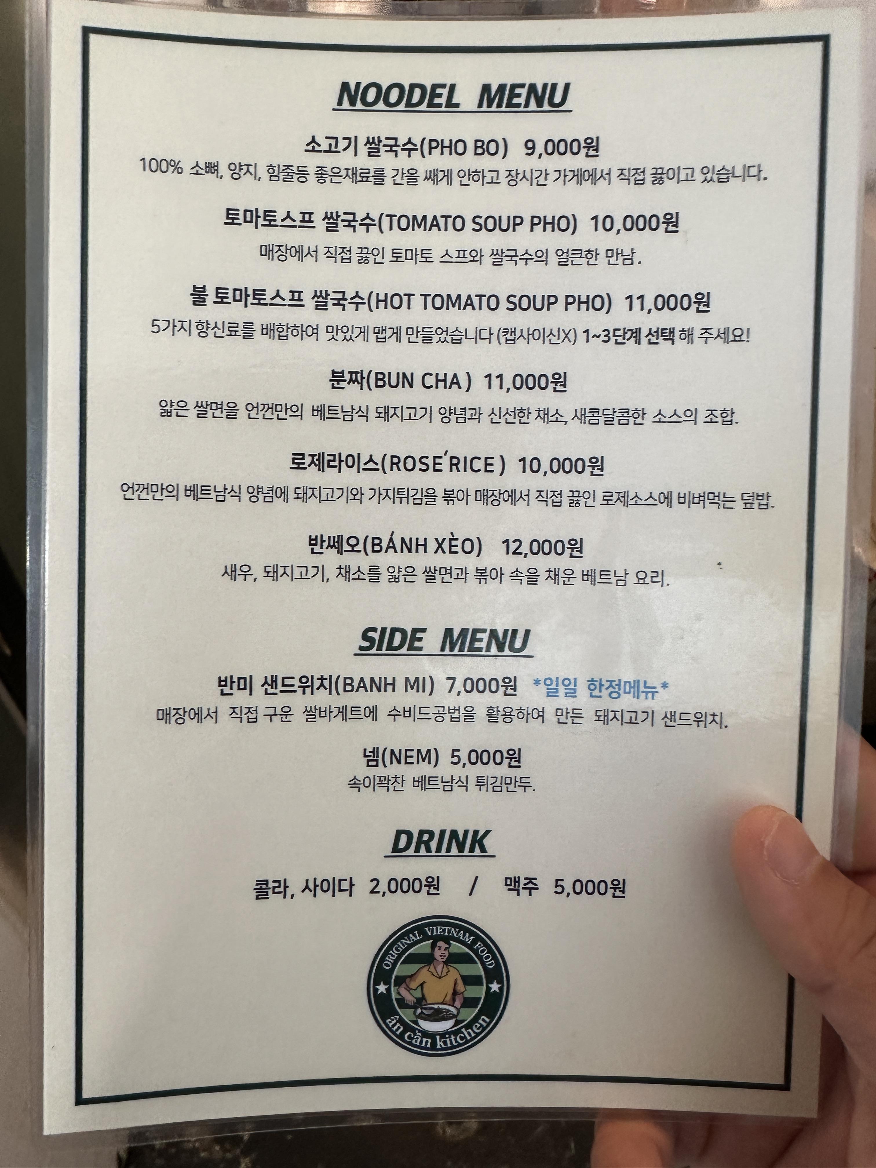 6. 서촌 베트남식당 언껀 메뉴 등장