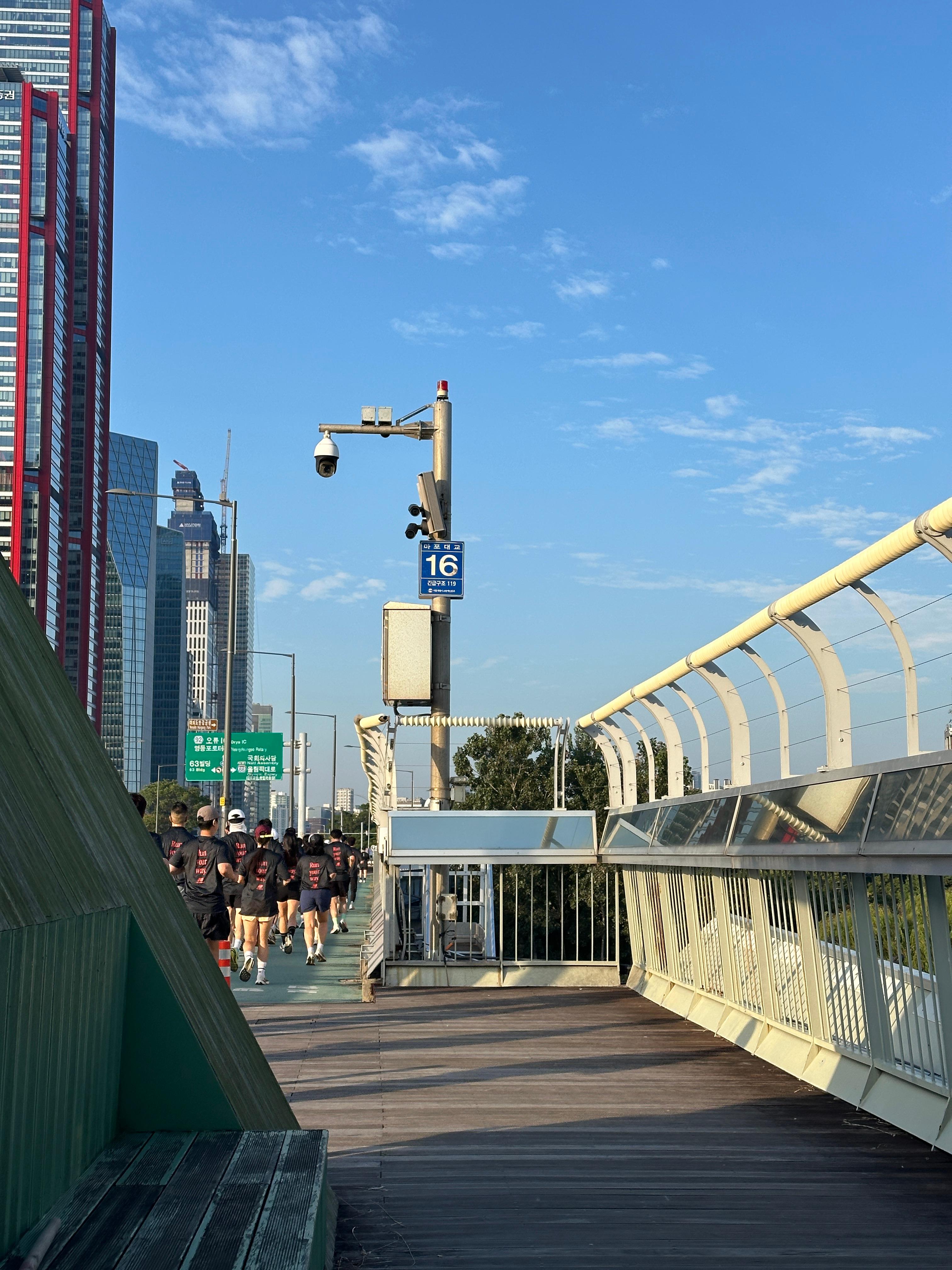 전여친님의 몸상태를 감안해서 7분페이스로 미리 신청했기 때문에 편하게 뒤에서 달려봅니다. 5분, 6분 페이스 분들은 공원을 달리신 것 같은데 7분페이스는 서강대교 넘어갔다가 돌아오는 코스로 4킬로미터정도 된 것 같습니다.