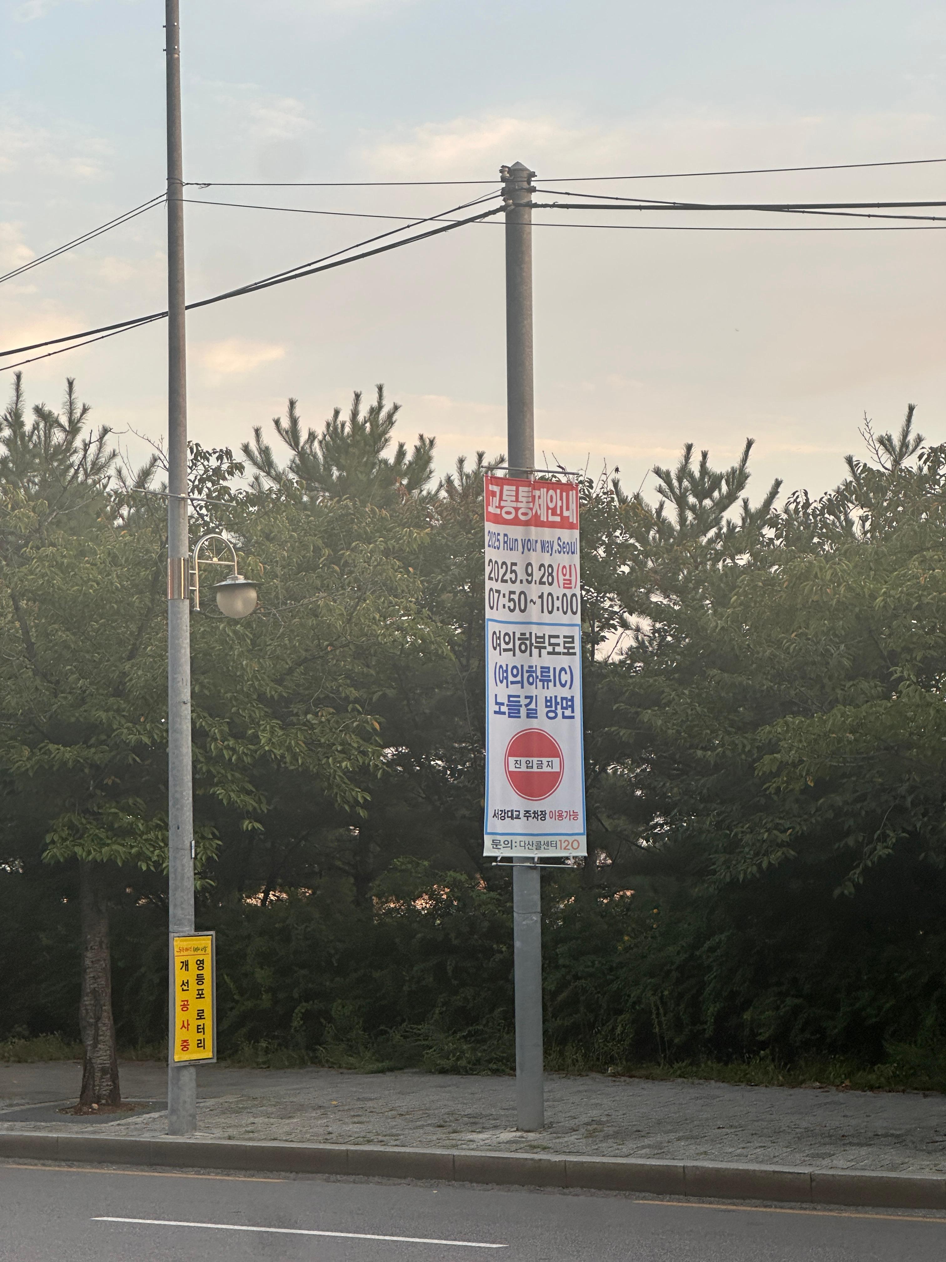 주차장에서 행사장소로 이동하는 길에 보이는 교통통제안내 현수막을 보니 대회가 실감이 납니다. 그나저나 여의도는 이번주가 정신없긴 하겠네요.ㅋㅋㅋ 불꽃축제에 이번 뉴발러닝까지...ㅋㅋㅋ 현수막을 보아하니 10시까지 통제네요.