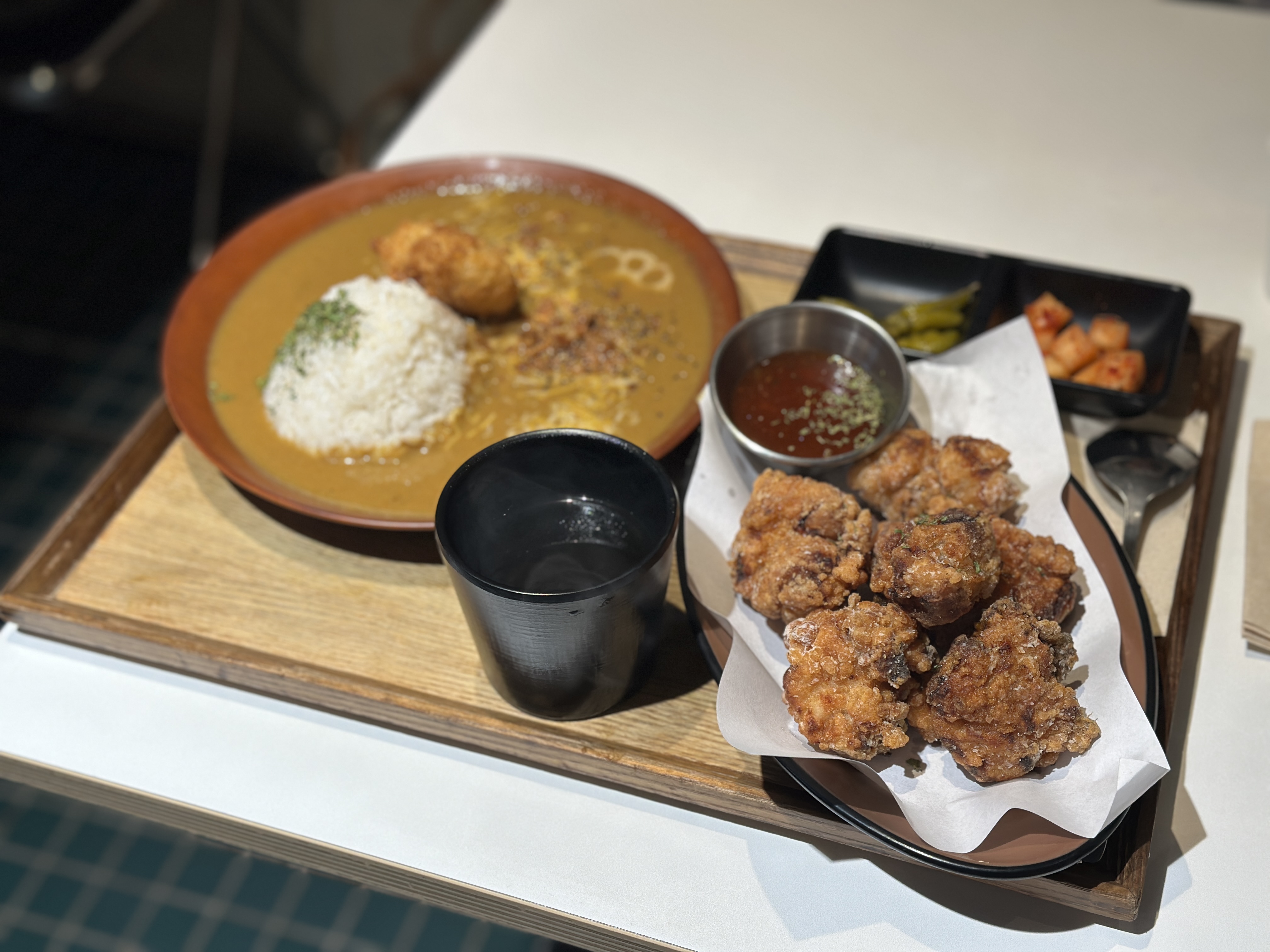 메뉴는 딱히 선택이 어려워서 나름 가장 잘 하는 것들로 조합되어 있을꺼라고 예상되는 베스트 세트메뉴를 골라봅니다. 카레와 커틀렛 그리고 가라아게와 음료 2잔으로 구성되어 있습니다.