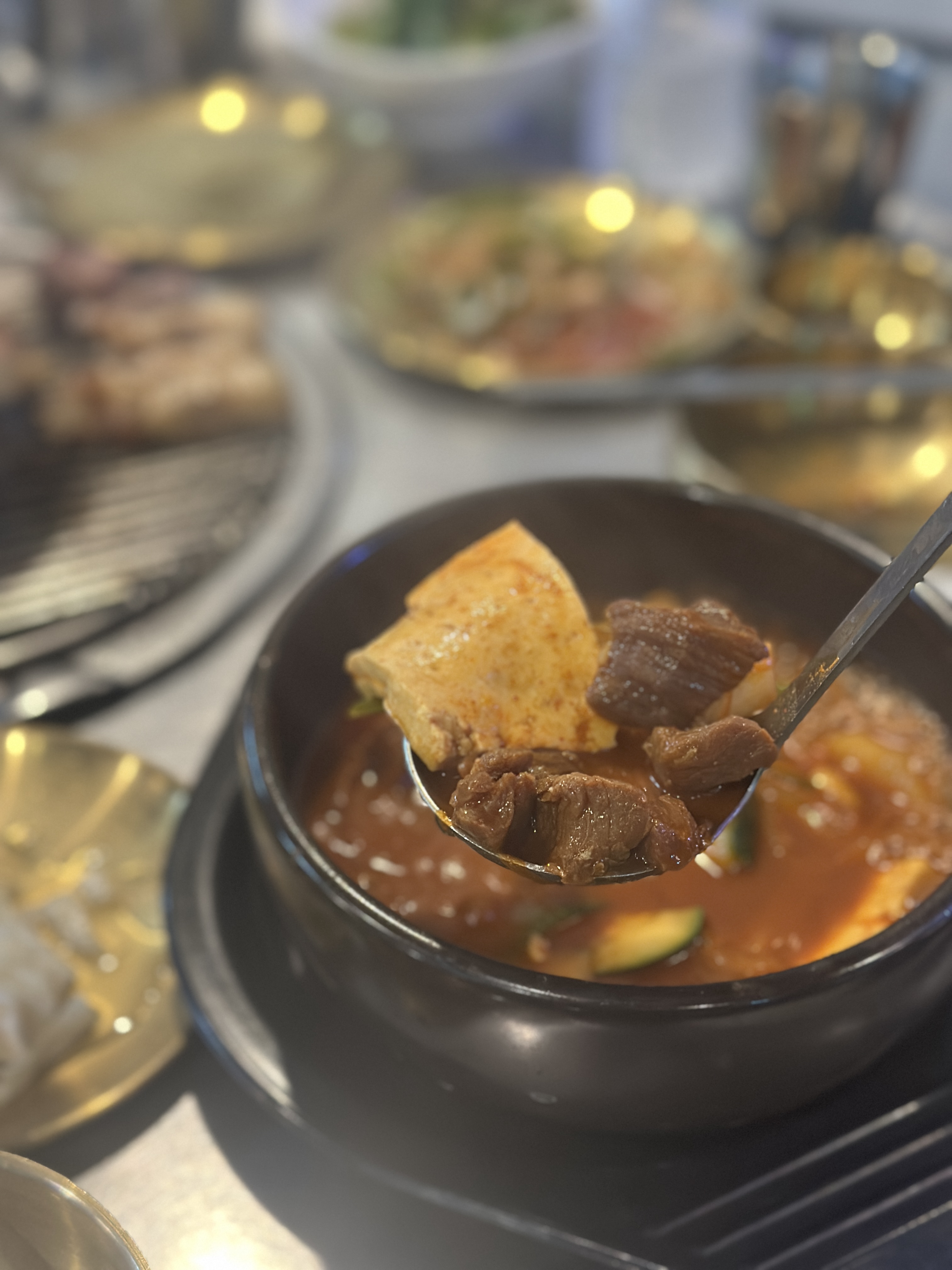 개인적인 최애 찌개인 고추장찌개입니다. 매콤한데 약간 식감이 있는 국물이 너무 매력적인 맛입니다. 한 두국자 퍼서 먹고 나서 밥을 넣어서 말아버리면 진짜 너무 맛있습니다. 이 메뉴만 따로 식사로 먹고 싶은 정도입니다.