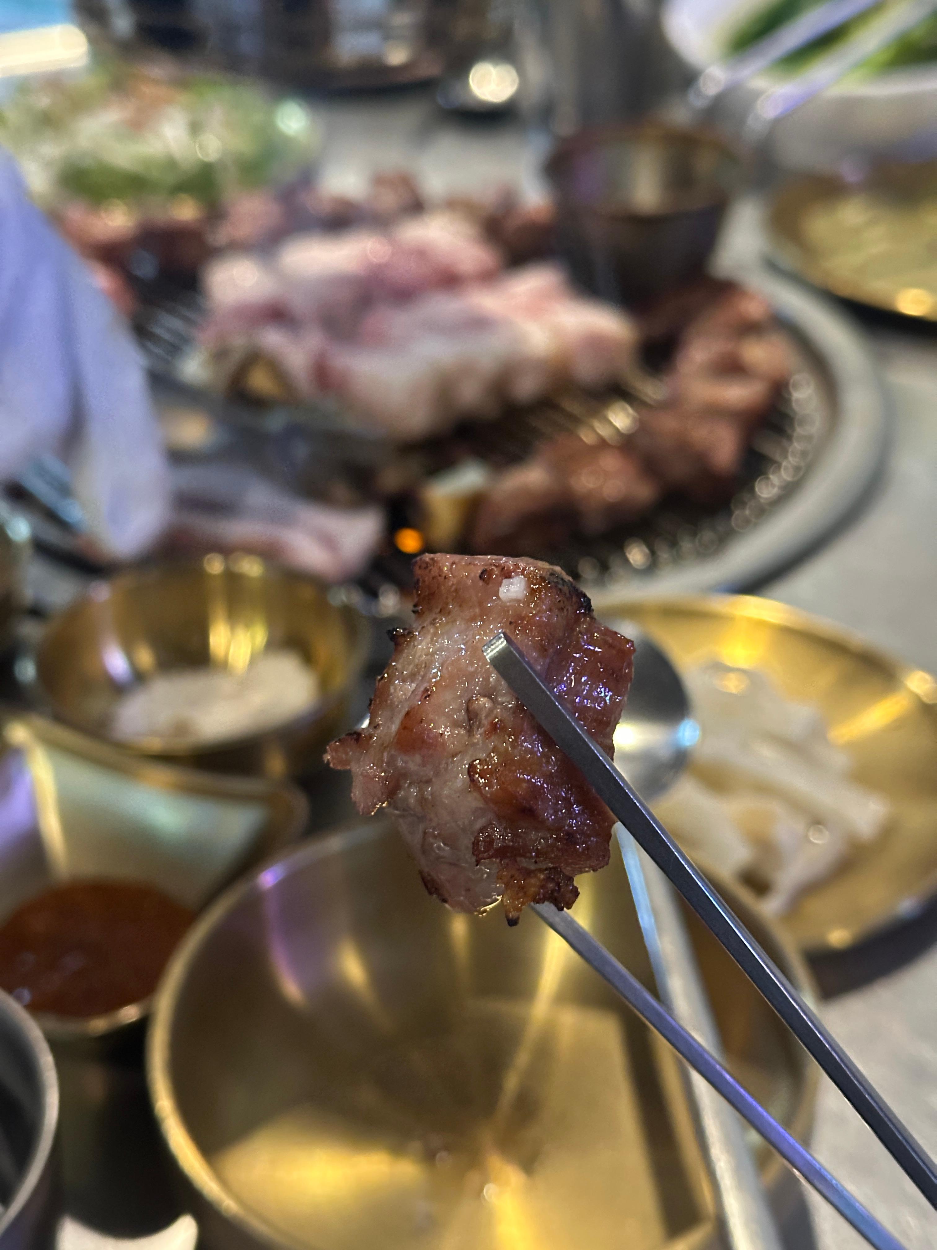 목살을 추가했는데, 이렇게 목살비계도 조금 얹어 주셨어요. 아무리 생각해도 제주탐하리의 고기맛은 매력적입니다.