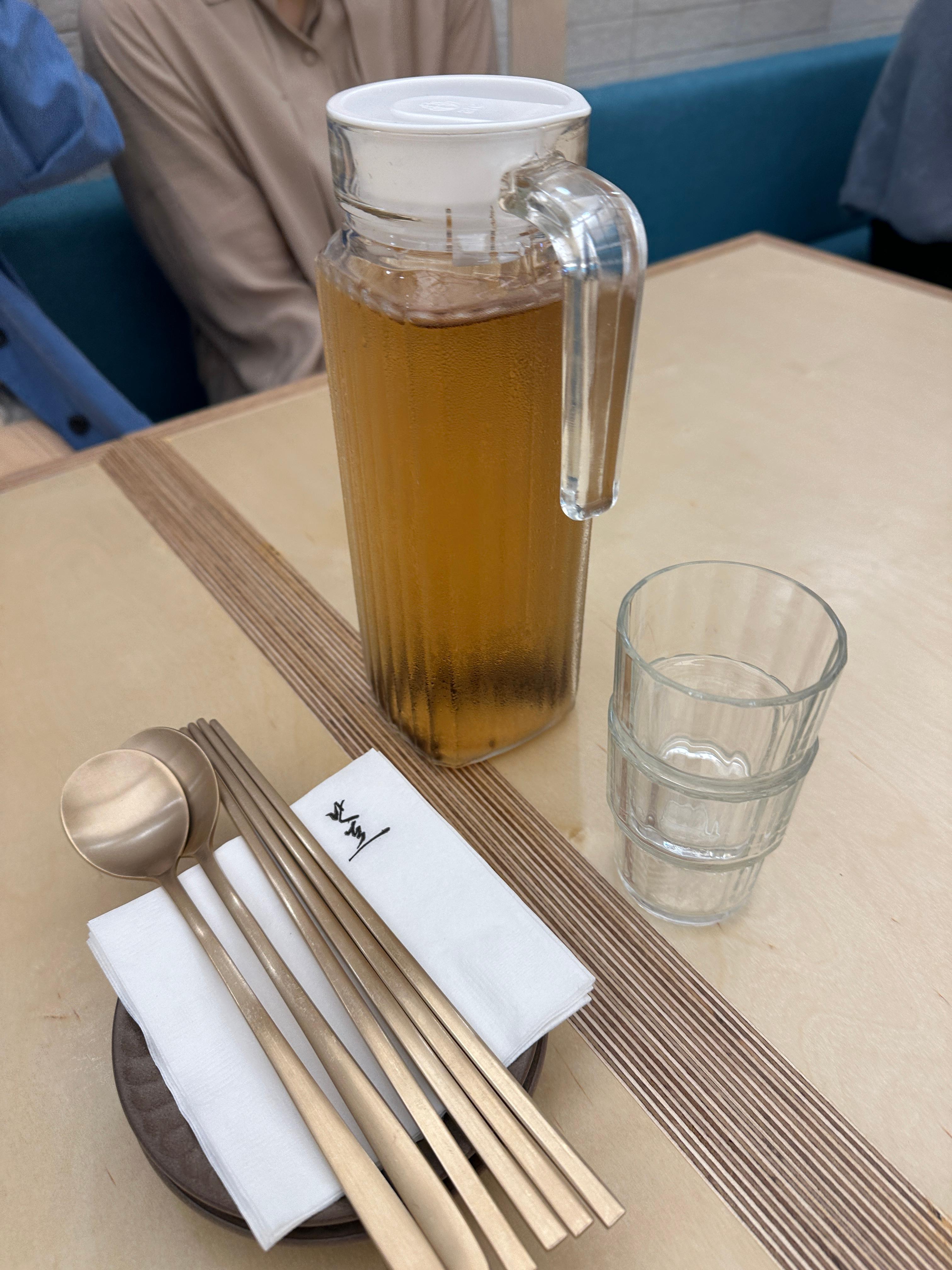 테이블에 기본으로 나오는 물은 고소하고 시원했습니다. 굿굿