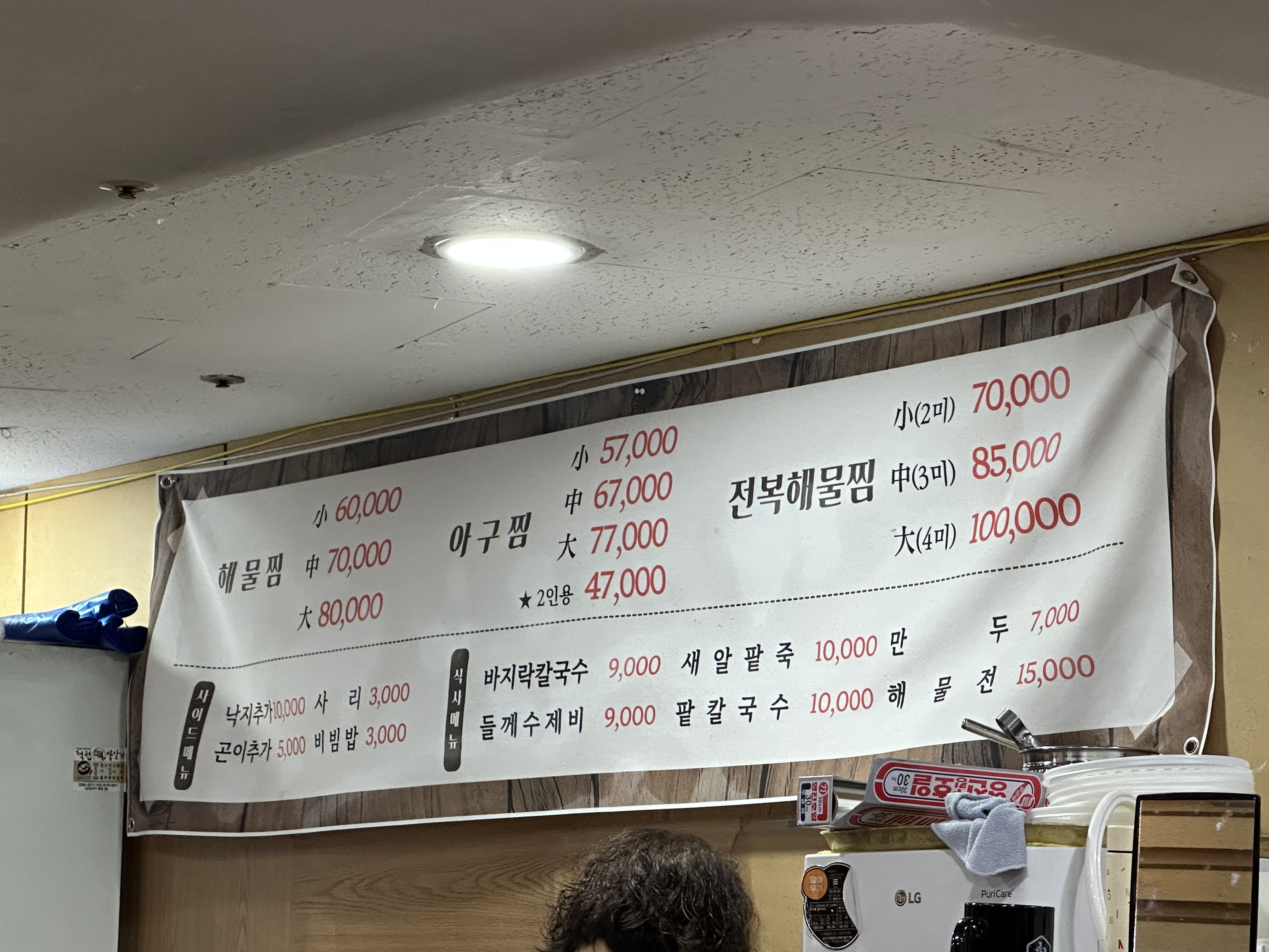 3. 옥수해물찜칼국수 메뉴판 및 실내