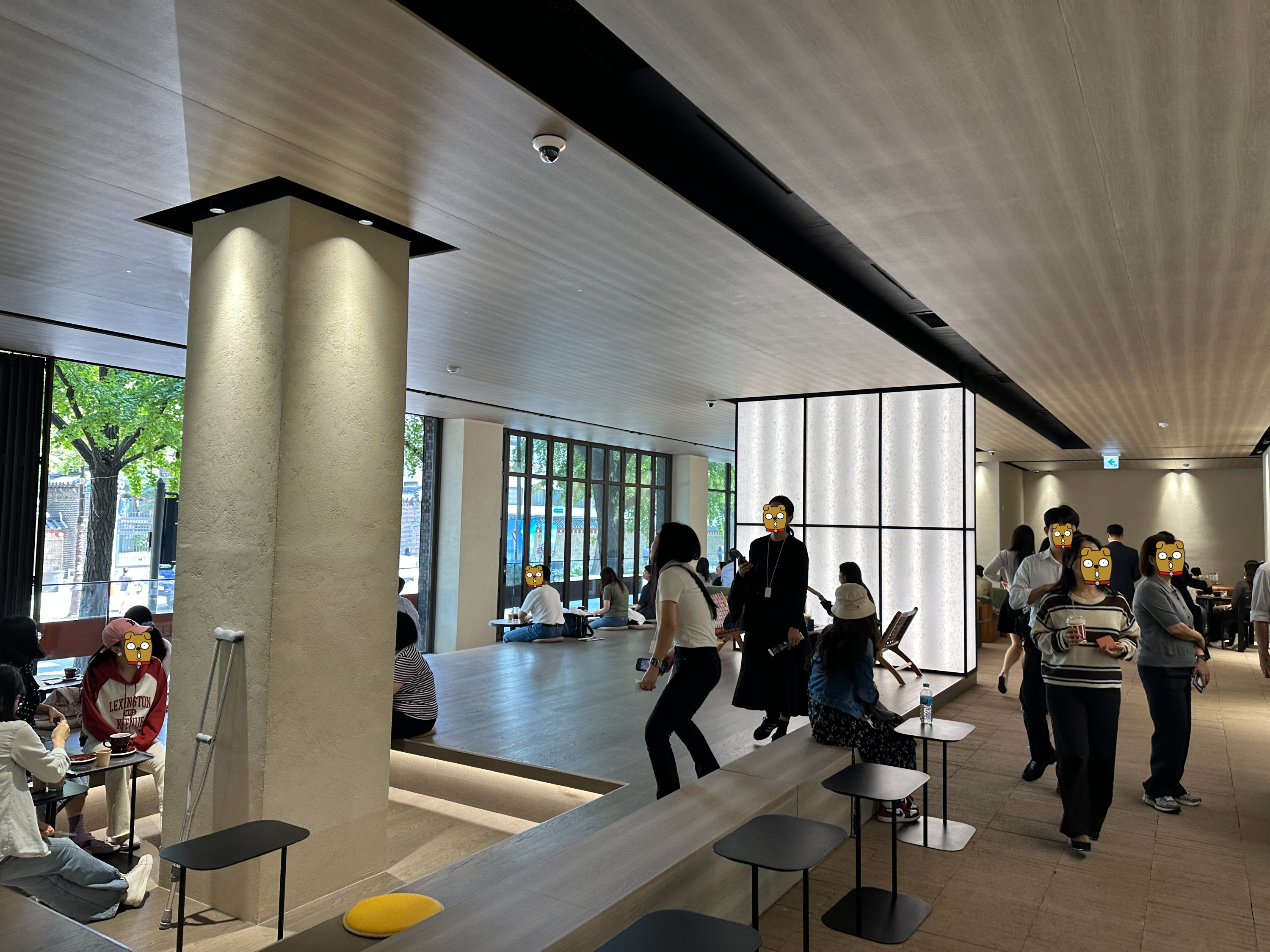 테일러커피(Taylor coffee) 서촌경복궁점의 실내는 이렇게 대부분의 좌석이 바깥 통창을 바라보는 구조입니다. 지금 사진에는 아직 은행이 안떨어지고 있지만, 지난주만 해도 은행나무 잎이 떨어져서 너무 아름다운 풍경이었어요. 근데 뭐 사실 자리가 넉넉하거나 쾌적한 건 아닙니다.