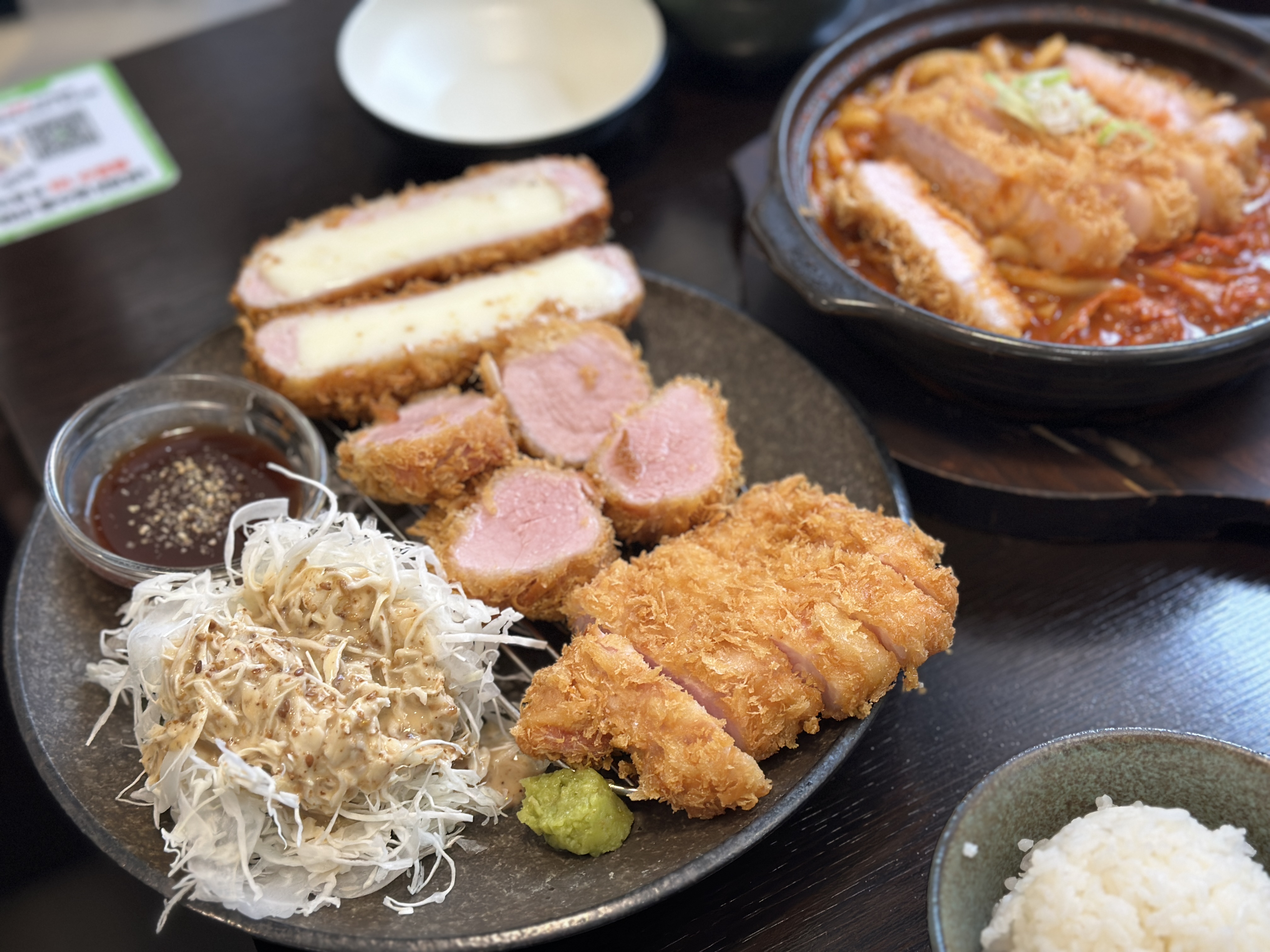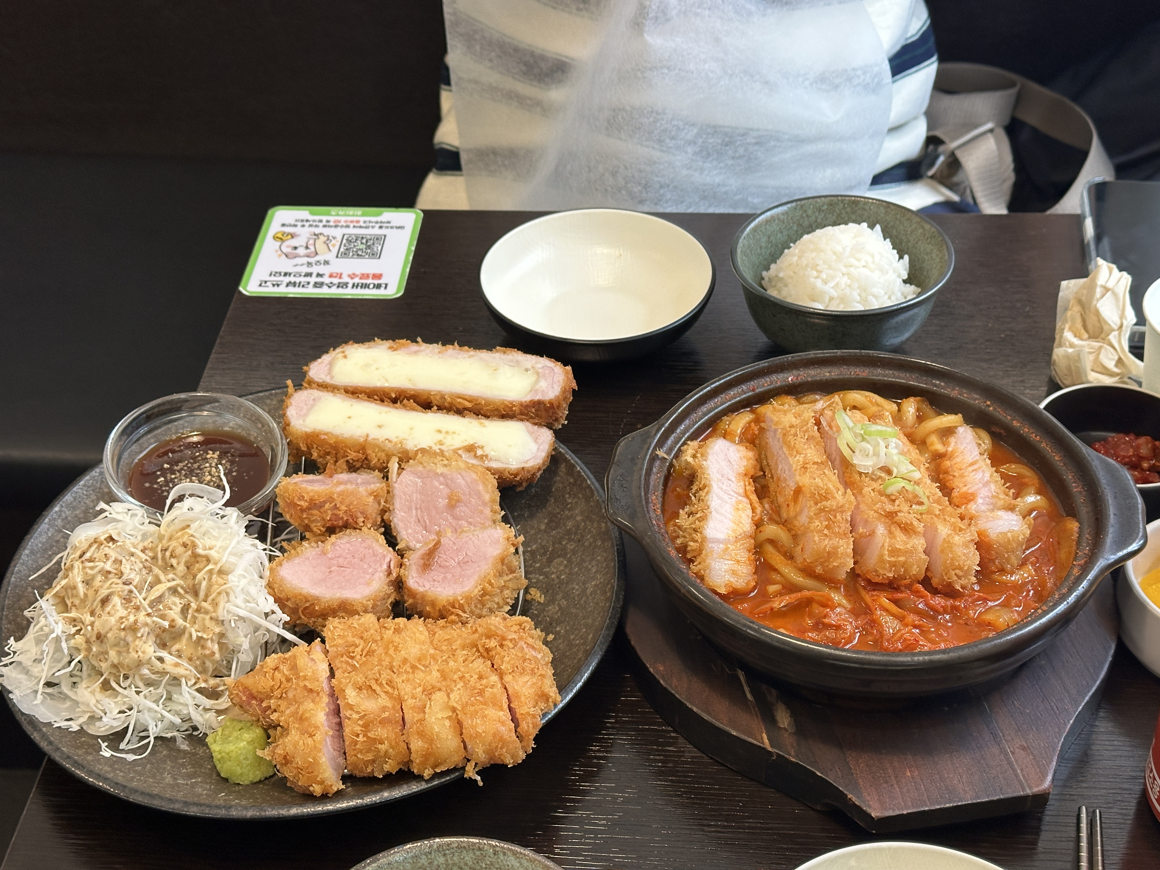 희희카츠의 세트메뉴입니다. 김치나베와 모듬카츠. 깔끔한 구성이죠. 예쁘게 나와서 더 군침이 돌기도 해요.