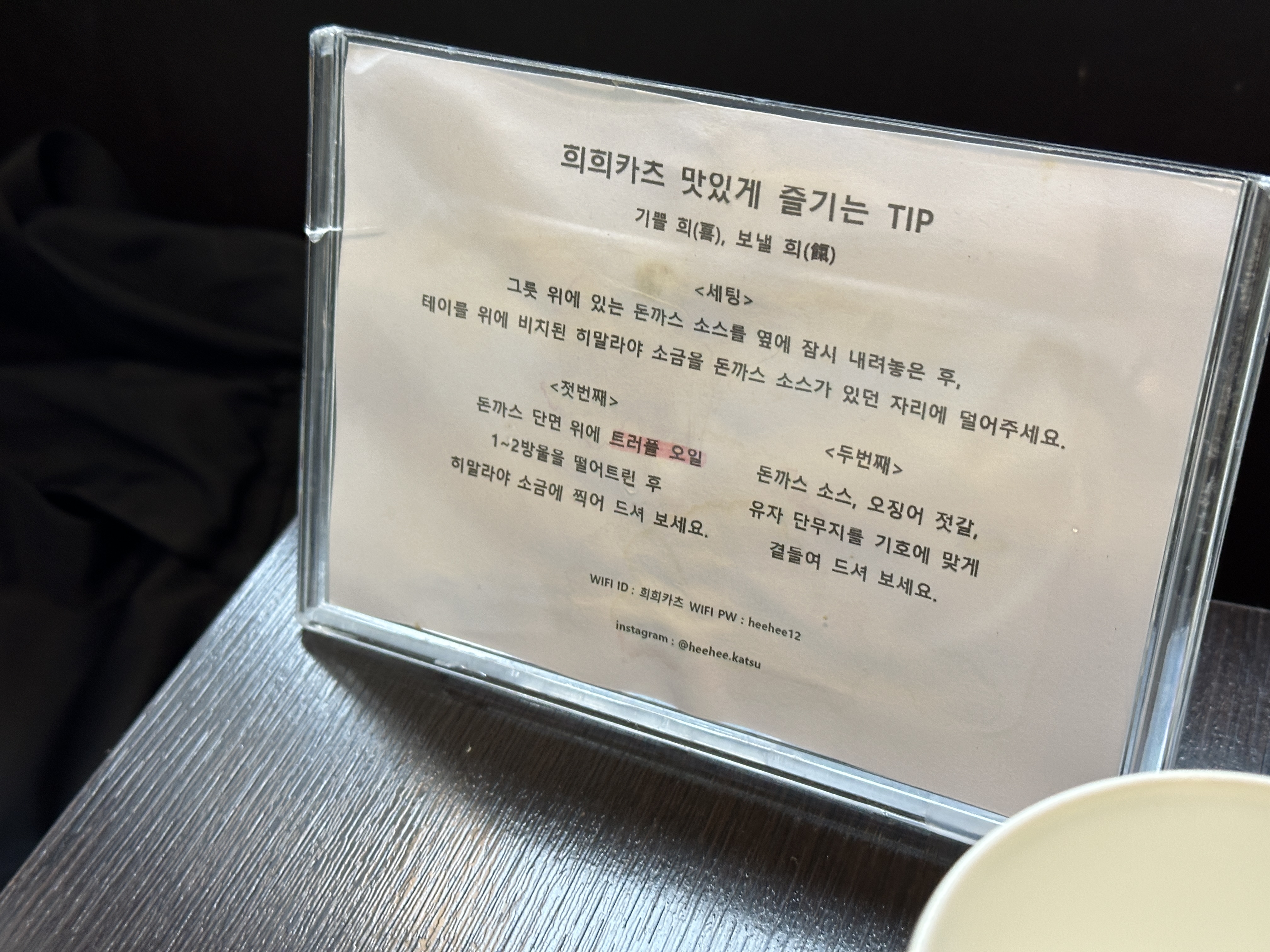 일단 아시다시피 제가 1차 방문 후 재방문을 이렇게 빠르게 했다는 것 자체가 놀라운 일이긴 합니다. ㅋㅋㅋ 맛도 맛이지만, 기분 좋은 분위기 속에서 조용히 즐길 수 있는 한 끼 정갈한 식사는 매력이 넘치니까요.ㅋㅋ 희희카츠의 2인세트는 무조건 드셔보시길 바랍니다. 강력추천해요.
