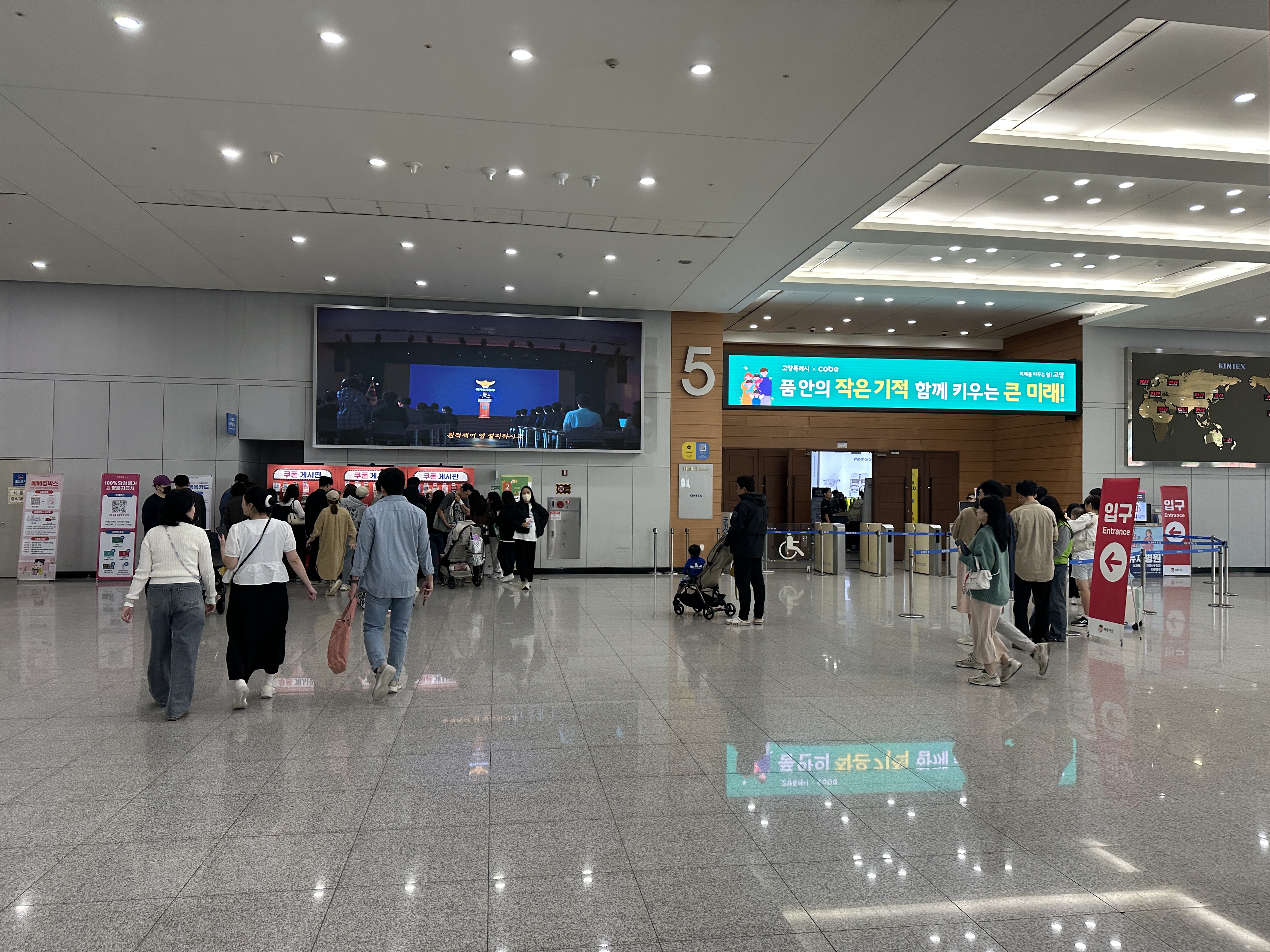 코베 베이비페어 유아교육전은 입장 전에 입구에 이렇게 쿠폰존이 있어서 챙겨가실 수 있습니다. 미리 예약하고 받은 입장QR을 이용해서 들어가 봅니다.