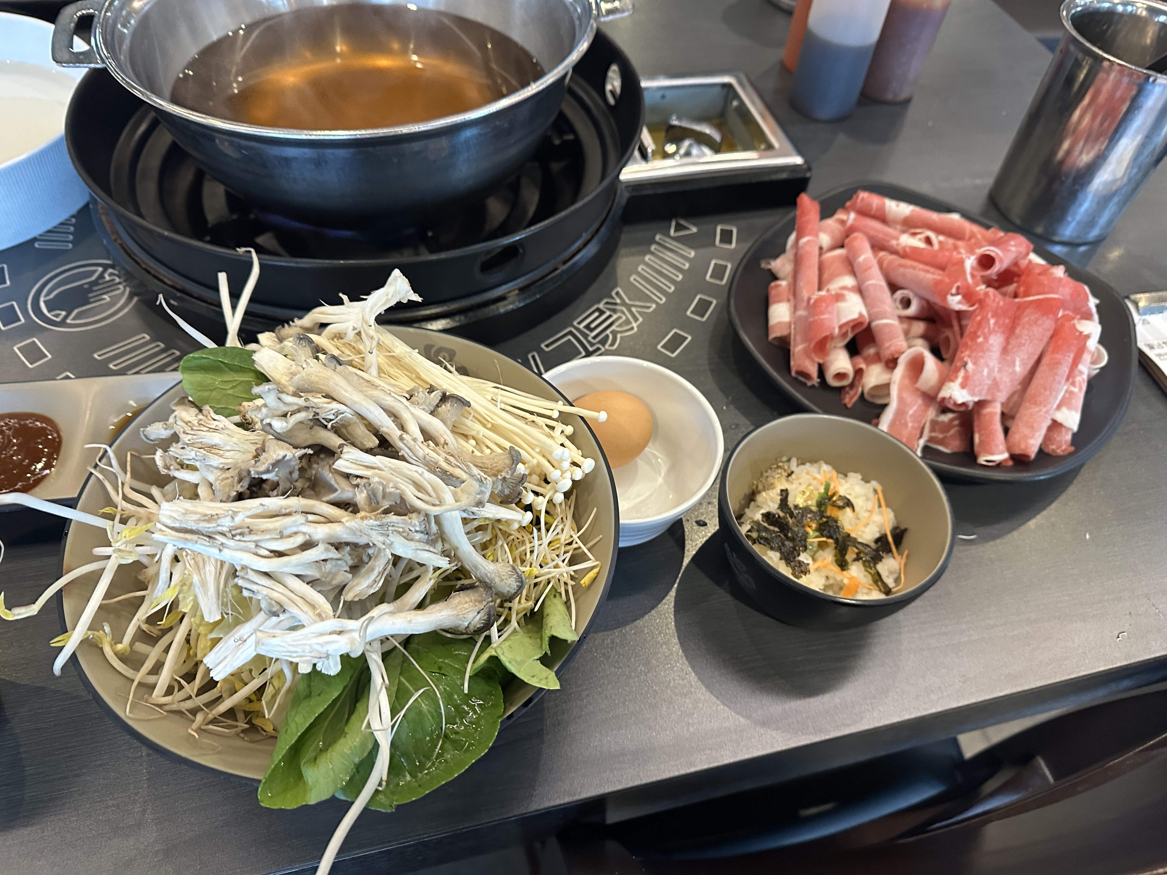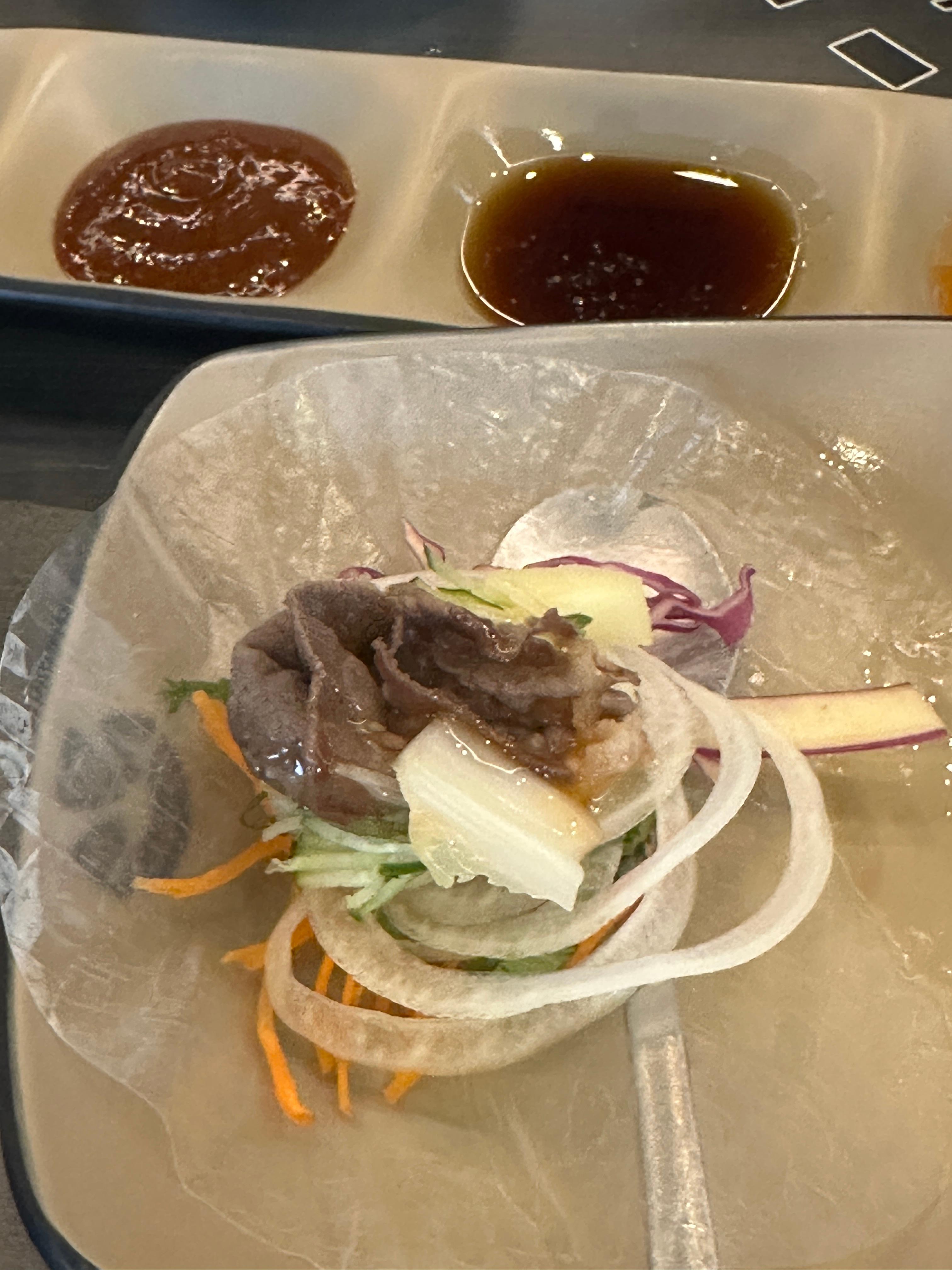 육수는 자극적이지 않고 적당한 기본 육수로 선택했습니다. 소담촌 파주운정점의 좋았던 점은 월남쌈 접시입니다. ㅋㅋ 딱 사이즈도 적당하고 야채채우기도 좋게 각 야채 이름이 플레이트에 써있거든요.ㅋㅋㅋ 만족만족입니다.