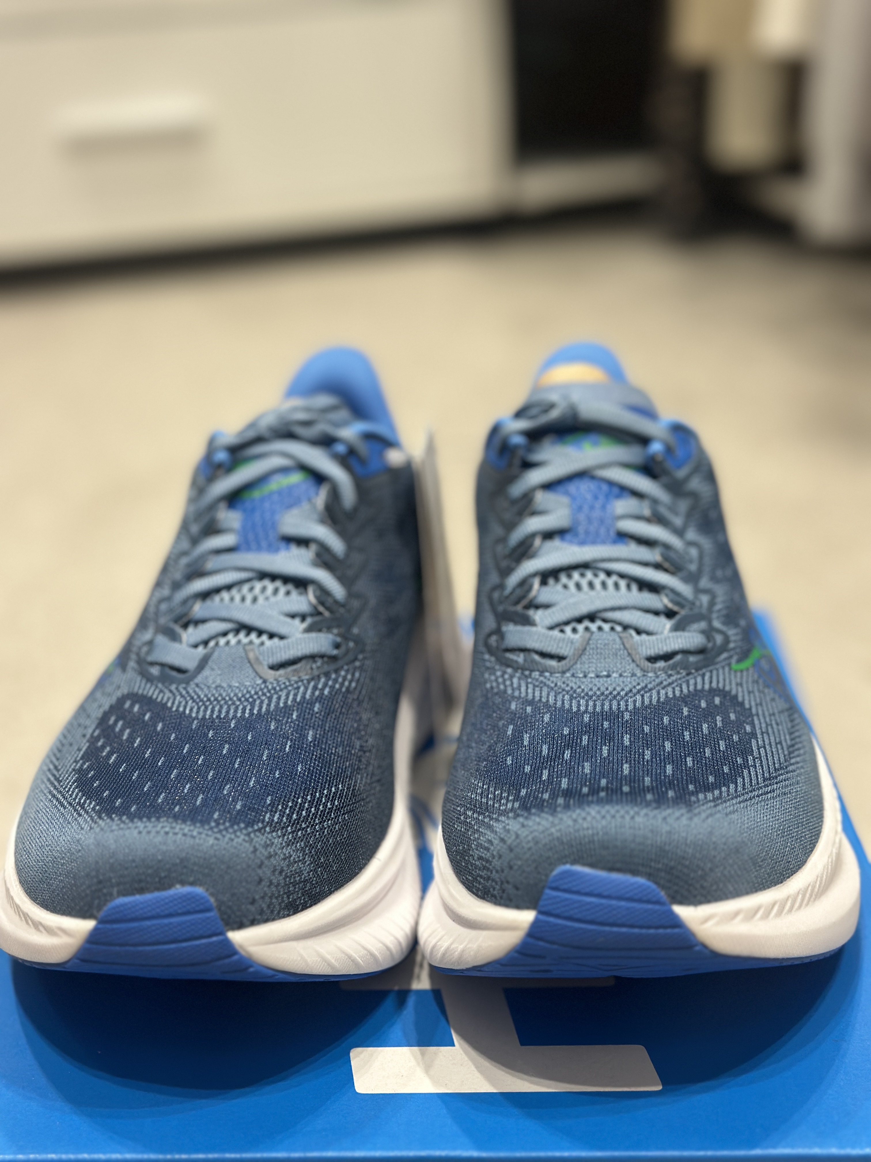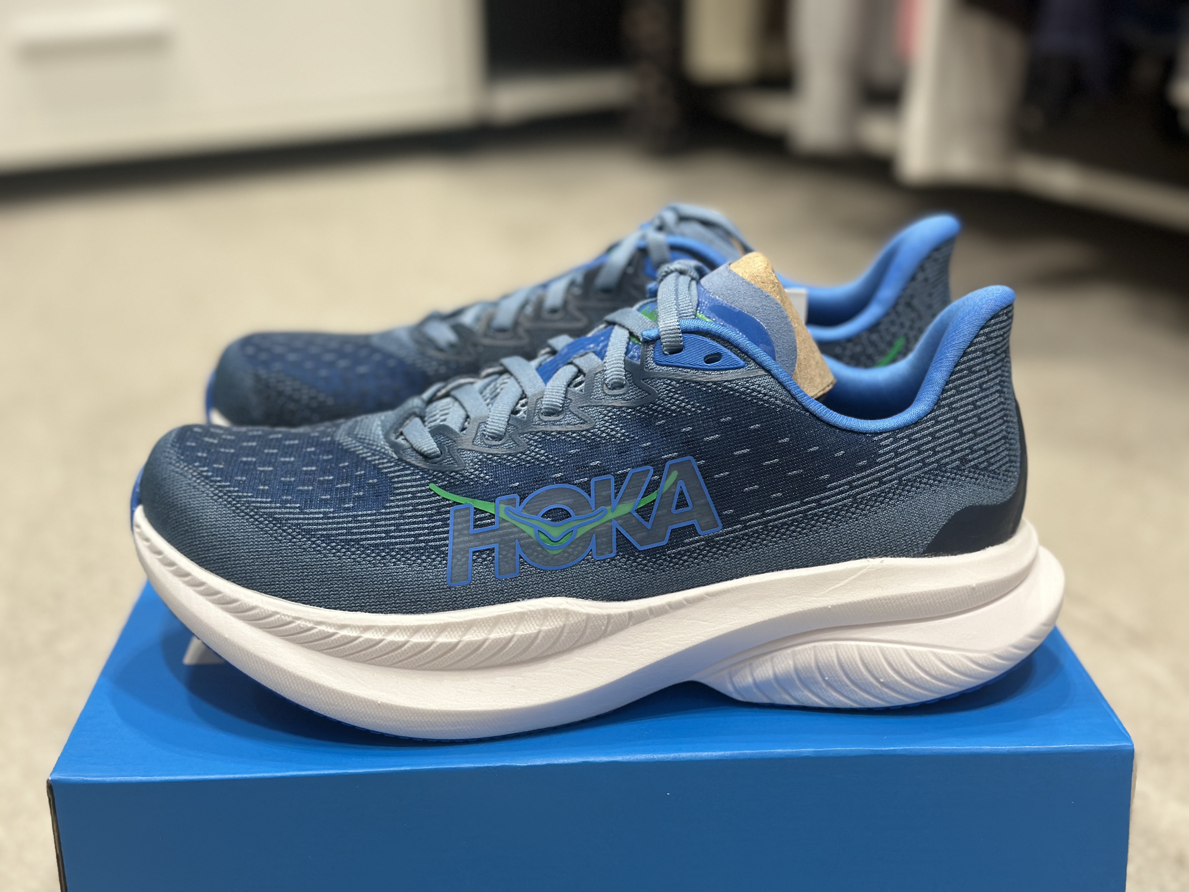 호카 남성 마하 6 와이드 (1147833-DHN)의 박스 및 신발 외관입니다. 호카 신발은 처음 신어봐서 그런지 두근두근 합니다. ㅋㅋㅋ 일단 딱 꺼내서 보니 신발이 참 깔끔하게 잘 나왔다. 라는 첫 느낌입니다.