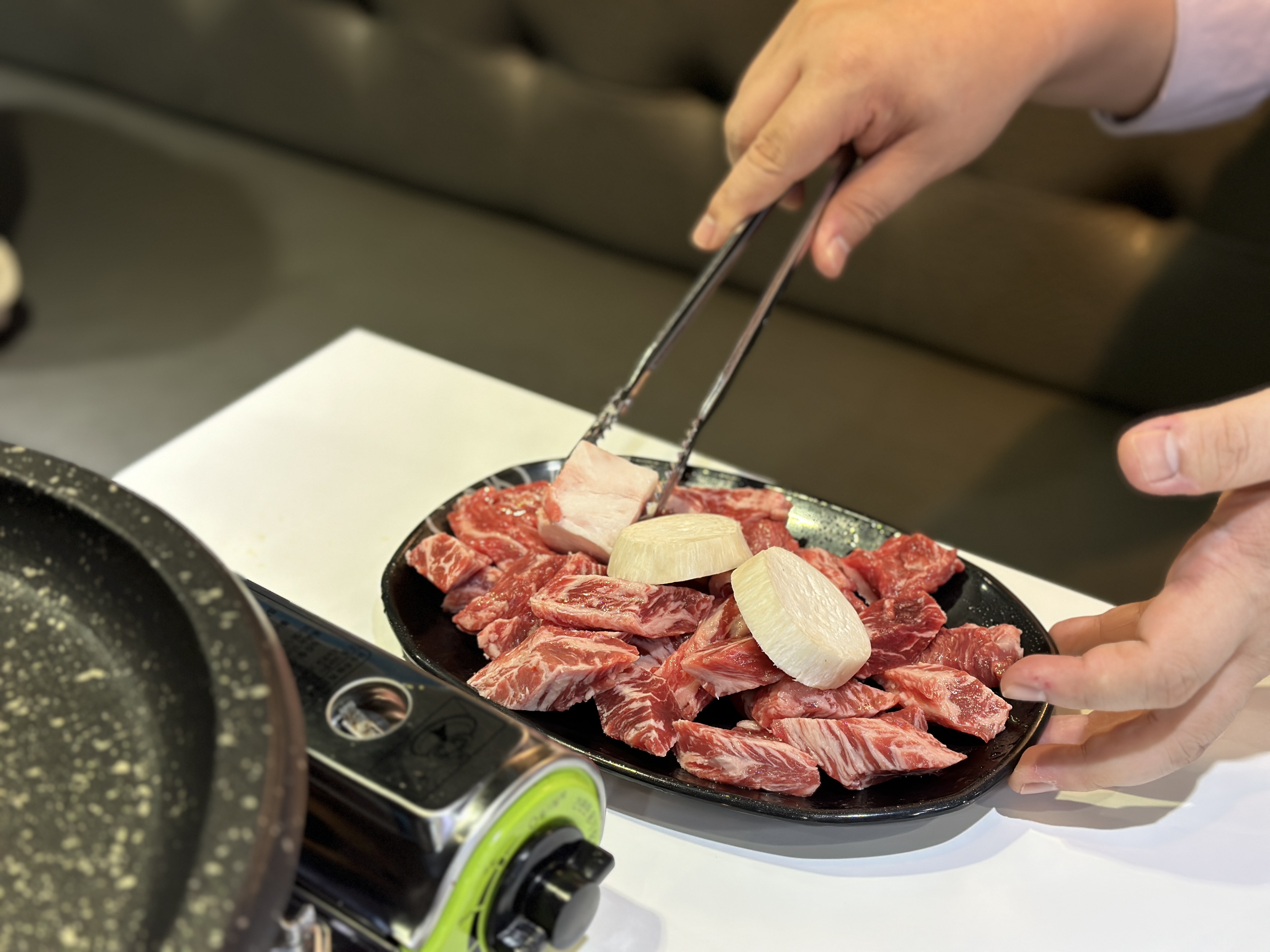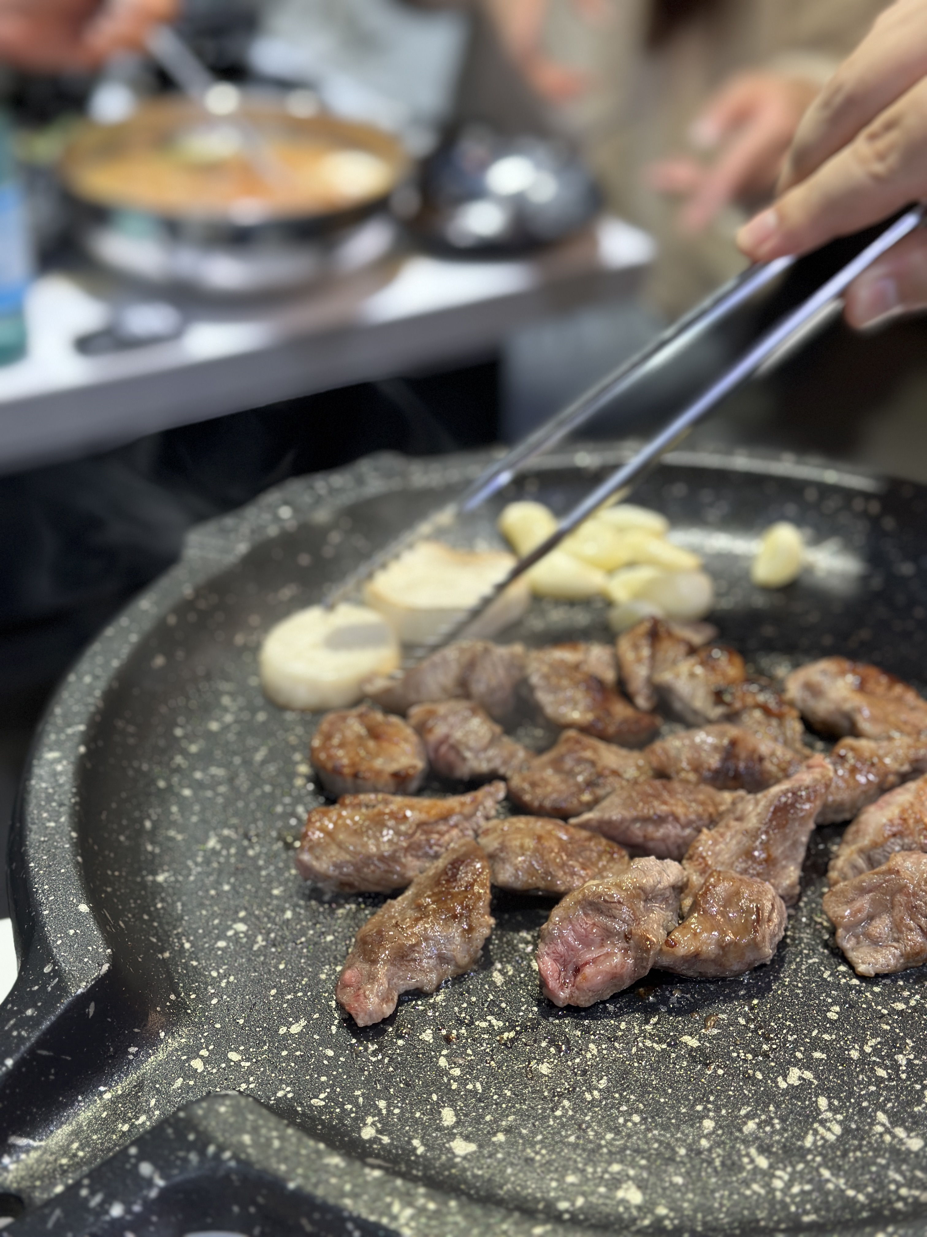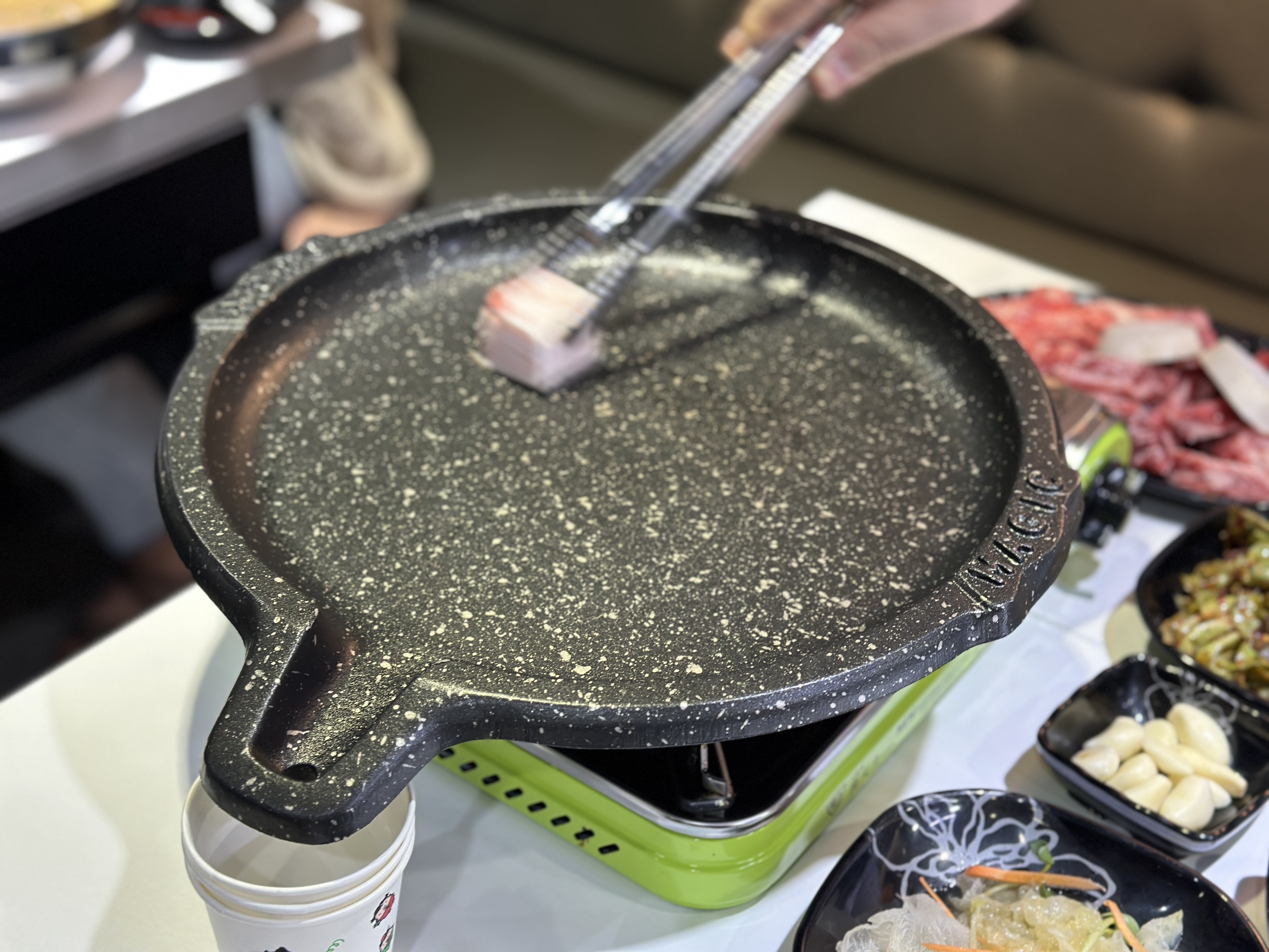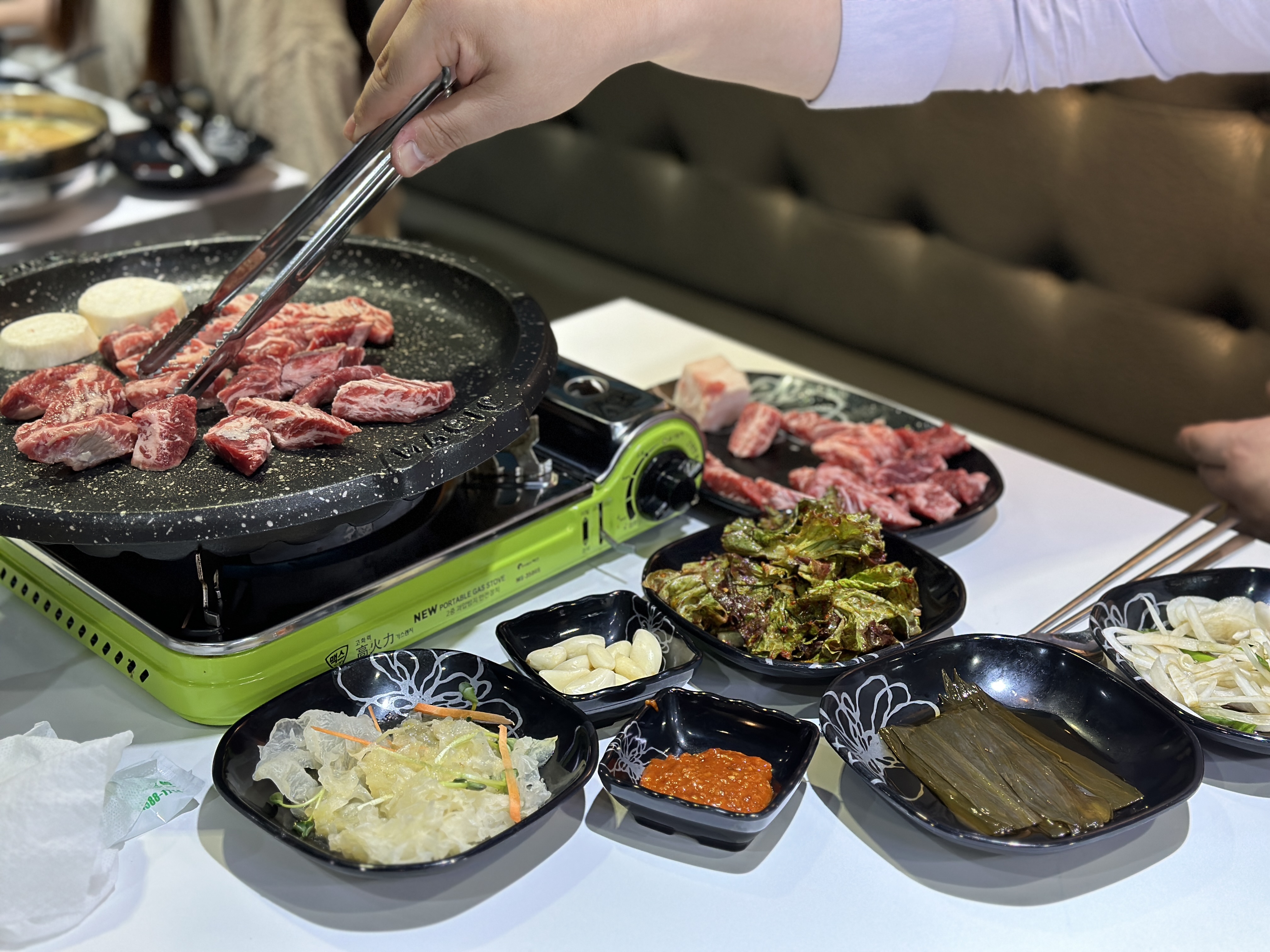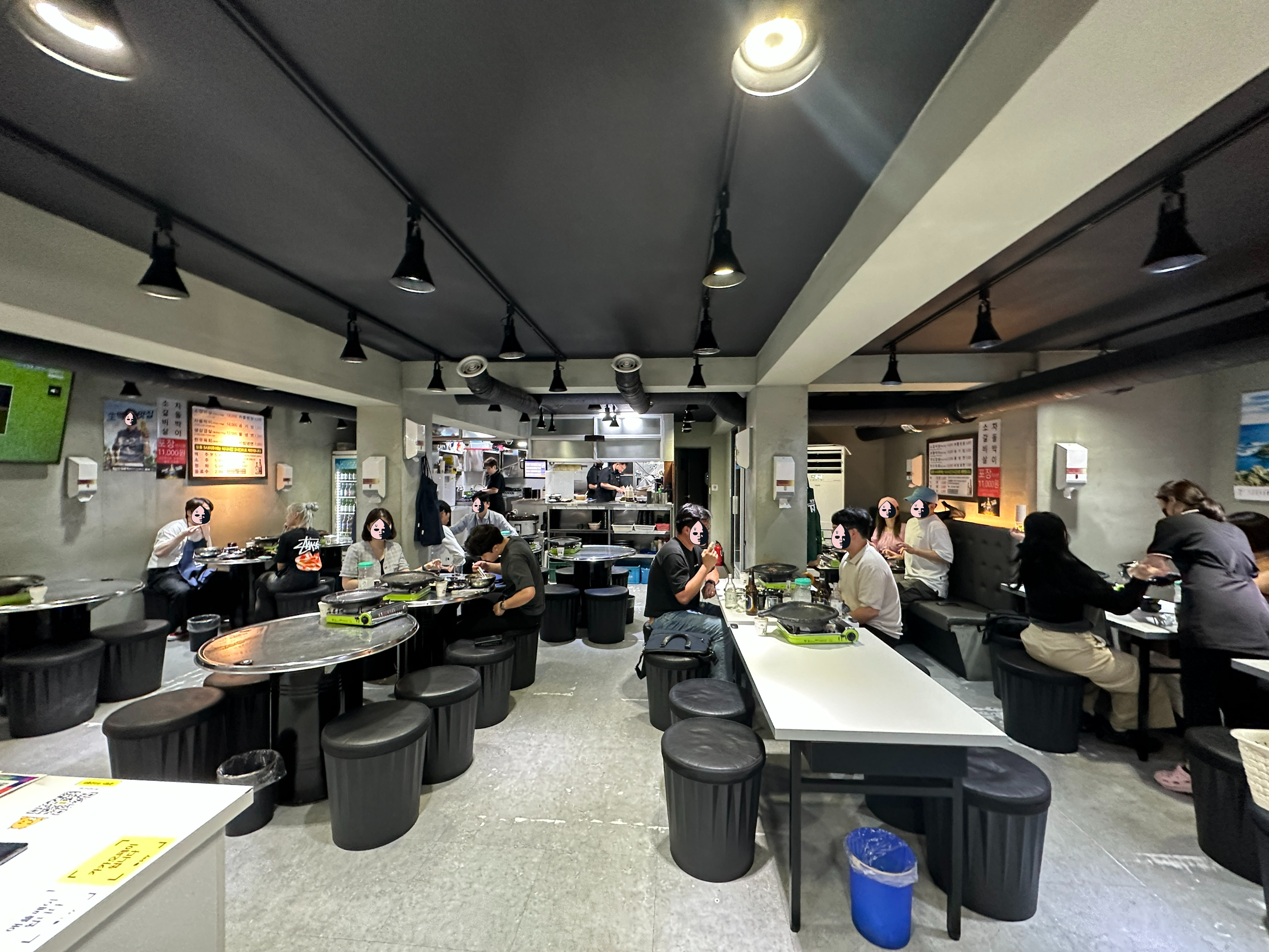 좌석은 깔끔하게 되어 있고, 조명도 적당합니다. 고기 굽는 식당이지만, 생각보다 환기가 잘 되는지 엄청나게 고기냄새나 연기가 많이 나거나 하지는 않아서 좋았습니다. 좌석 간 간격도 엄청 쾌적하거나 한 정도는 아니지만, 여느 식당에서 볼 수 있는 수준의 간격입니다. ㅋㅋㅋ 단체로도 괜찮은 선택일 듯 합니다.