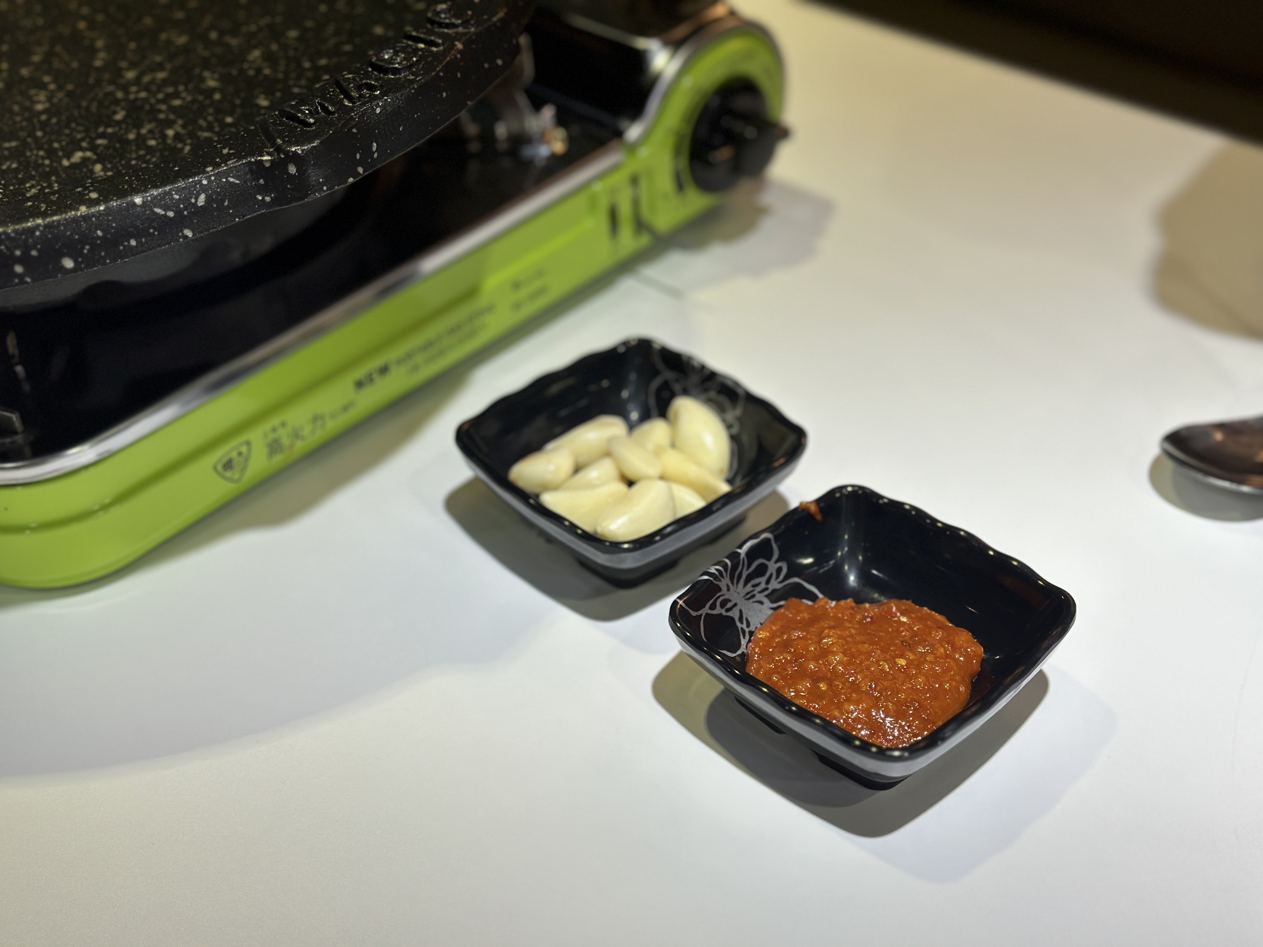 기본 세팅으로는 마늘, 쌈장과 양파, 소금 이렇게 주시더라구요.