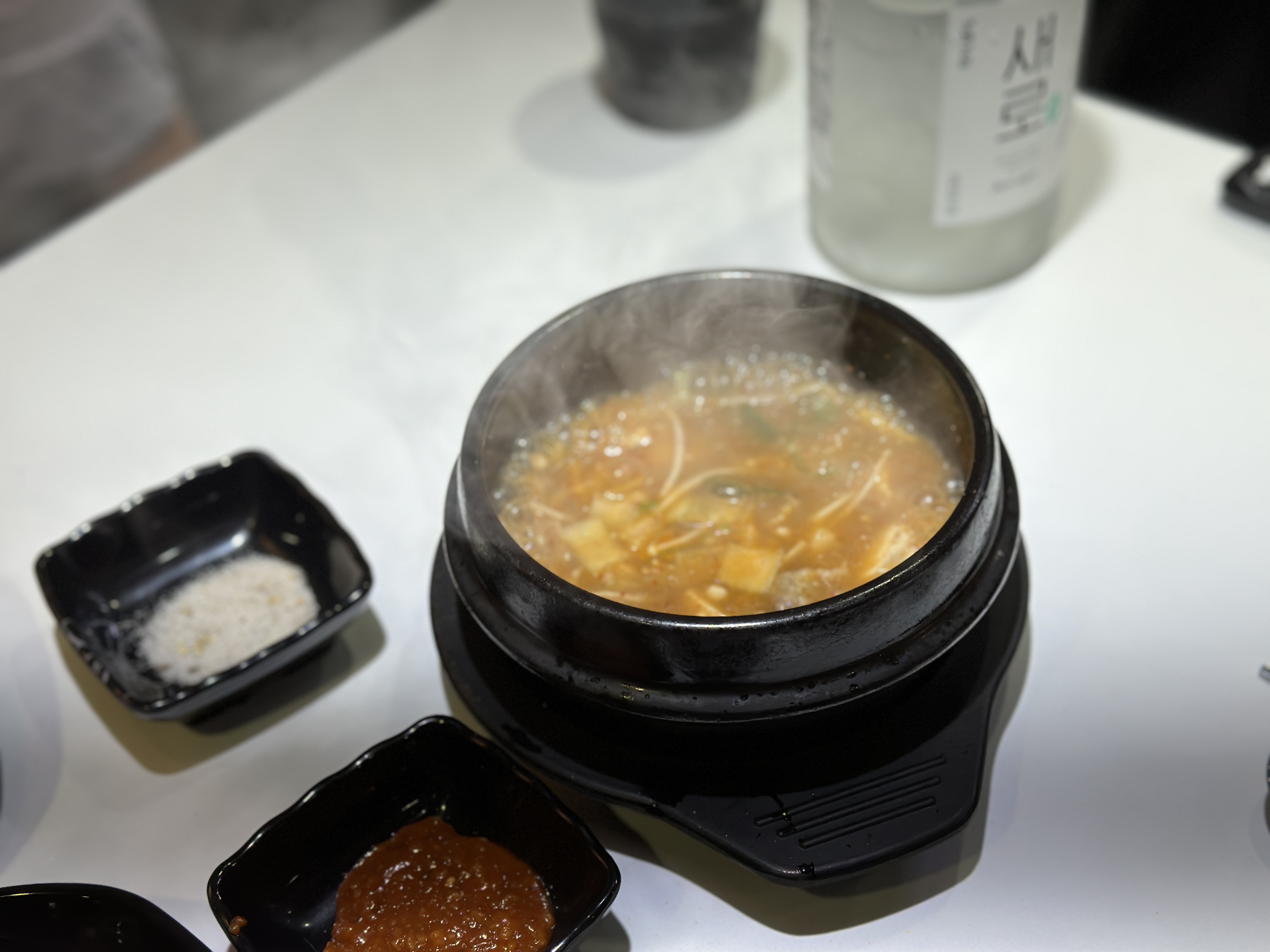 같이 나오는 된장찌개 역시 팔팔 끓어서 나오니 함께 먹기 좋습니다.
