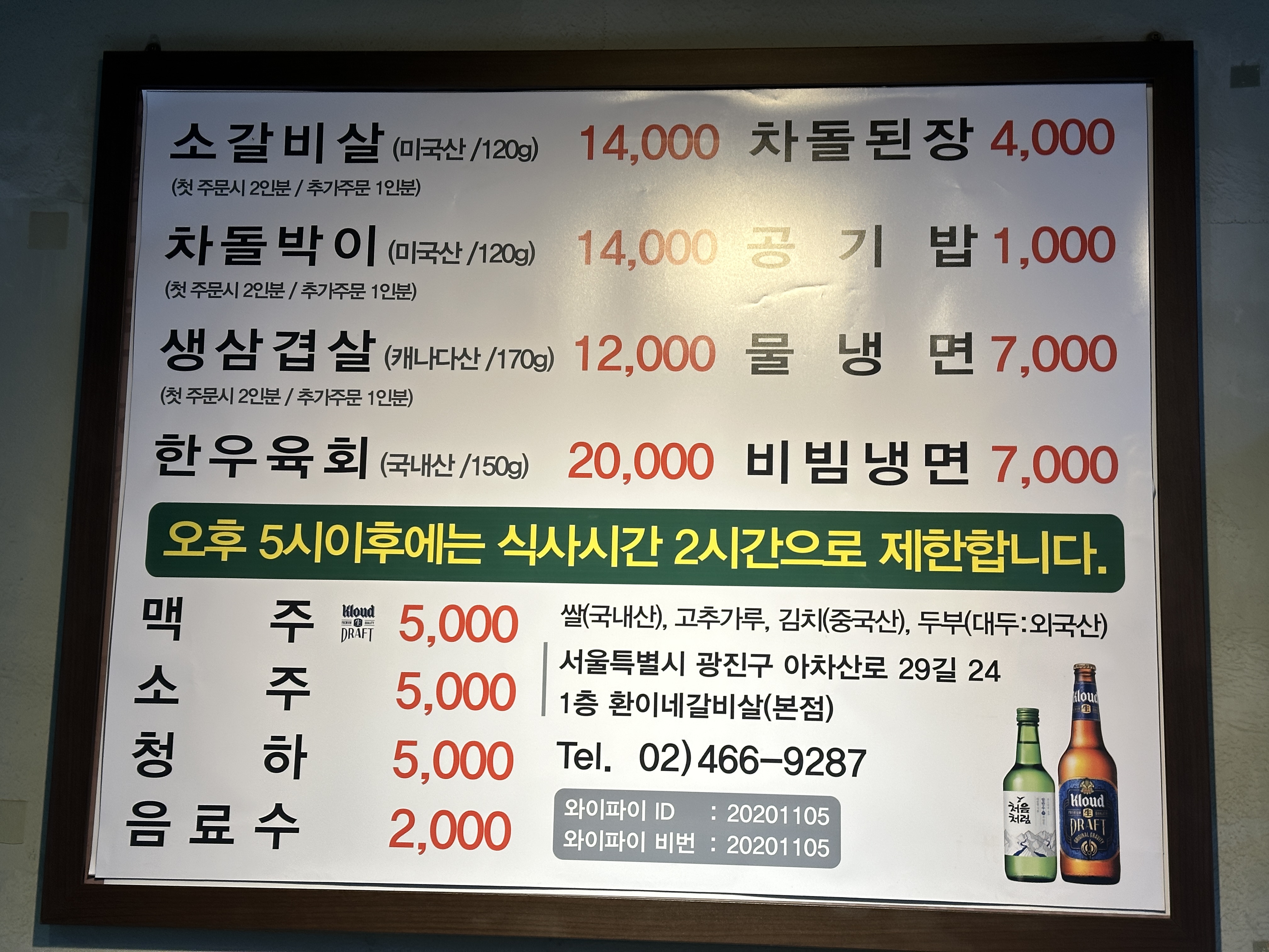3. 건대입구역 환이네 갈비살 본점 메뉴
