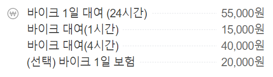 시간단위로 가격이 책정되어 있고, 1일 대여가 가장 적당해 보였습니다.
