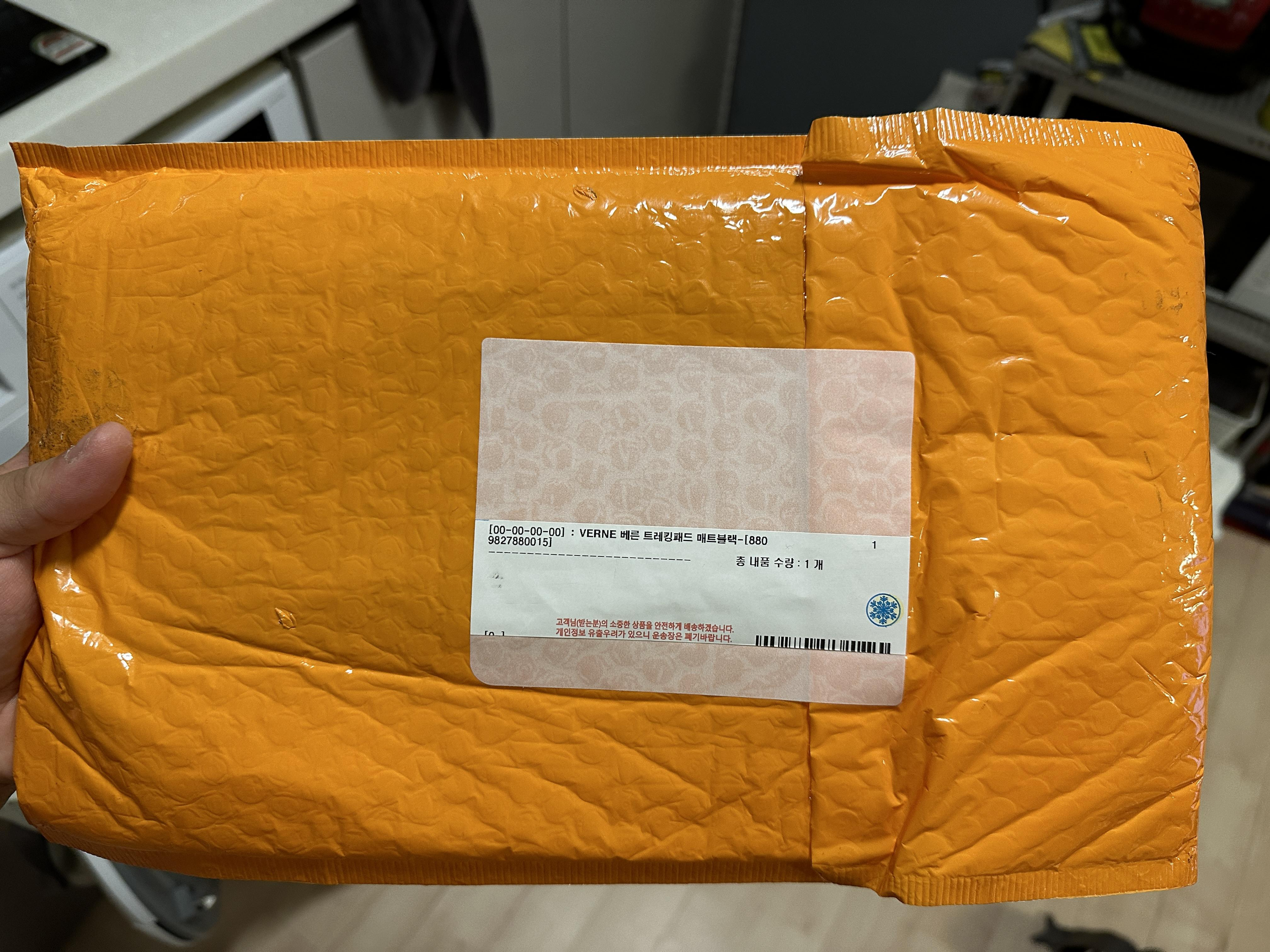 매트블랙 색상으로 주문한 베른(VERNE)트레킹 패드 + 커팅 패드는 이렇게 서류봉투마냥 배송이 되었습니다. 무게가 벌써 가볍다는 것이 느껴집니다.