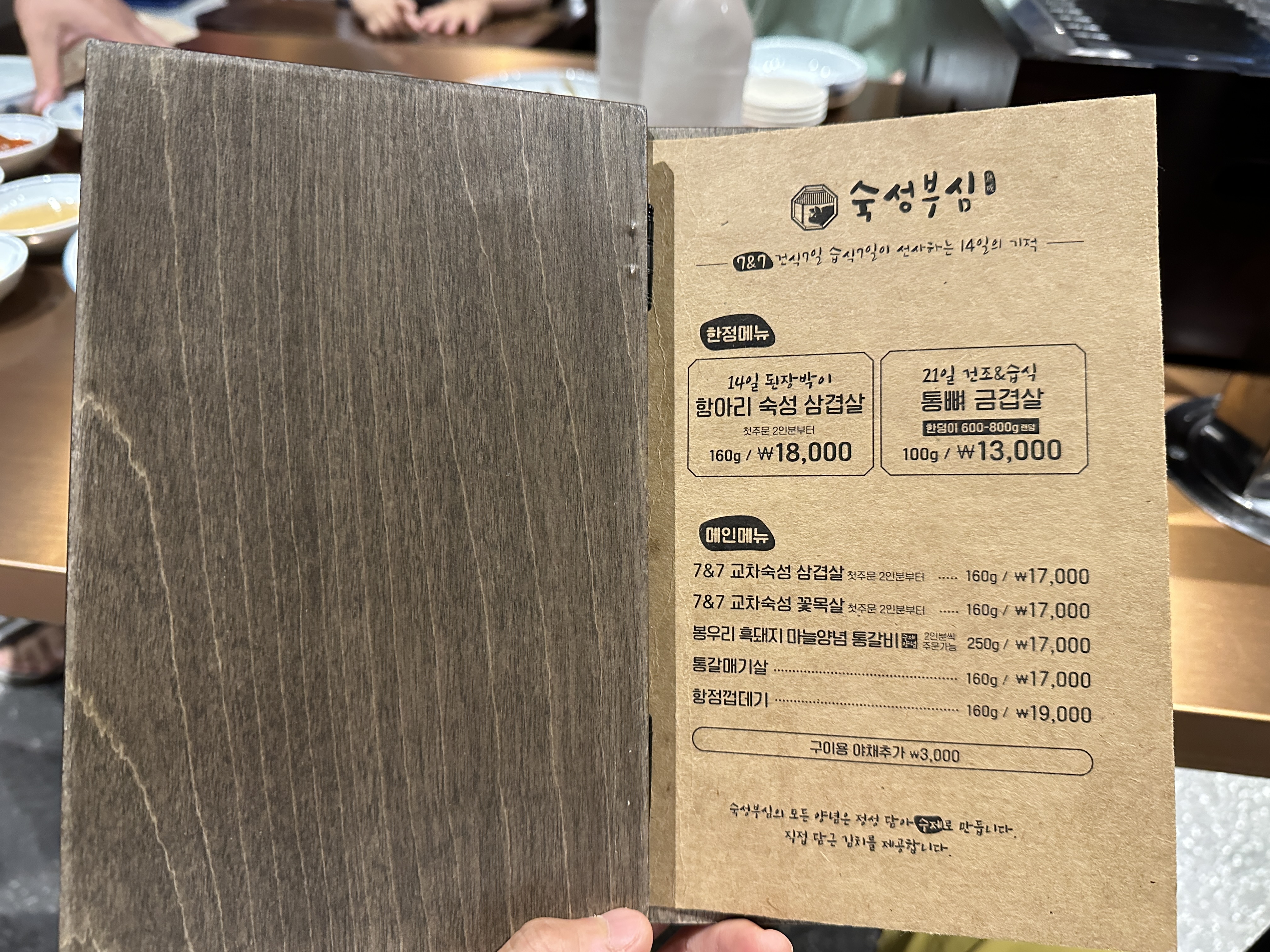 3. 군자역 신상 숙성돼지구이 맛집 숙성부심 메뉴판